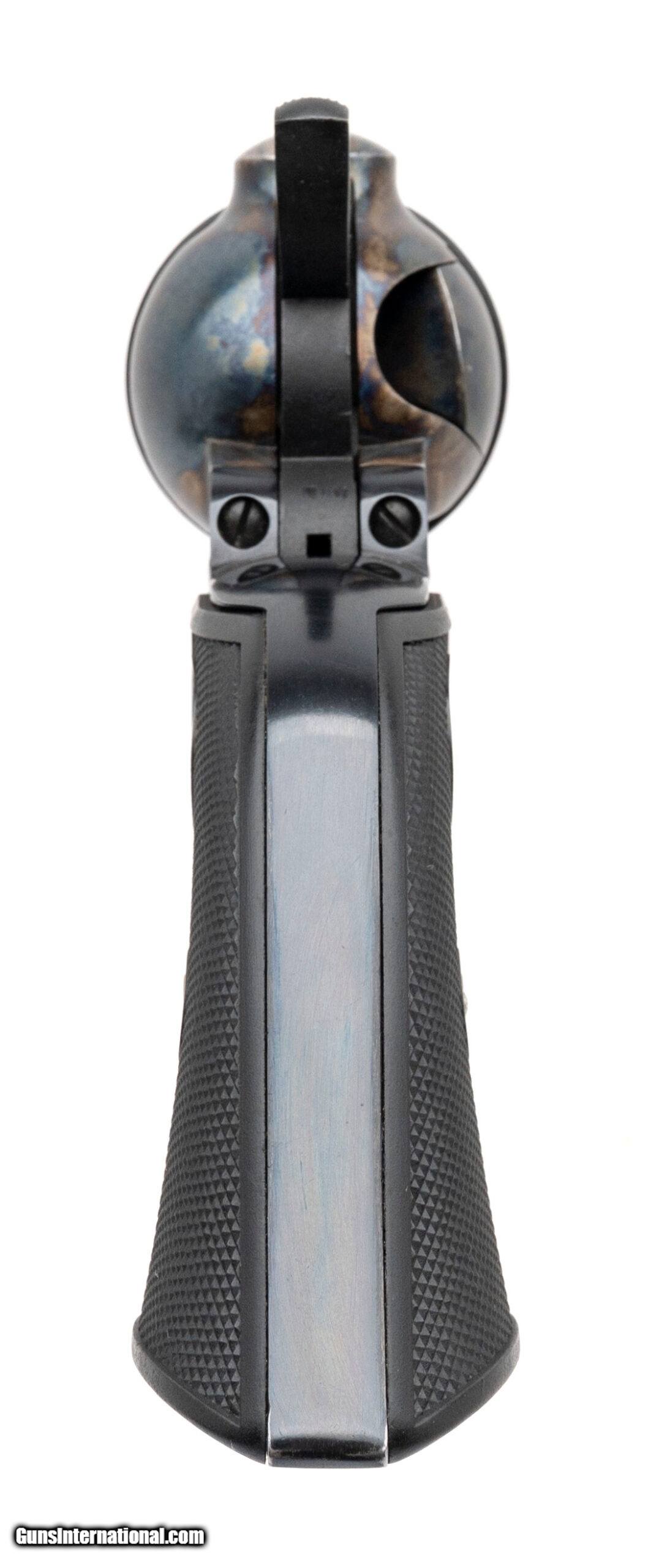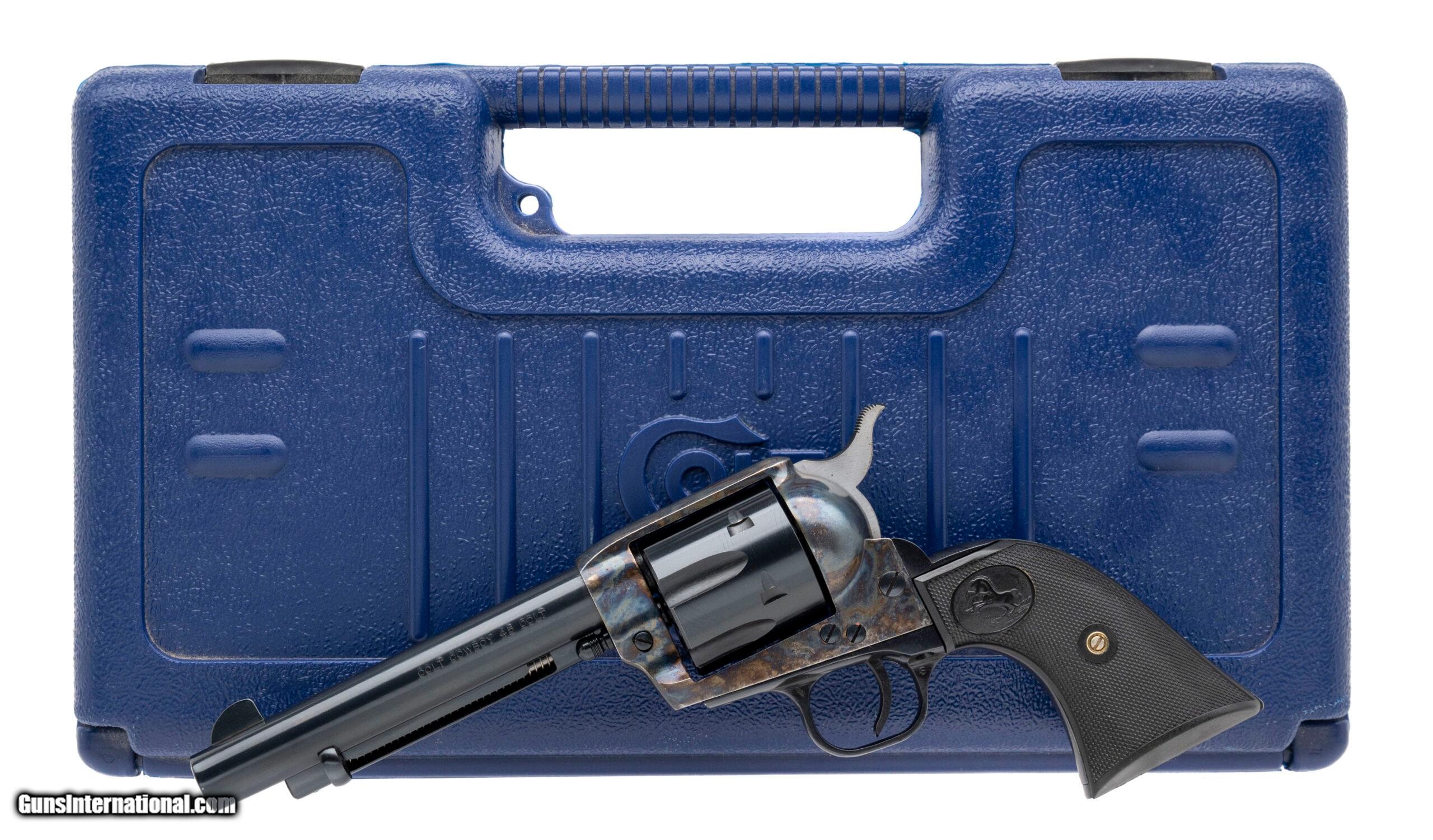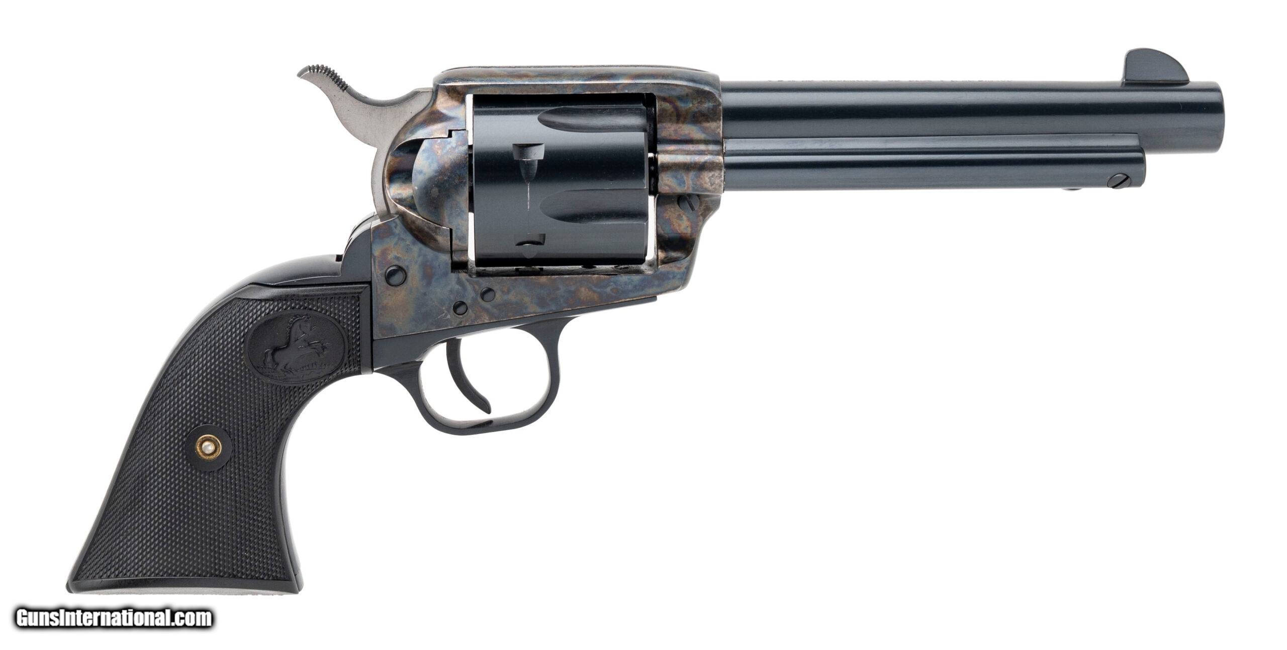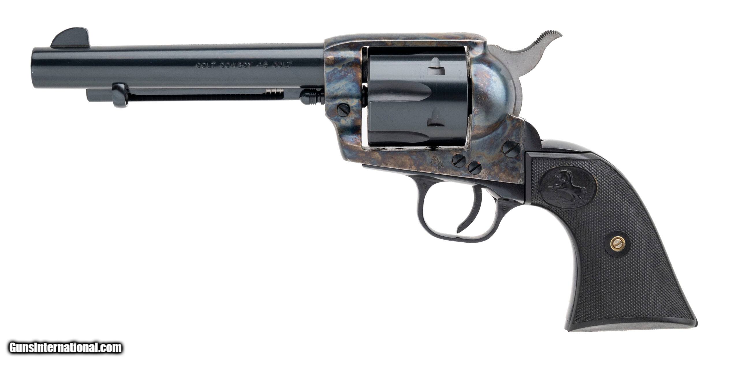 Description: "SN: TF02206. Made in 1999, .45 Colt with an 5.5"" barrel. Bore is bright with excellent rifling. Cowboy single action revolver with blued finish barrel & cylinder, color case frame, and plastic checkered grips with Colt stallion. Excellent condition overall. Comes with case. Price: $1,350.00 Contact Seller |