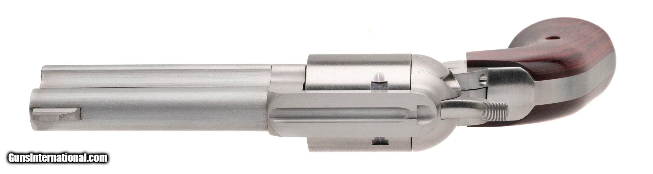 Description: "SN: P1890. .45 Colt with a 4.25"" barrel. Bore is excellent. Stainless steel single-action only premier grade revolver with a fixed blade front sight, 5rd cylinder, and laminate wood grips. Overall condition is excellent. Includes original box. Price: $3,000.00 Contact Seller |