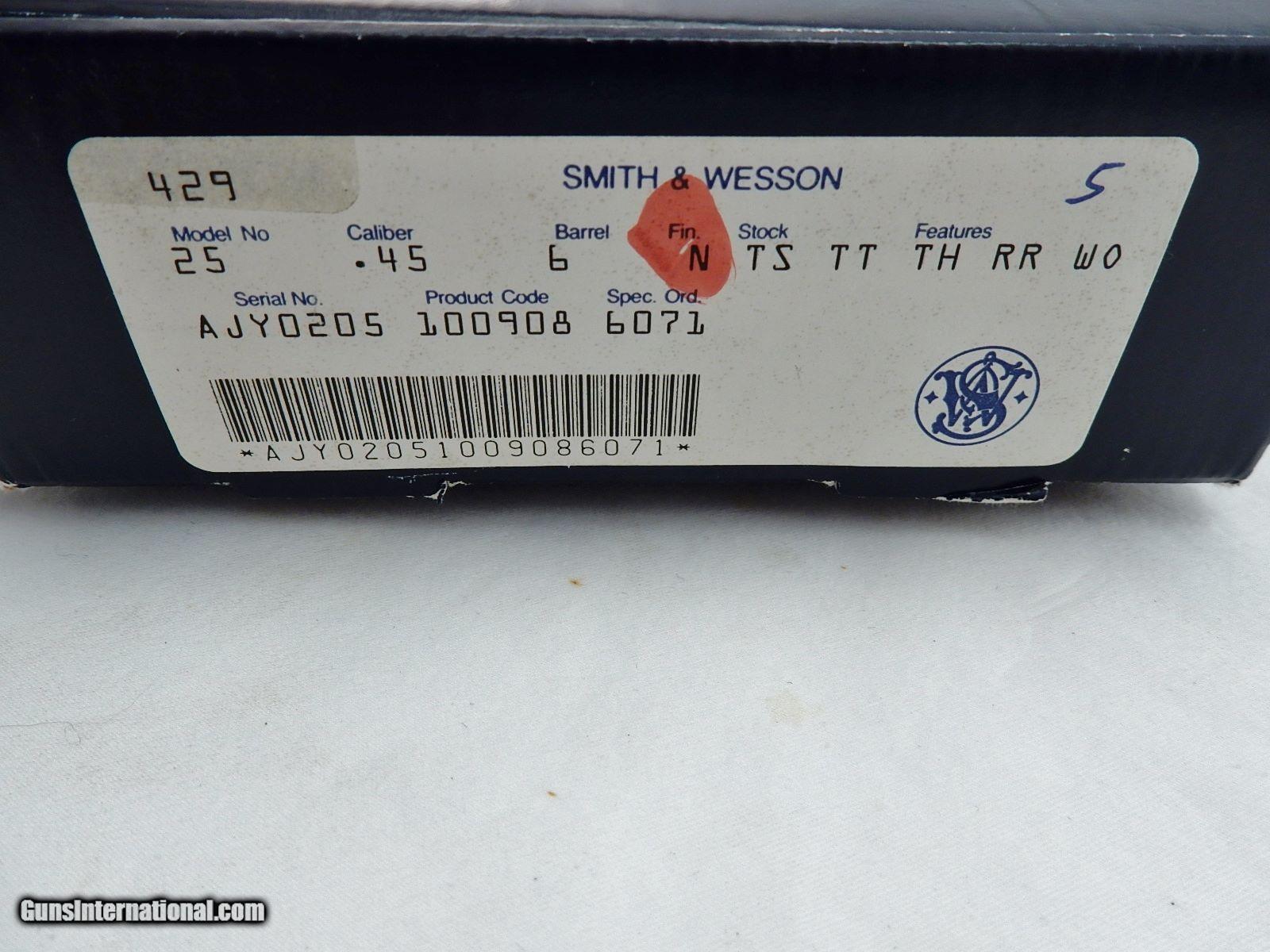 Description: This is a Smith Wesson 25-5 45LC with a 6 inch barrel. This gun is 99%+ in the box. Serial # is AJY02xx. Buyer pays 35.00 shipping. Thank you. 43-11-4 SOLD |