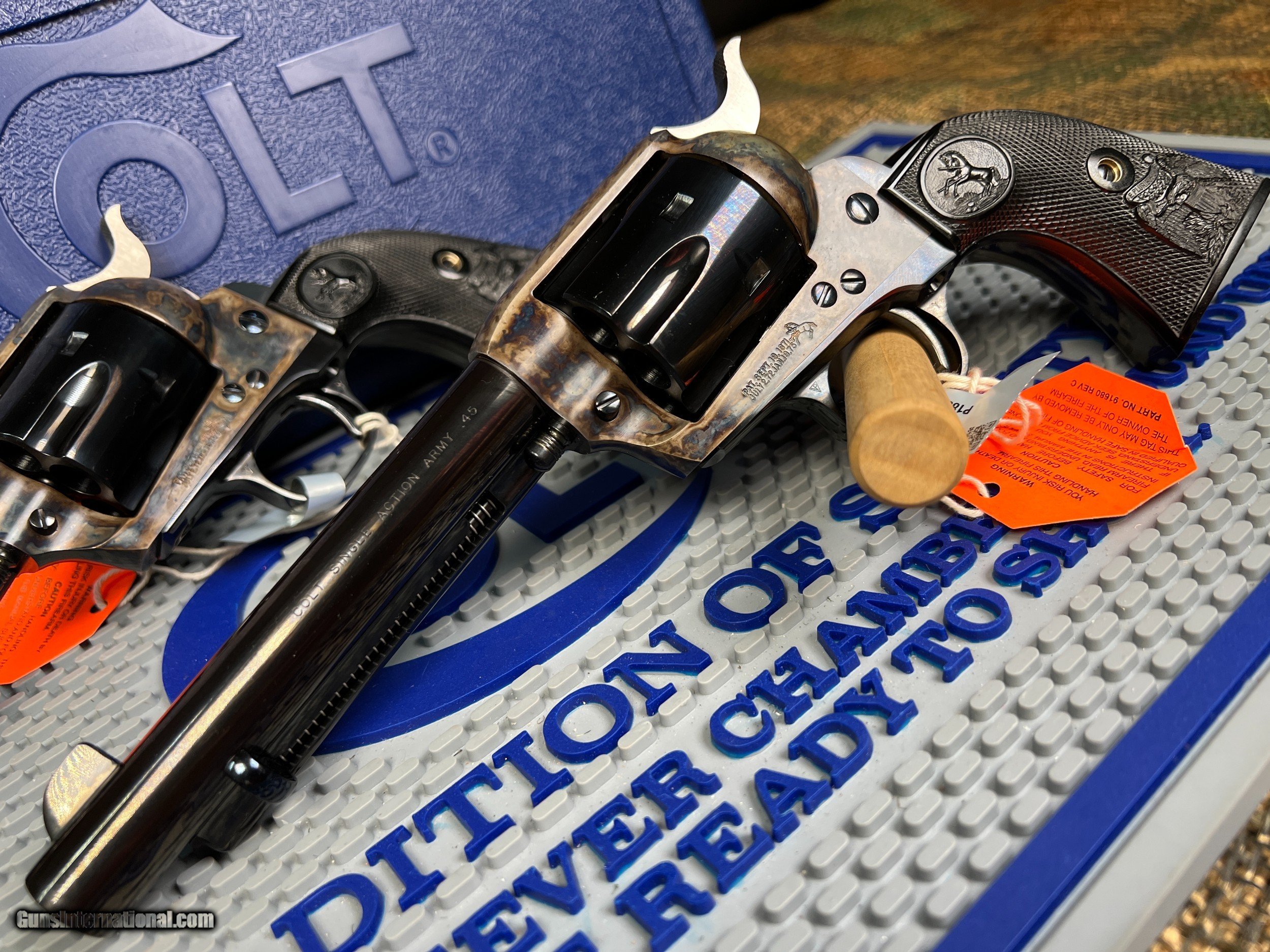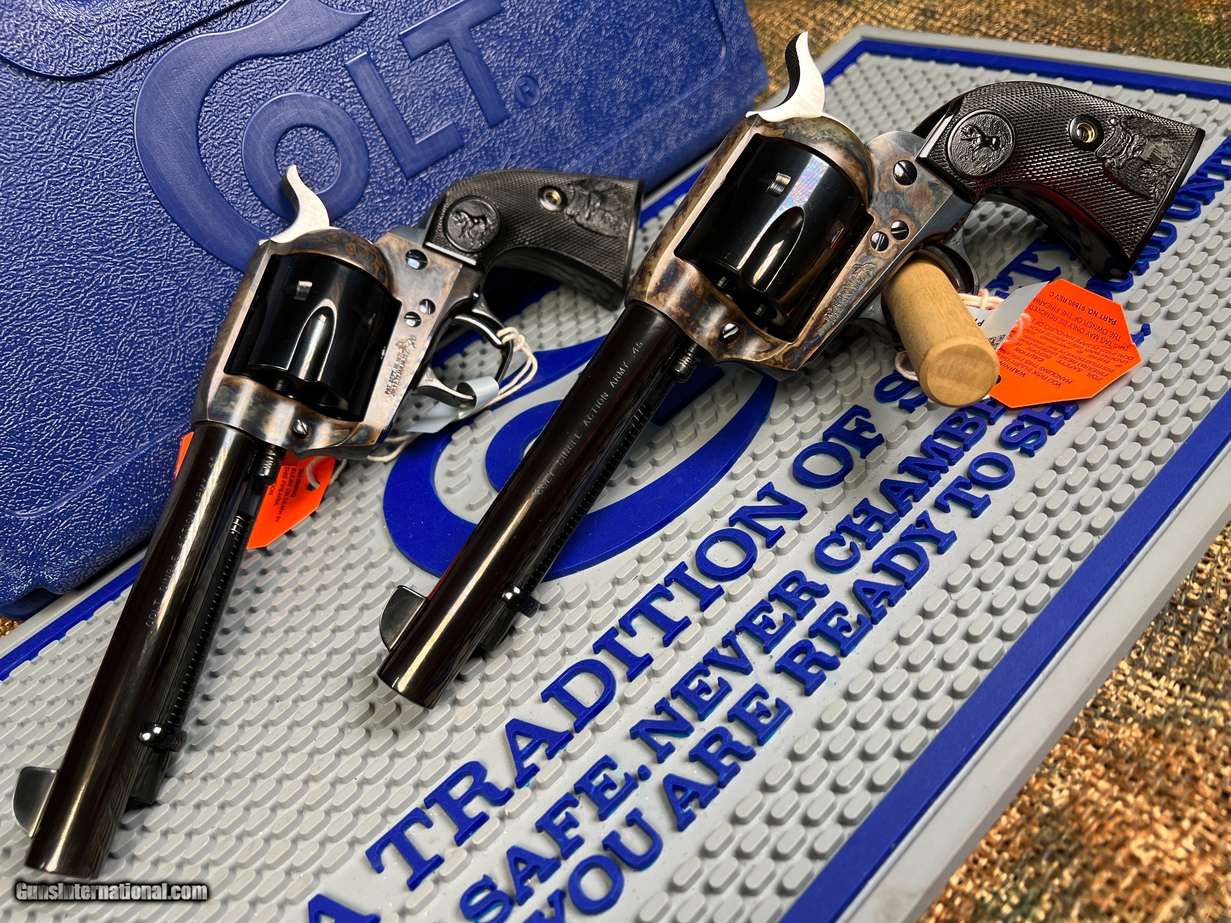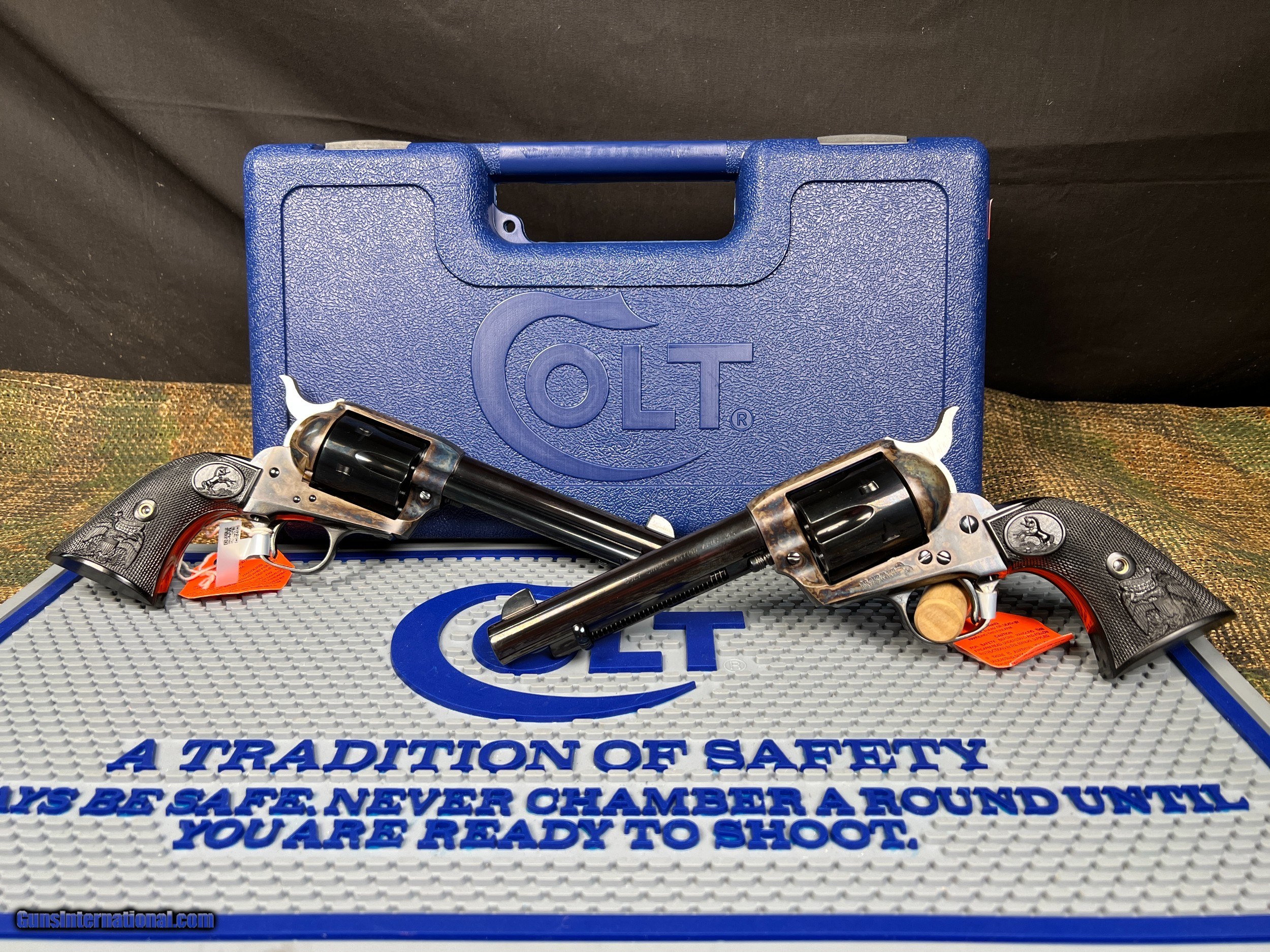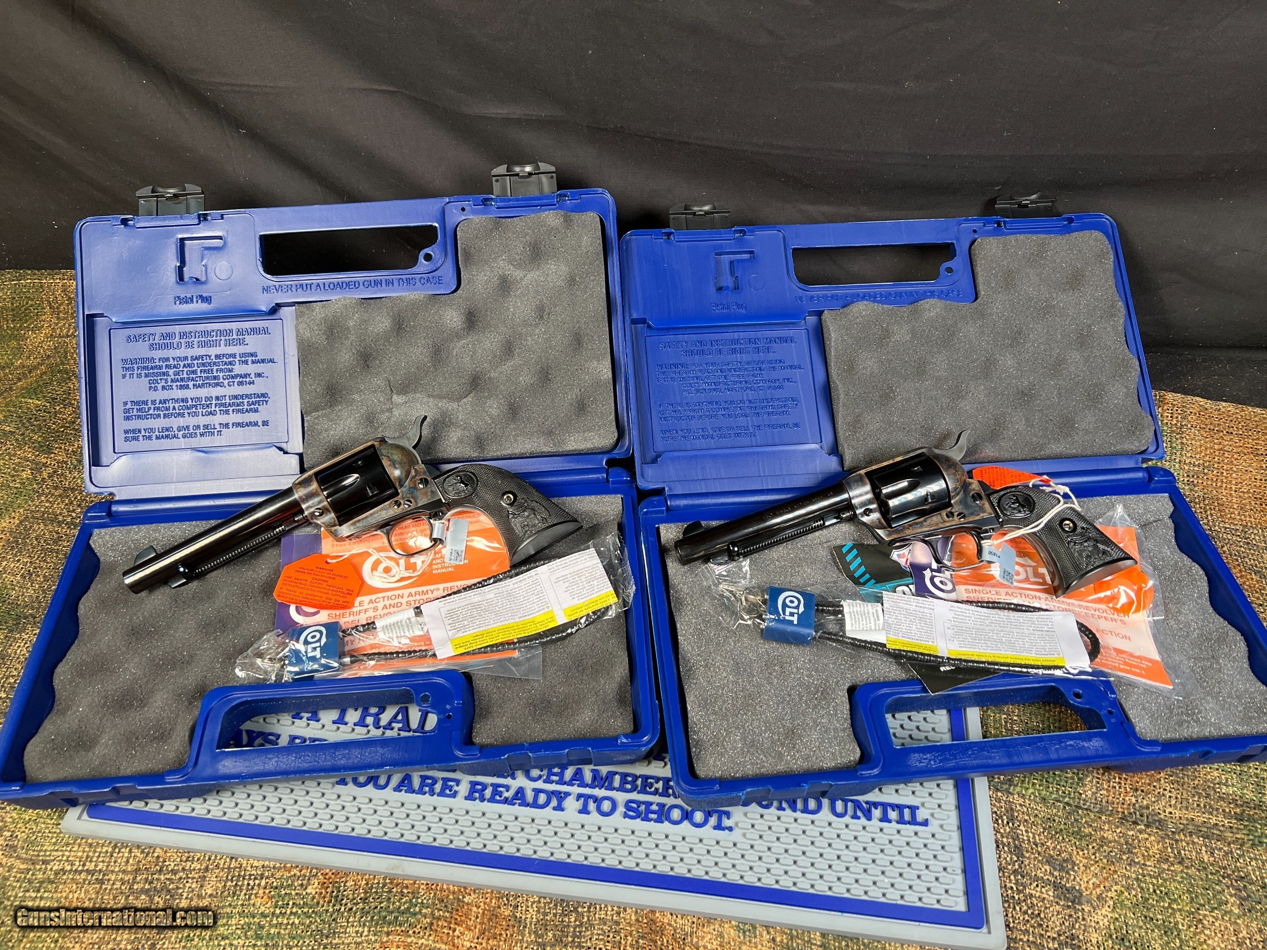 Description: Two New Old Stock Consecutive Serial Numbers S90796A and S90797A New in box!!!! Never on display!!!! Absolutly MINT as it gets!!!! ATTENTION COLLECTORS!!!! COLT SINGLE ACTION ARMY REVOLVER | 5.5" .45 LONG COLT DESCRIPTION: No Colt revolver has earned greater fame than the single action army - The Peacemaker. In design and performance, in line and form, no more sculptural and practical Colt has ever been created. Movies serve as constant reminders of the role this equalizer played in winning the West. SPECIFICATIONS:
