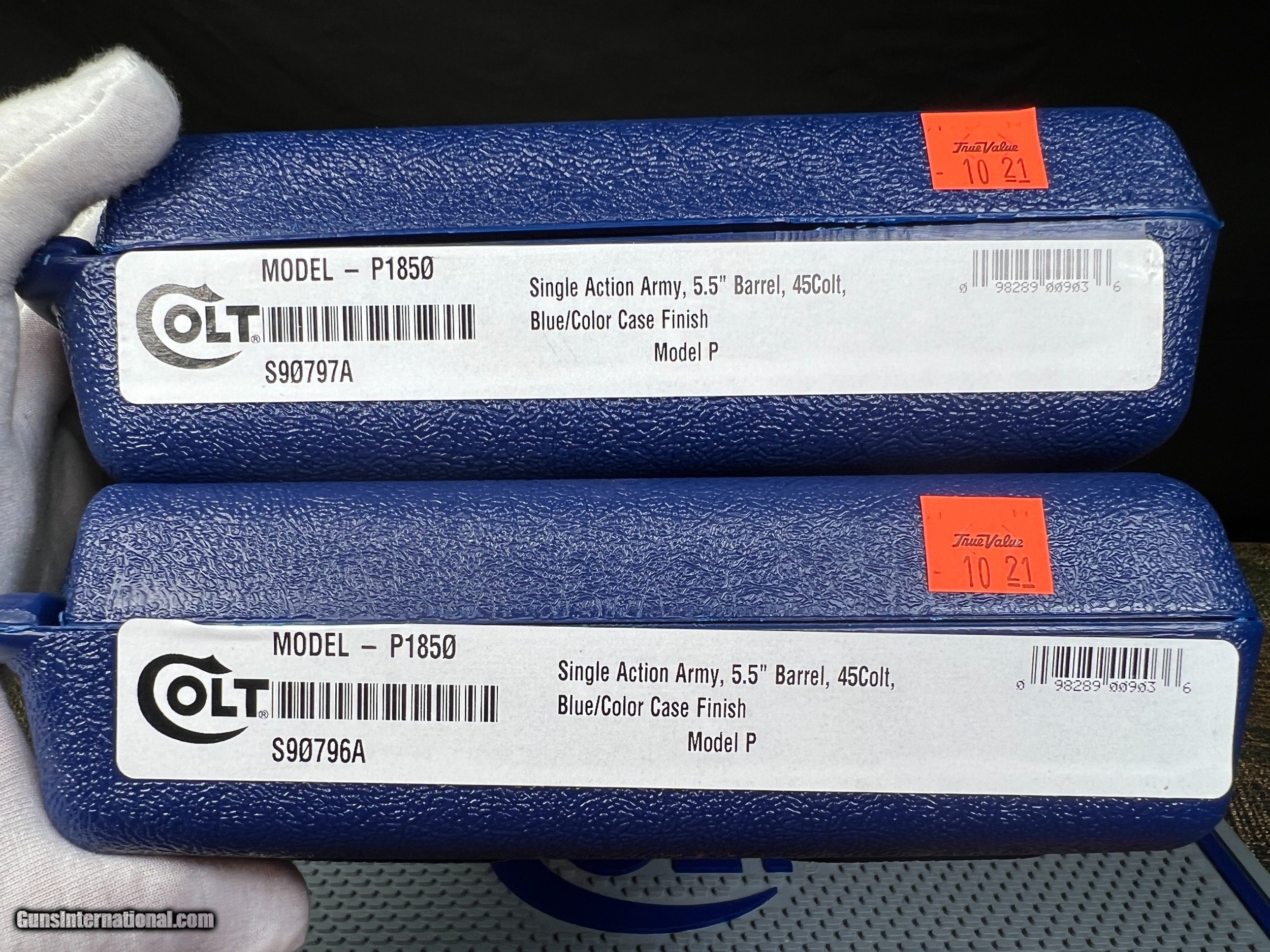 2 Colt Single Action Army 5.5" .45 Colt Case Hardened p1850 SAA NEW IN BOX CONSECUTIVE SERIAL NUMBERS