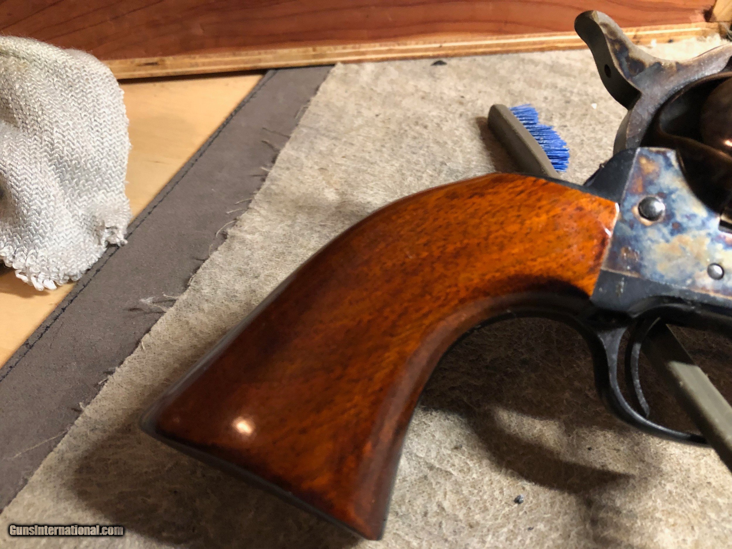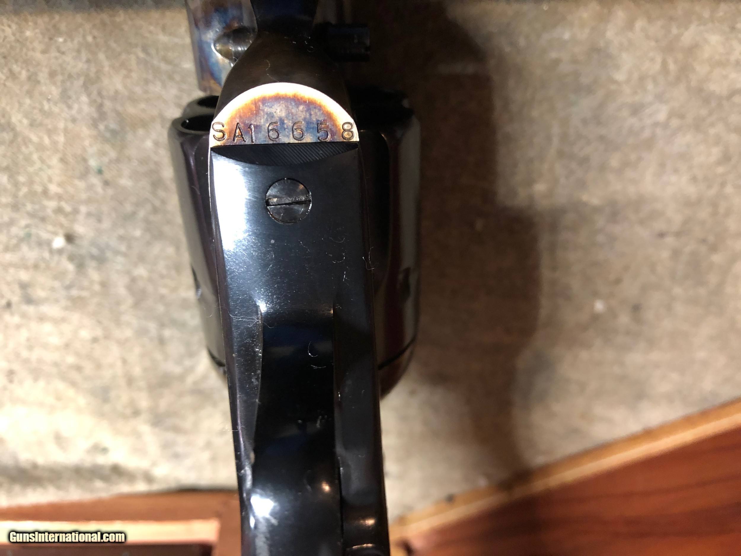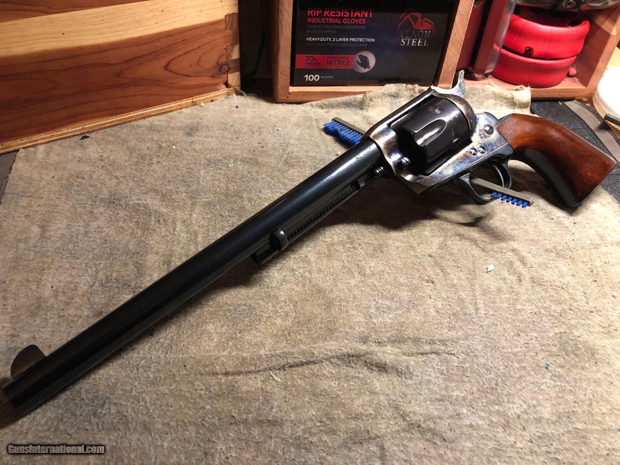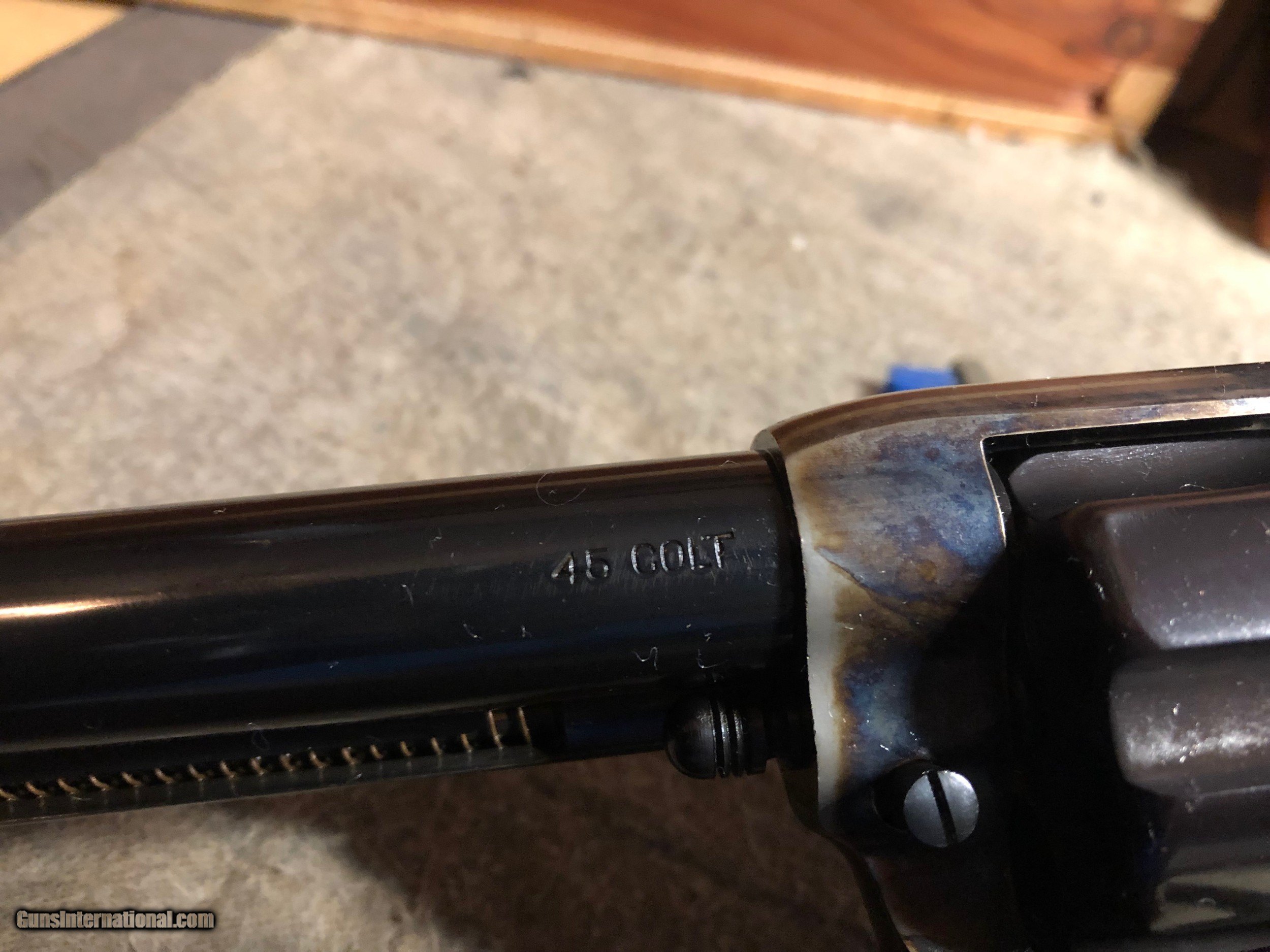 Description: I have a like new Armi San Marcos 45 Colt. This beautiful pistol has a 10" barrel with a bright bore and deep, rich bluing. It sports sharply defined case-hardened receiver with beautitul rose wood grips. It is a great imitation of the old original Colt SSA. Unfortunately, no box. SOLD Handgun Caliber: .45 Colt Manufacturer: Armi San Marcos Model: EMF-SA Serial Number: SA16658 Barrel Length: 10 Chambers: 6 Condition: Like New Metal Condition: Perfect Wood Condition: Perfect Bore Condition: Bright & Shiny Action: Revolver Finish: Blued-Case Hardened Sights: Fixed |