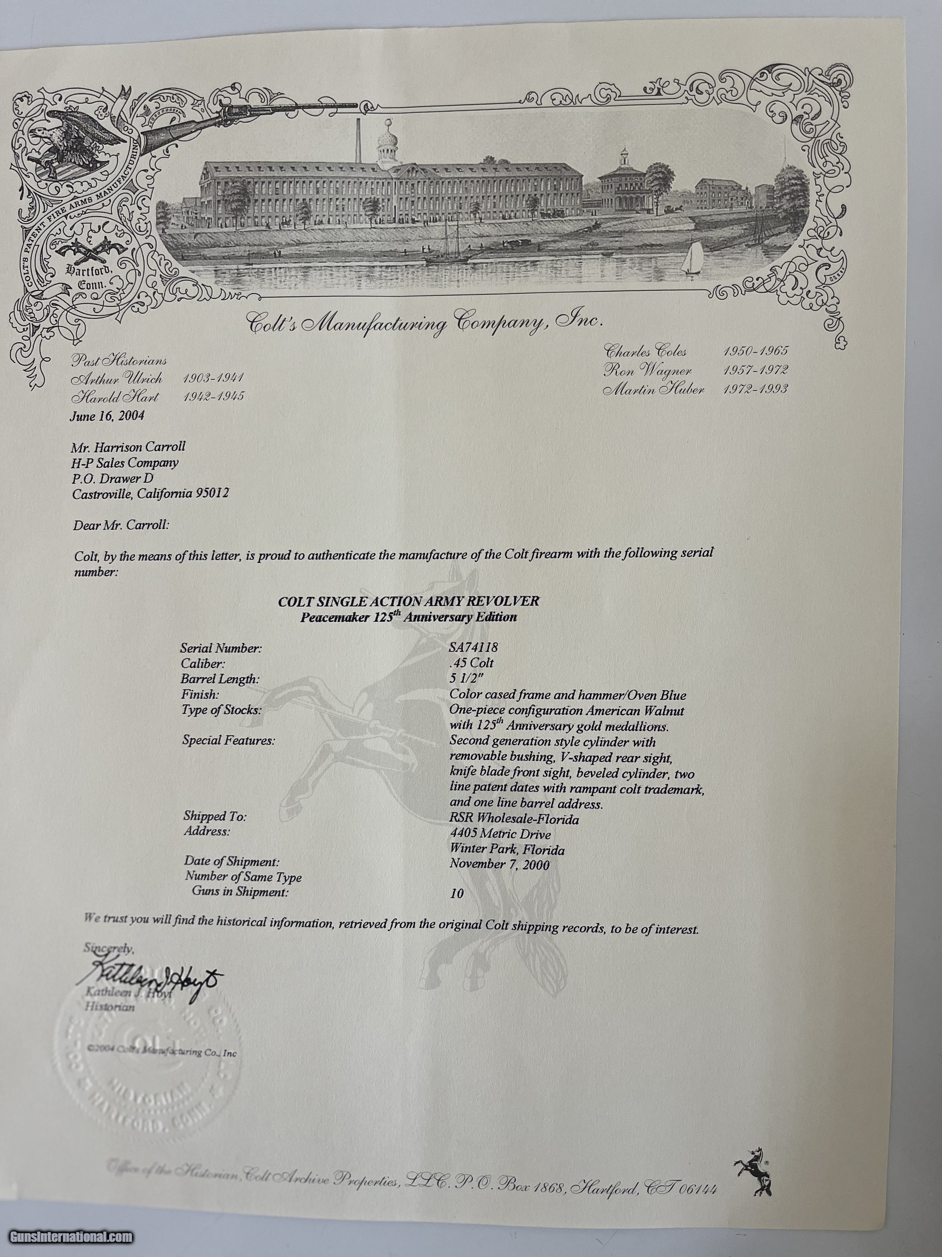Description: 5 1/2 inch barrel manufactored by Colt in 1998, Color: Case Hardened Finished by Doug Turnbull on 2nd generation frames. Handgun Caliber: .45 Colt Price: $4,500.00 Shipping: $100.00 Buy Now Contact Seller |