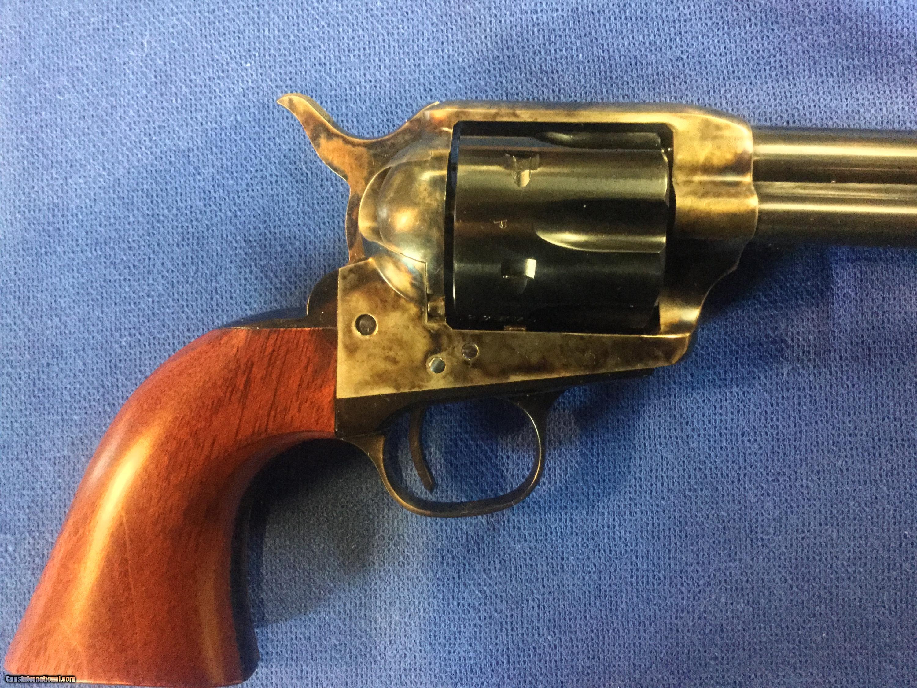 Description: Up for sale today is a Cimarron Model 1873 US Cavalry serial no. P44788 chambered in caliber .45 Colt. This new-in-box revolver is a faithful reproduction of the pistols carried by Company F of the 7th US Cavalry at Little Big Horn. The revolver has a 7 1/2" barrel. An excellent brand-new pistol and a great addition to any collection. All Pennsylvania residents please add 6% sales tax. SOLD Manufacturer: Uberti Model: Model 1873 US Cavalry Serial Number: P44788 Caliber Info: .45 Colt Condition: NIB Metal Condition: Mint Wood Condition: Mint Bore Condition: Mint |