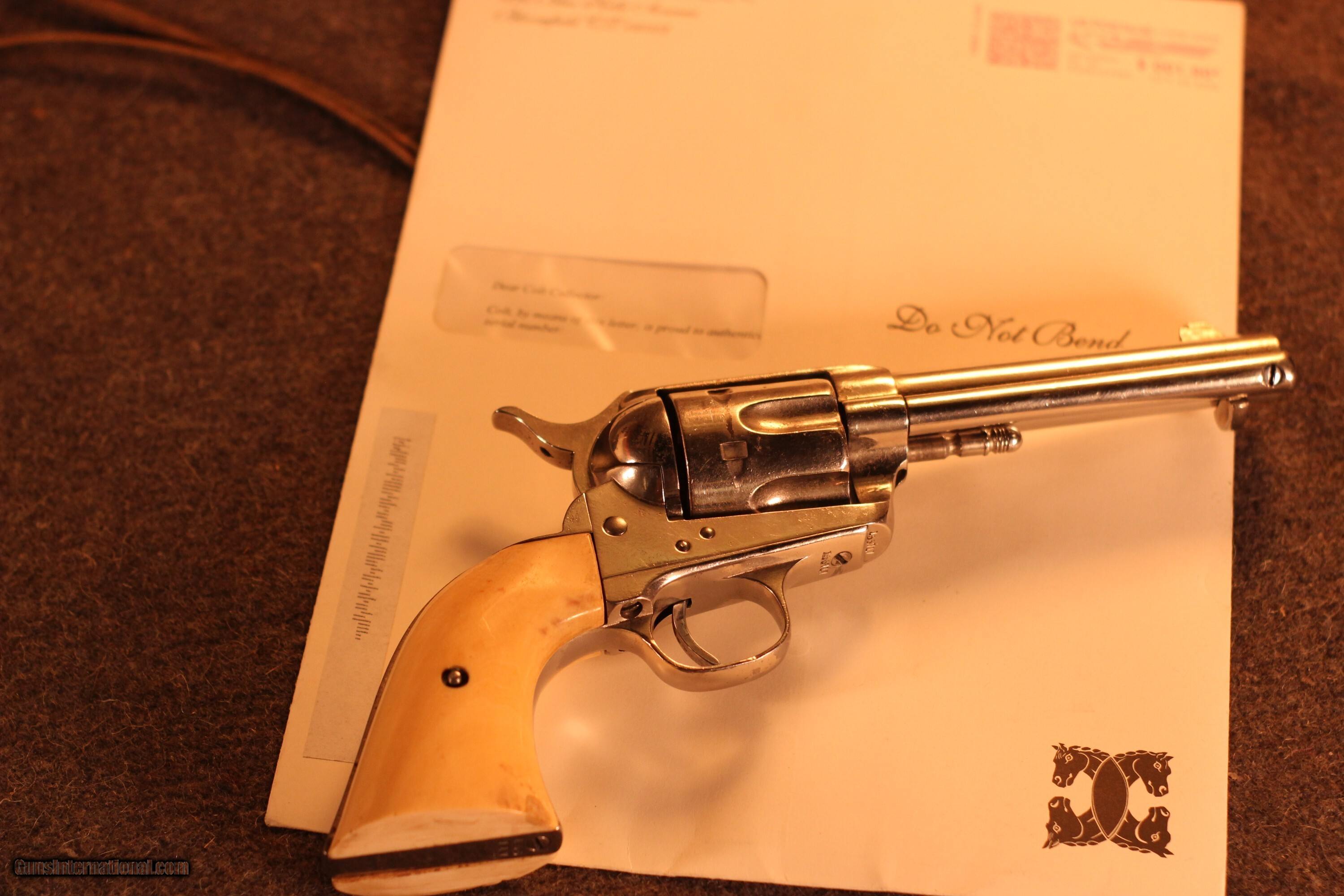 Description: Colt single action army 1894 45 Colt caliber original 4 3/4 barrel excellent bore & chamber Renickled finish clear legible marking all matching 156717 real ivory grips $3950.00 Handgun Caliber: .45 Colt Price: $3,950.00 Shipping: $80.00 Buy Now Contact Seller |