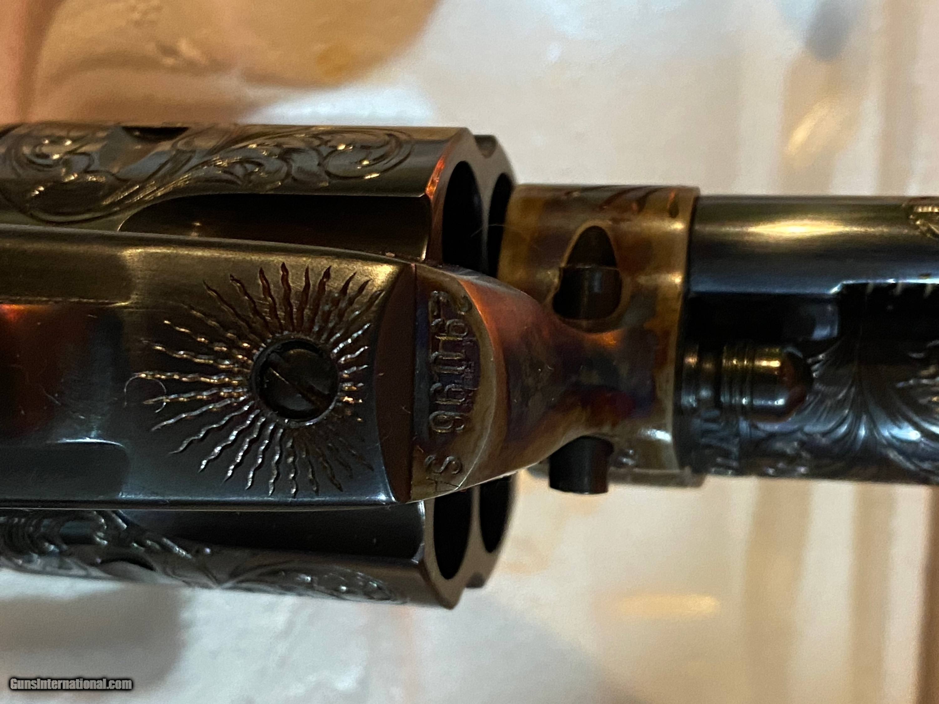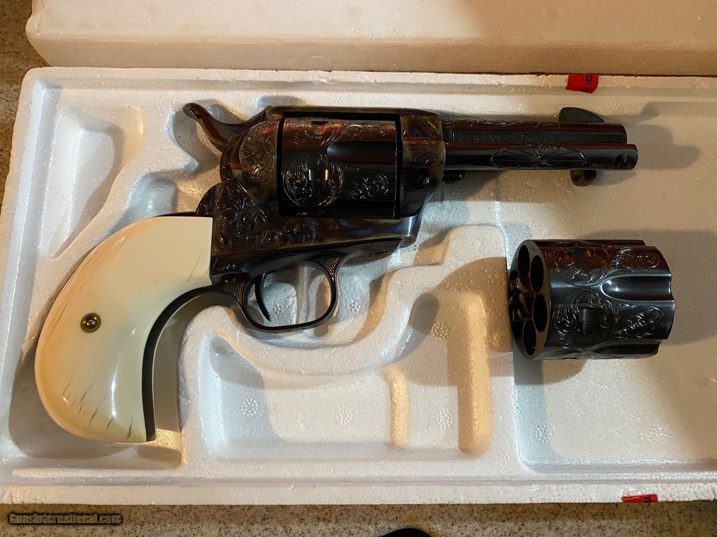 Description: Ken Hurst master engraver colt- 45 colt 2nd gen- birds head- custom-extra cylinder- engraved initials on back strap- selling collection 10,000 SOLD Curio/Relic: Yes Handgun Caliber: .45 Colt |