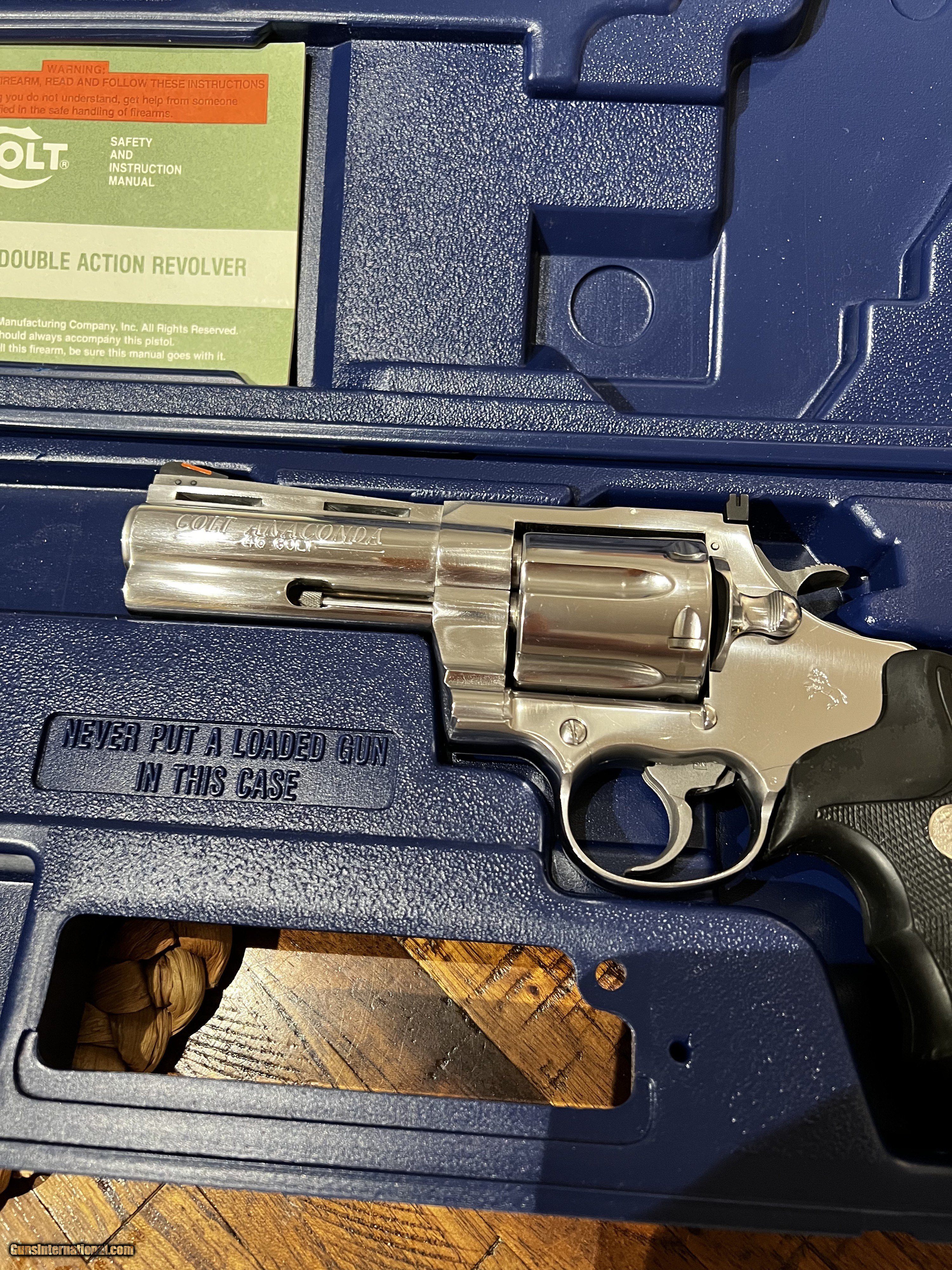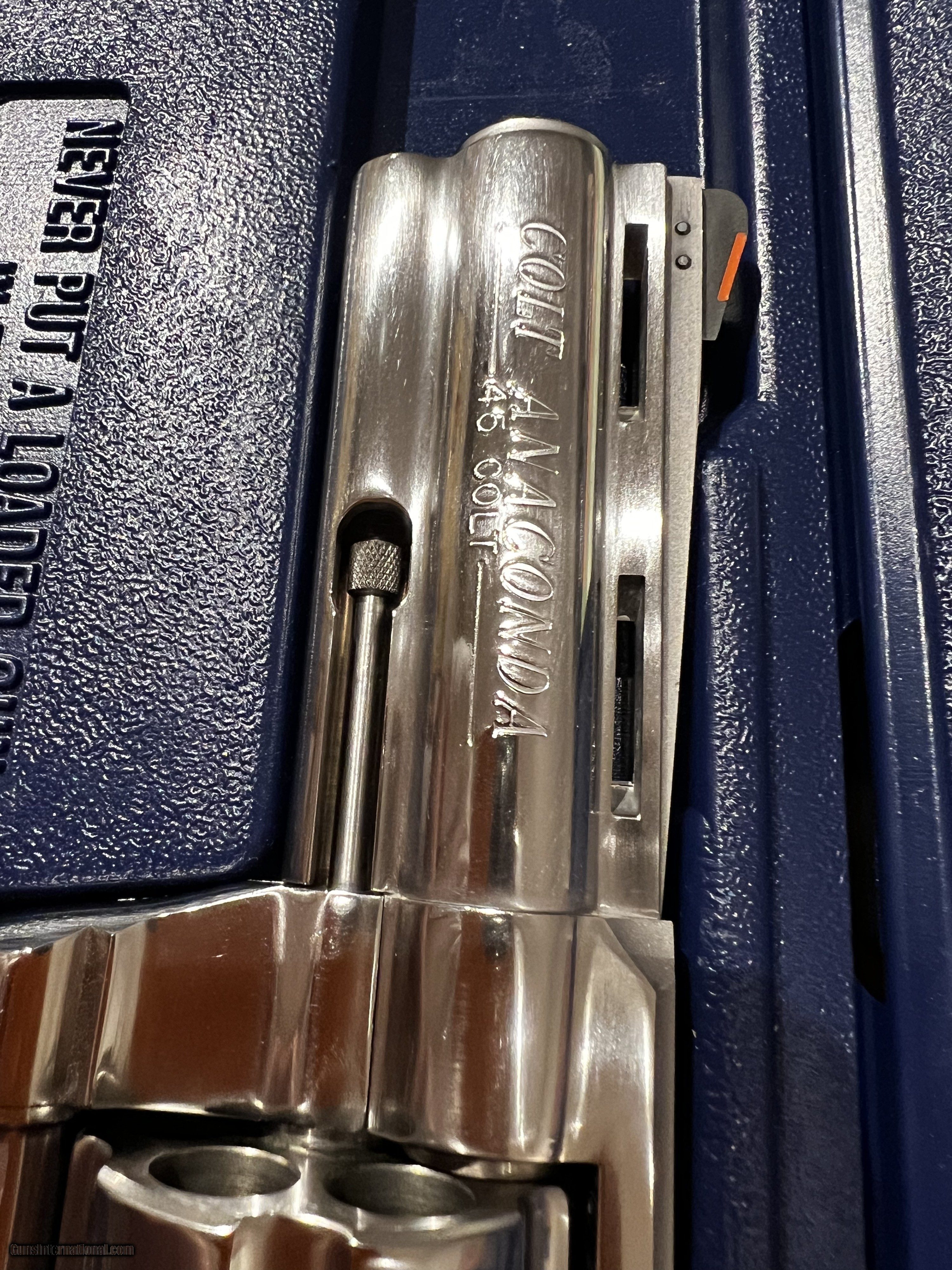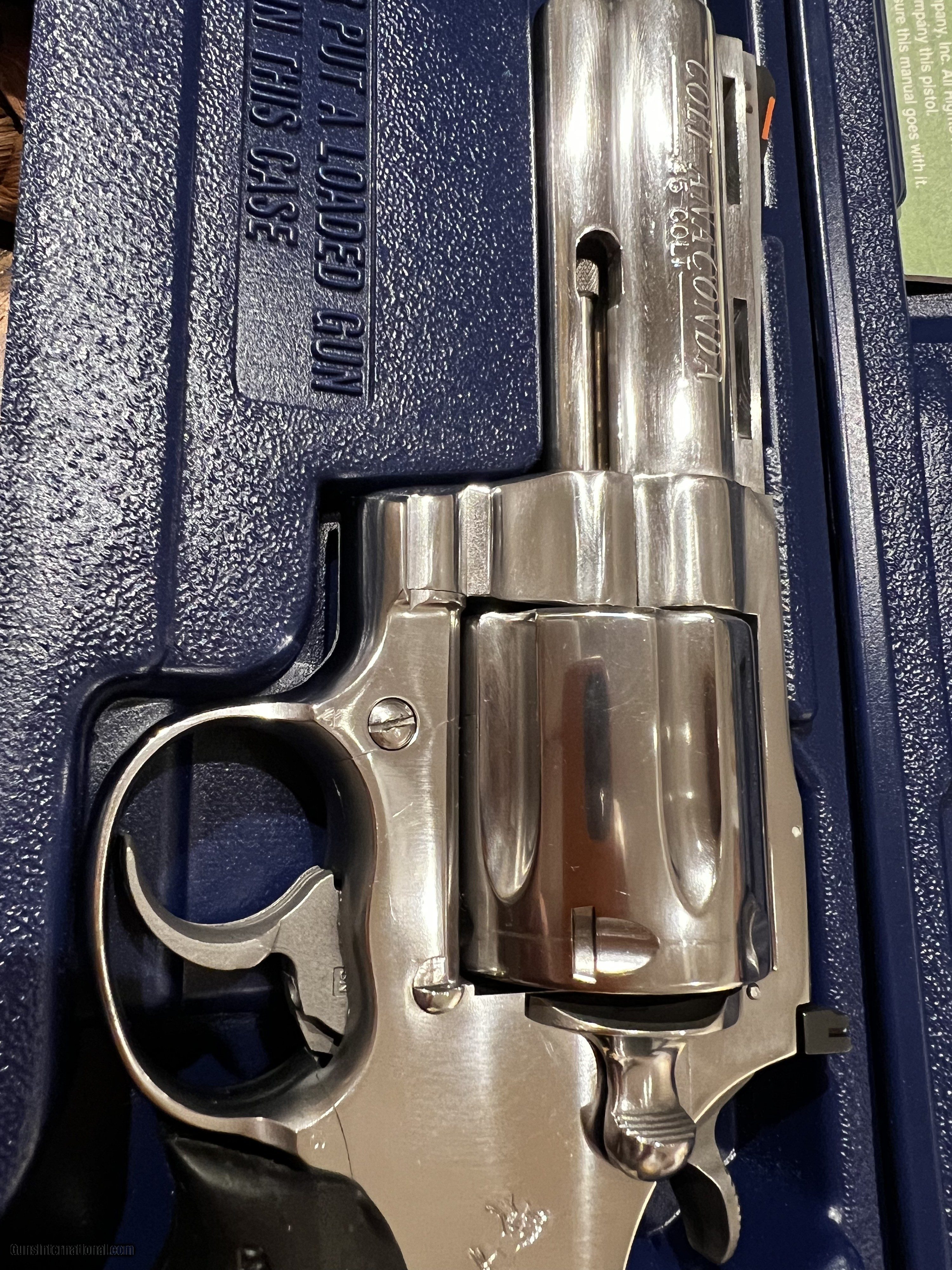 Description: 1994 Colt Anaconda 45 cal. with 4" barrel- Stainless Steel with stock rubber grip. Only 250 made. Boxes and owners manual included. I've never fired this gun and have owned for 8 yrs. A very nice and RARE revolver. Handgun Caliber: .45 Colt Manufacturer: colt Model: Anaconda Serial Number: mm54091 Barrel Length: 4 Condition: excellent Metal Condition: excellent Finish: SS Manufacture Date: 1994 Grips: rubber Price: $3,500.00 Shipping: $75.00 Buy Now Pay with
