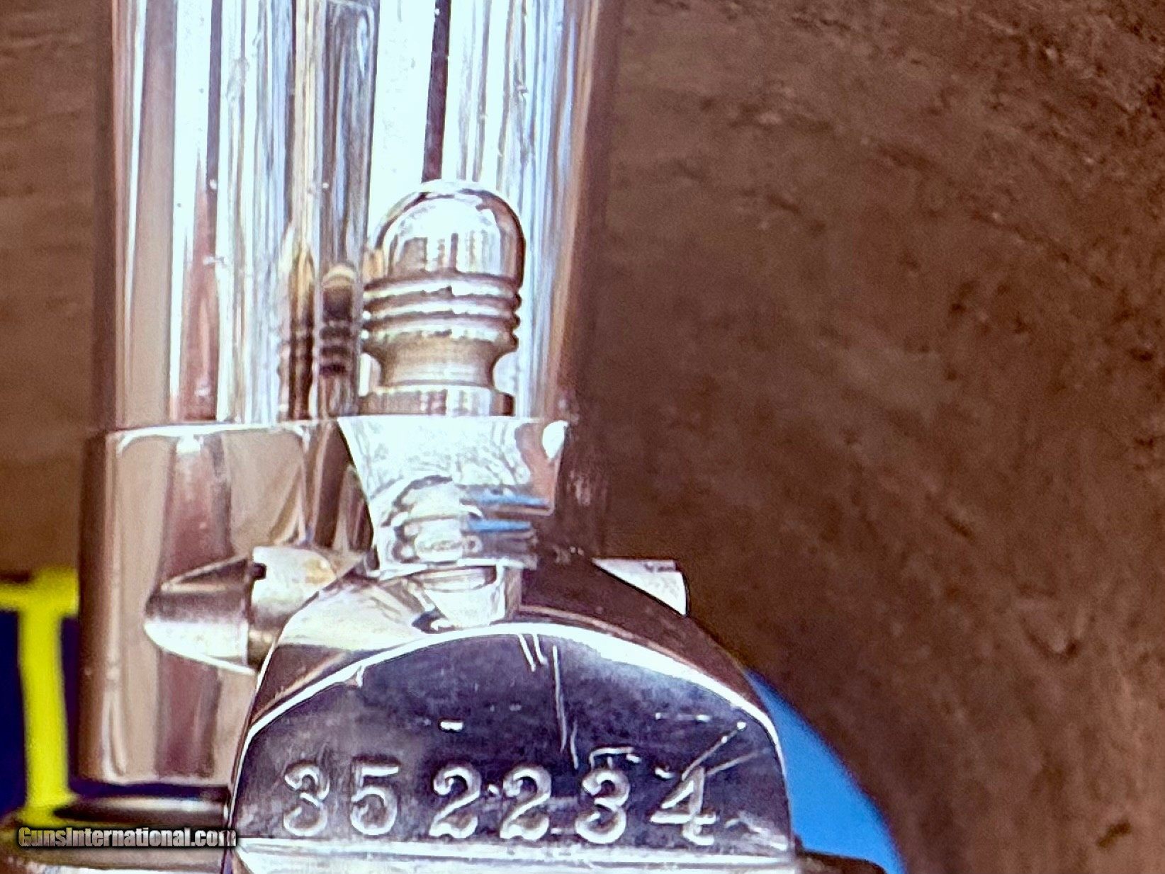 Description: Superb 100% original 1930 ColtSAA Nickel .45 Colt 51/2 barrel with letter. The revolver was shipped to Port Arthur Texas in 1930 as a 1 gun shipment The Colt is in as new condition which is remarkable for a near 100 year old pistol. It has absolutely beautiful original Colt ivory grips. The letter doesn't mention the grips but the serial number indicates a 1928 gun yet this one didn't ship until 1930 indicating the making of the grips there also marked inside with the last 3 digits of the serial number. The gun appears unfired other than factory test fired. There is no nickel loss anywhere.Rare to see a nickel gun in this serial range certainly a special order gun. Exceptional nice First generation shipped to Texas worthy of any collection. I'm terminally ill and selling my one of a kind collection in the next week . All reasonable offers considered. Thank you Layaway available. Price reduction to 10,500 on this beautiful single action army! SOLD Curio/Relic: Yes Handgun Caliber: .45 Colt |
