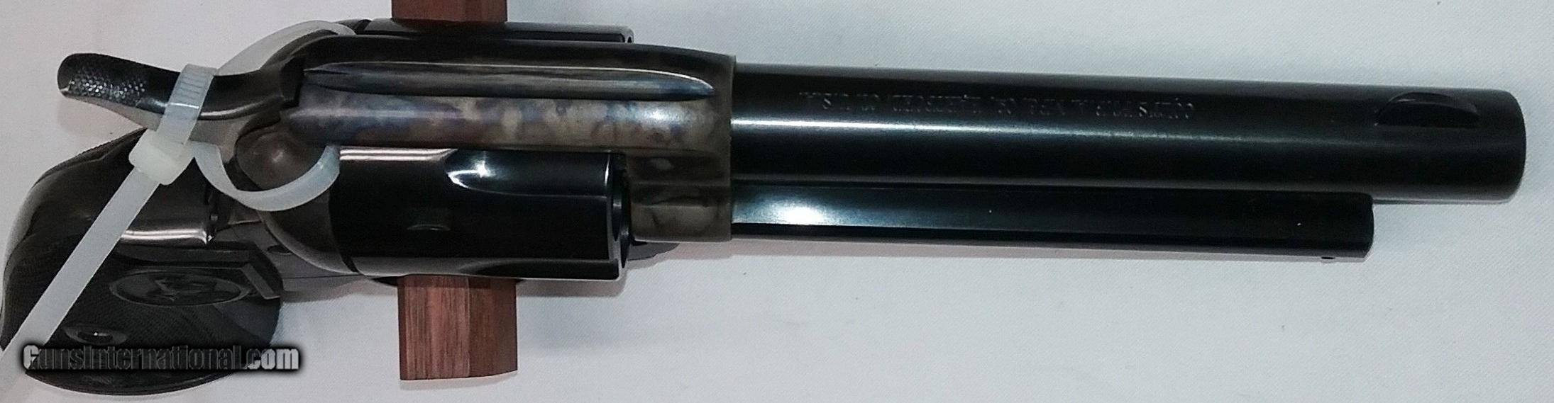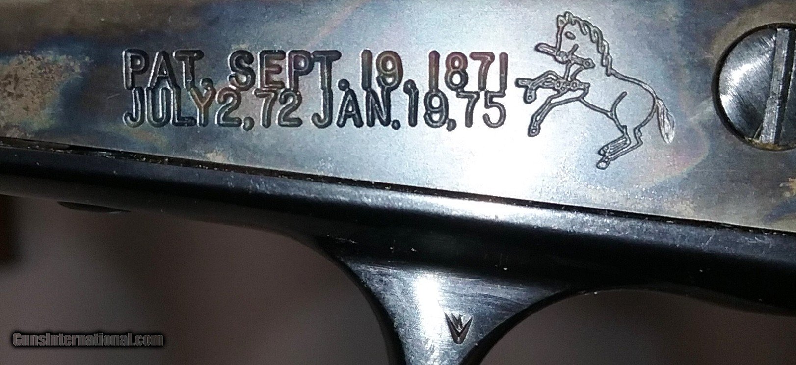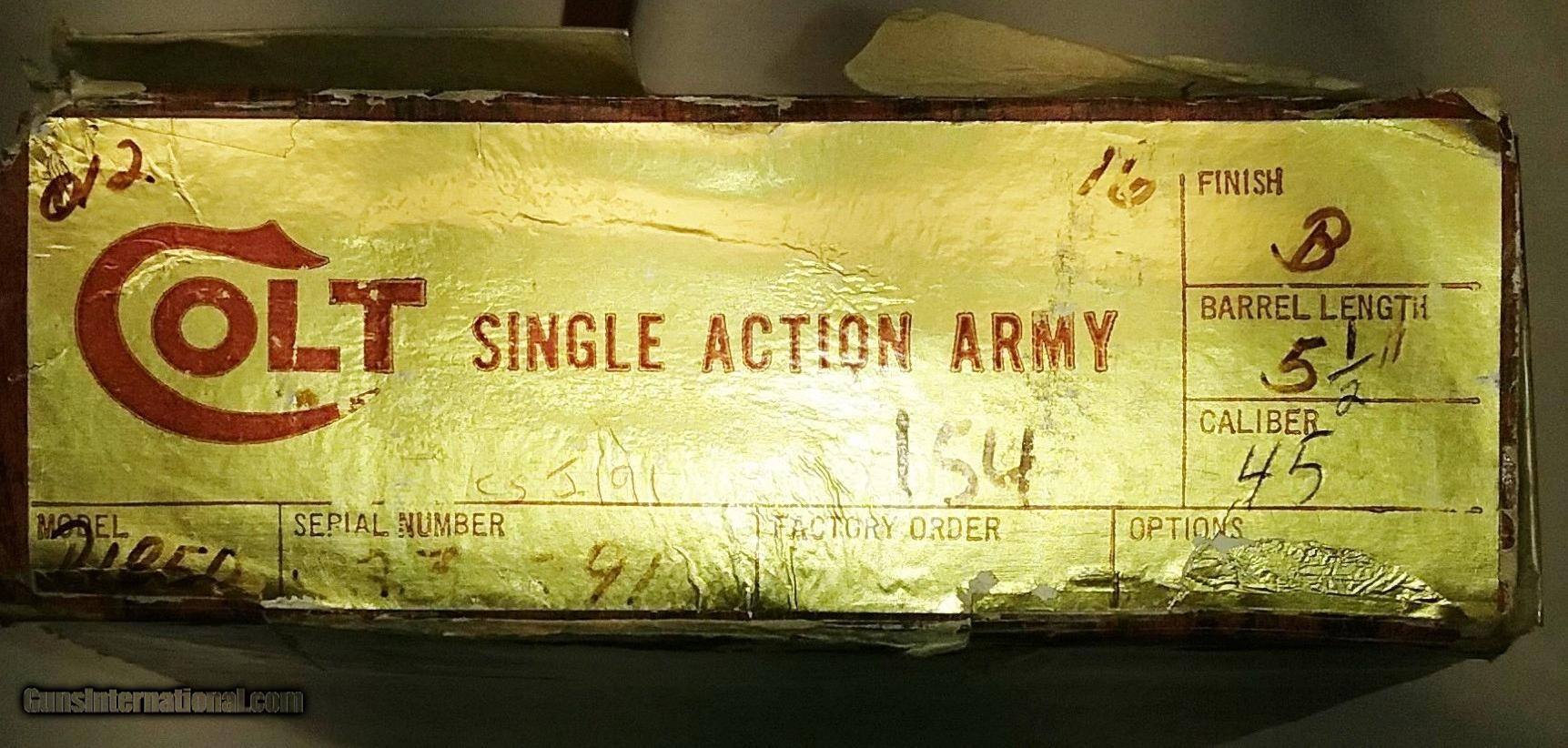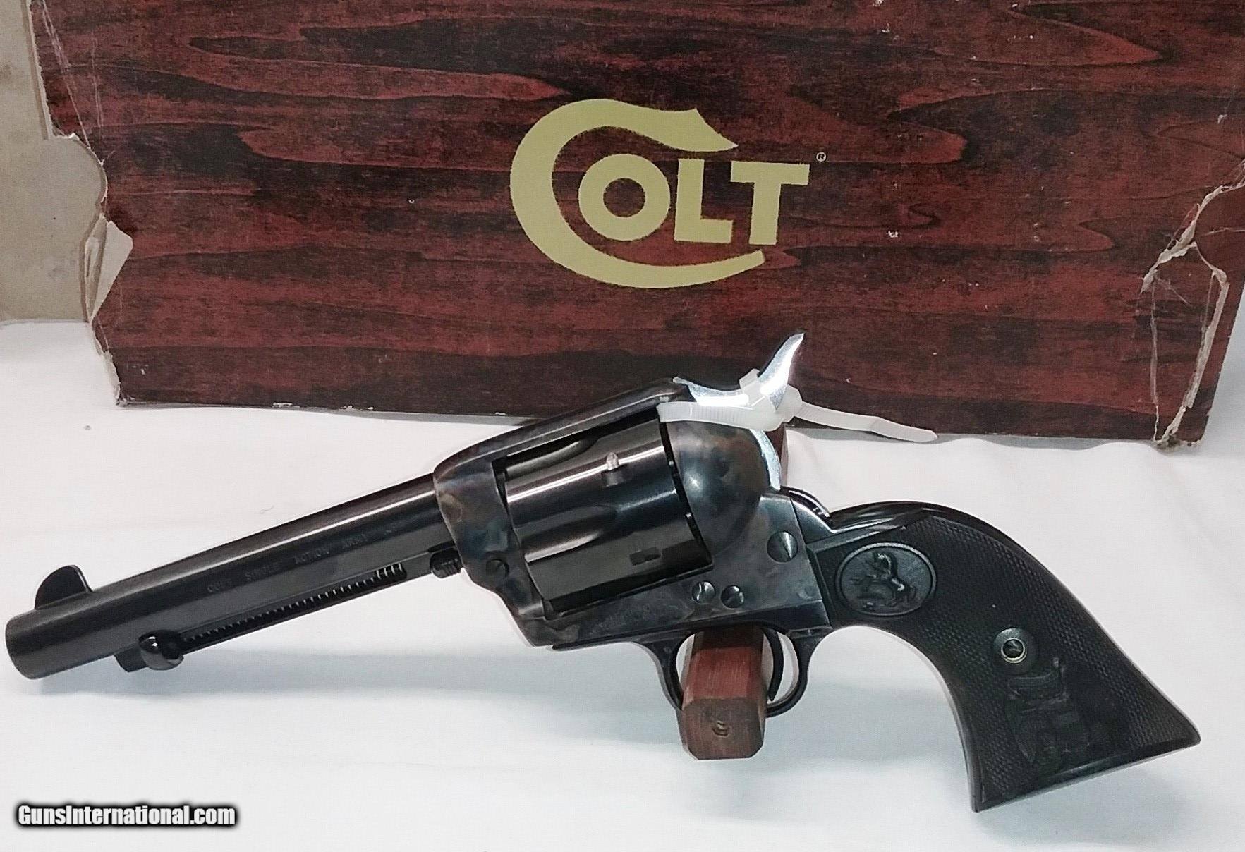 Description: C237 Colt SAA 45 Cal. Manufactured 1980 - Stk #C237 This Colt Single Action Army Revolver was manufactured in 1980 and is chambered in the 45 caliber. It has 5-1/2” blued round barrel that is in excellent condition. This pistol is unfired and the bore and cylinder are in excellent condition. The bluing is in excellent condition and features a color case hardened frame. The Hammer is blued, with the sides remaining polished steel. The checkered grips are plastic and feature the eagle and shield on the bottom along with Colt’s logo up top. This revolver comes with the original box and carton. In the box is the original Owner’s Manual, The Colt Companion, authorized dealer repair pamphlet, and a letter from Colt. Overall length is 11”, and weight is 2.2 lbs. Our stock number is #C237. Will ship to any FFL in the United States, buyer pays freight and insurance SOLD Handgun Caliber: .45 Colt Manufacturer: Colt Model: 1873 Bore: Rifled Condition: New Metal Condition: New Bore Condition: Excellent - Unfired Barrels: One Barrel Type: Round Action: Single Action Triggers: 1 Finish: Blued Weight: 2.2 Sights: Fixed Manufacture Date: 1980 Item Location: OR - Oregon |