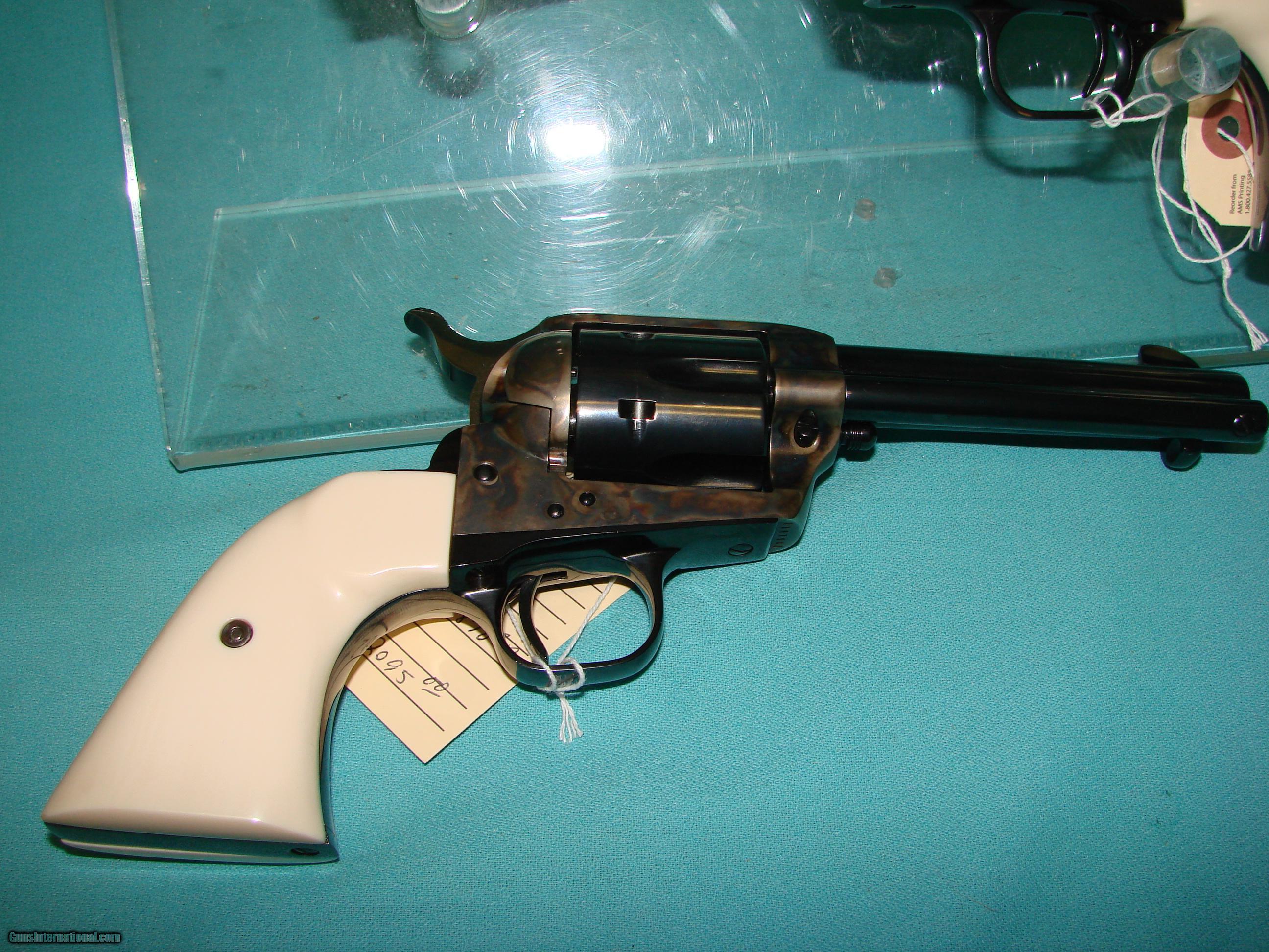 Description: Colt Single Action Army 4 3/4in barrel Blue with Case Hardened frame Faux Ivory Grips 45long colt caliber Factory box included Safe Queen acquired from estate One of two available *No extra fees, You only pay for the cost of the item & $35 for shipping{AK&HI Extra} Arizona Residents Must Pay Sales Tax. *Legendary Guns in Phoenix AZ 602-242-1195 Hours of operation M-F 10-6 Sat 10-5 Closed Sundays. *All items online are also for sale at our Phoenix location *Please call the shop for any questions and to confirm availability before buying. We are happy to answer all questions. *We offer a 3 day inspection period with a full refund if item was misrepresented. We accept returns for any reason within the 3 day inspection period with NO refund for shipping coming or going and a 15% restocking fee. *We Only accept/consider trades that can be brought to our Store in Phoenix. *Your State Laws are your Responsibility to know. *Items ship once your Dealers FFL is received SOLD |