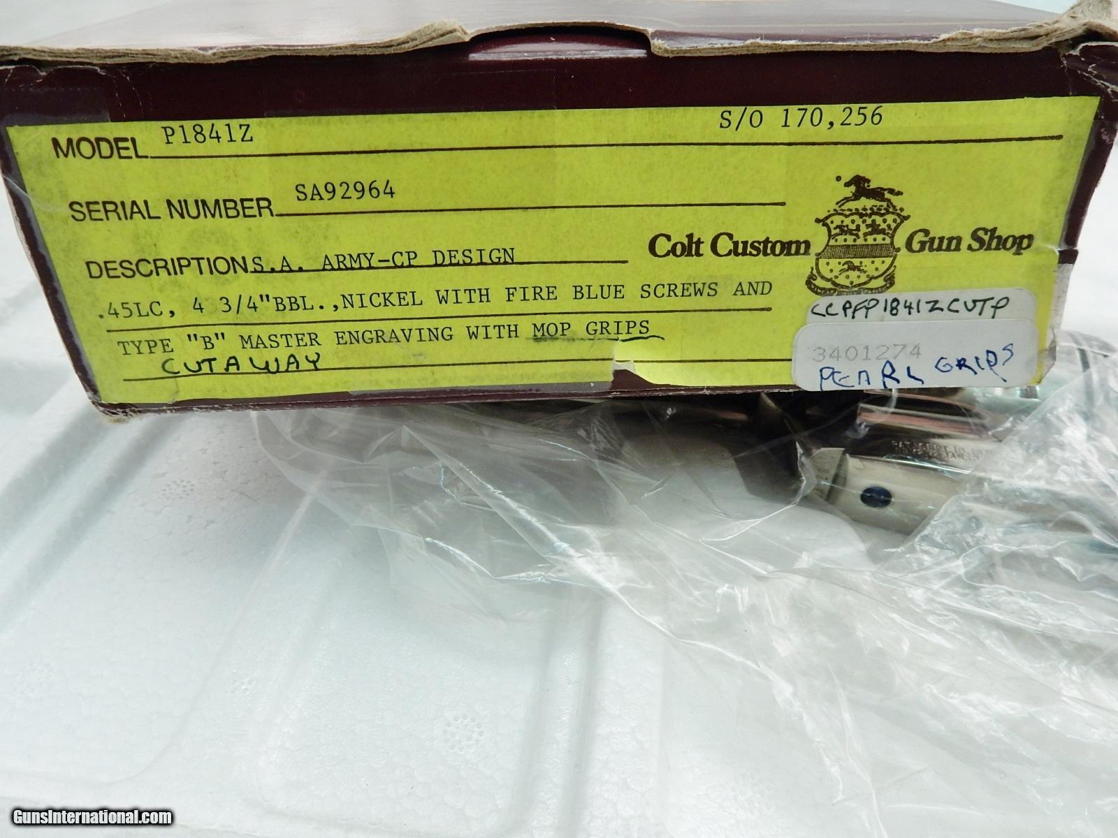 Colt SAA Cut A Way Engraved Pearl NIB