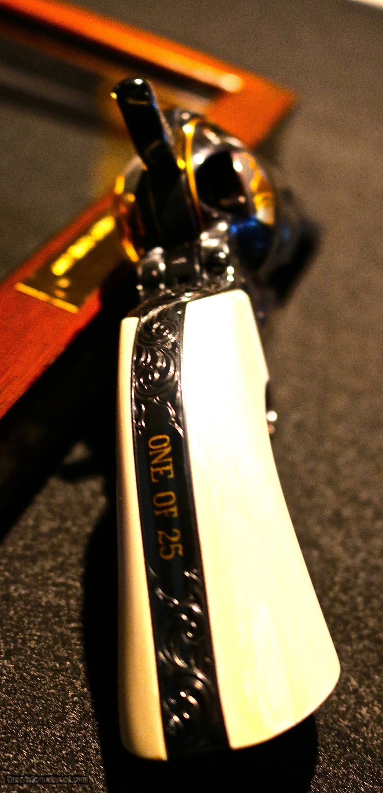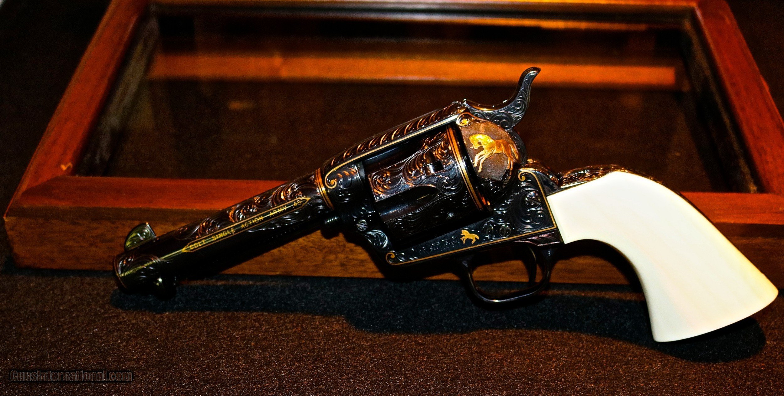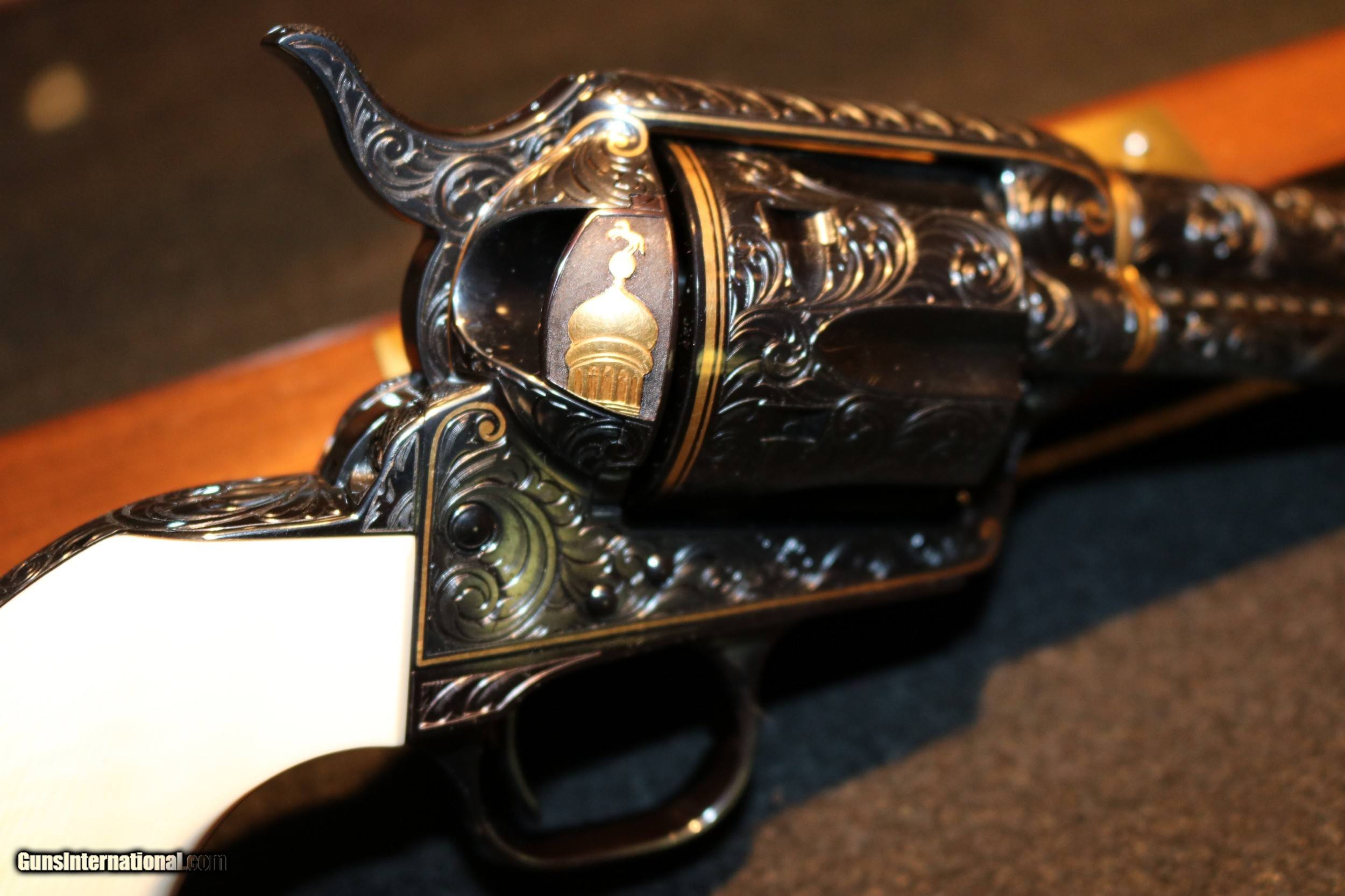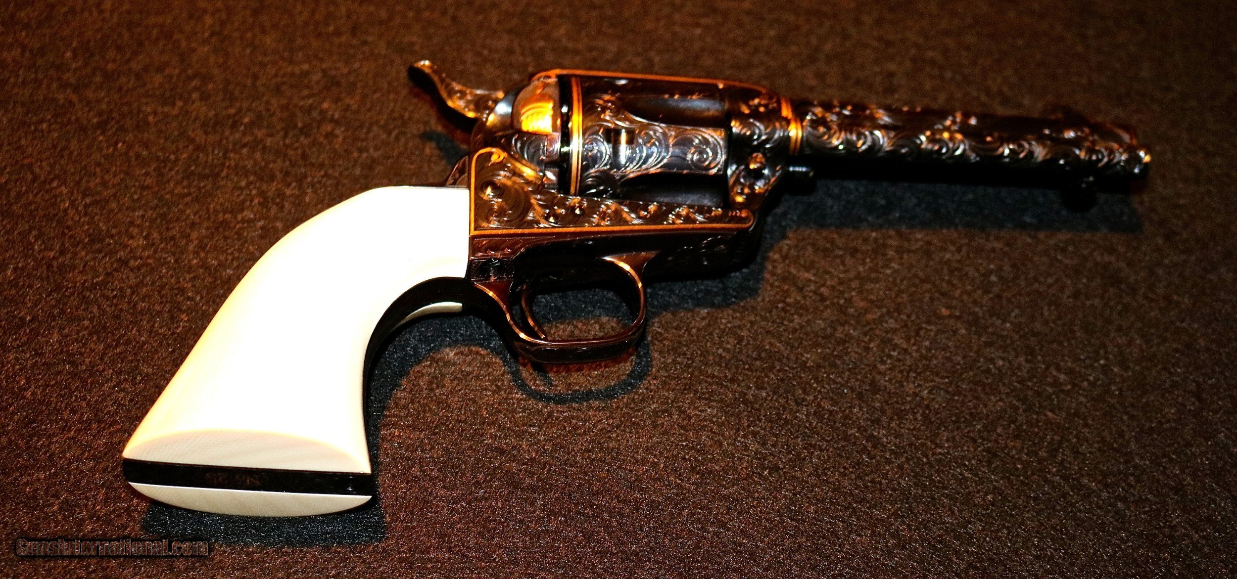 Description: Production was limited to 25 from American Historical Foundation. Hand engraved, 18k gold, ivory grips. Never fired. This is a collectable number #twenty five! Only one owner bought new for 10K. SOLD Handgun Caliber: .45 Colt |
