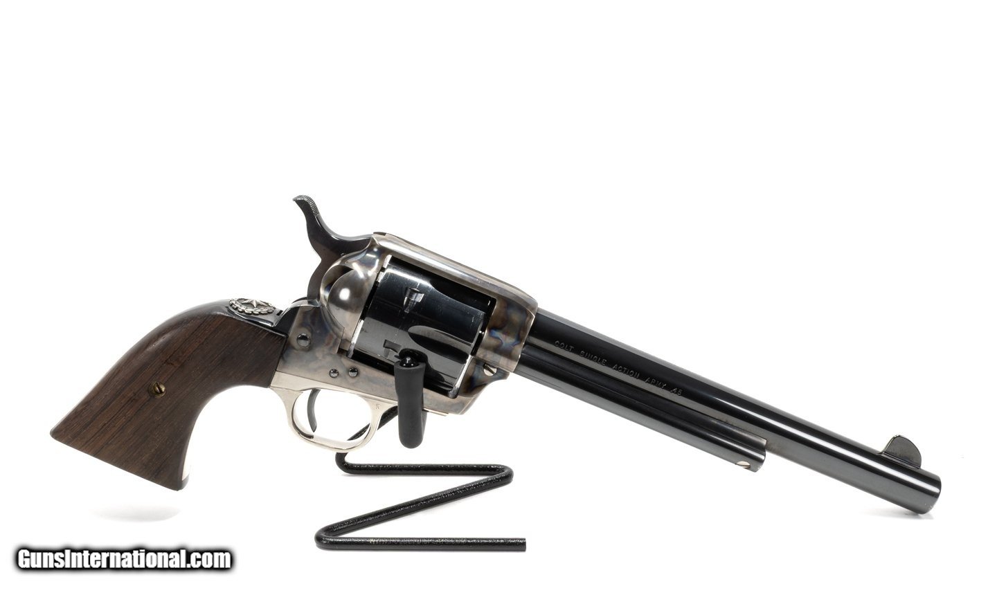 Manufacturer: Colt Model: Single Action Army (SAA) Condition: Very Good Caliber/Gauge: .45 Long Colt Action: Single Action Only Barrel Length: 7.5\" Capacity: 6 Finish: Black / Case Hardened Grips: Wood Origin: Made in USA What‚s Included: Firearm only
