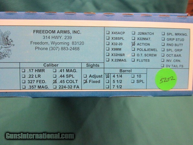 Freedom Arms Model 97 Premier grade .45LC 4 1/4" Fixed sight new in box