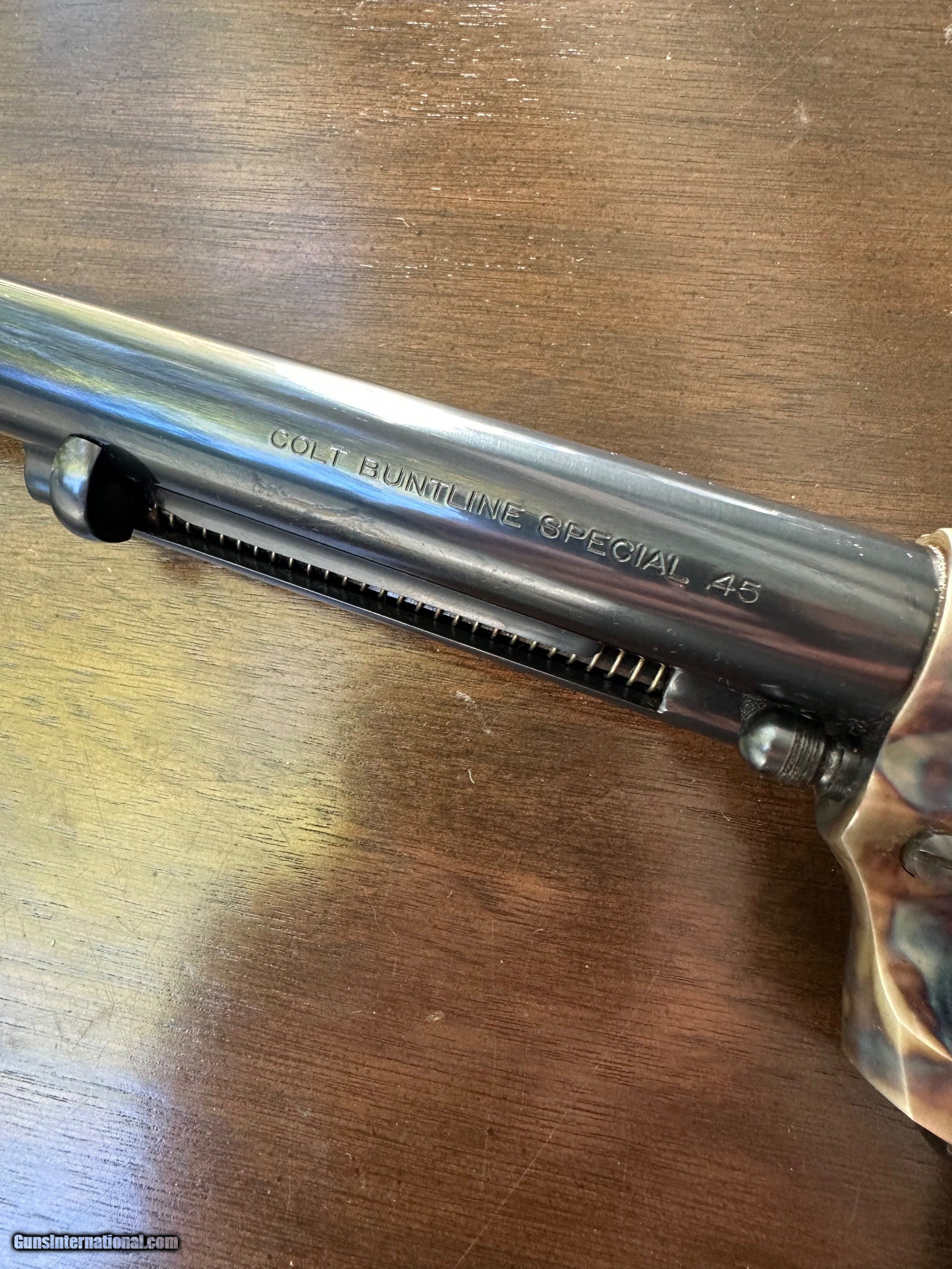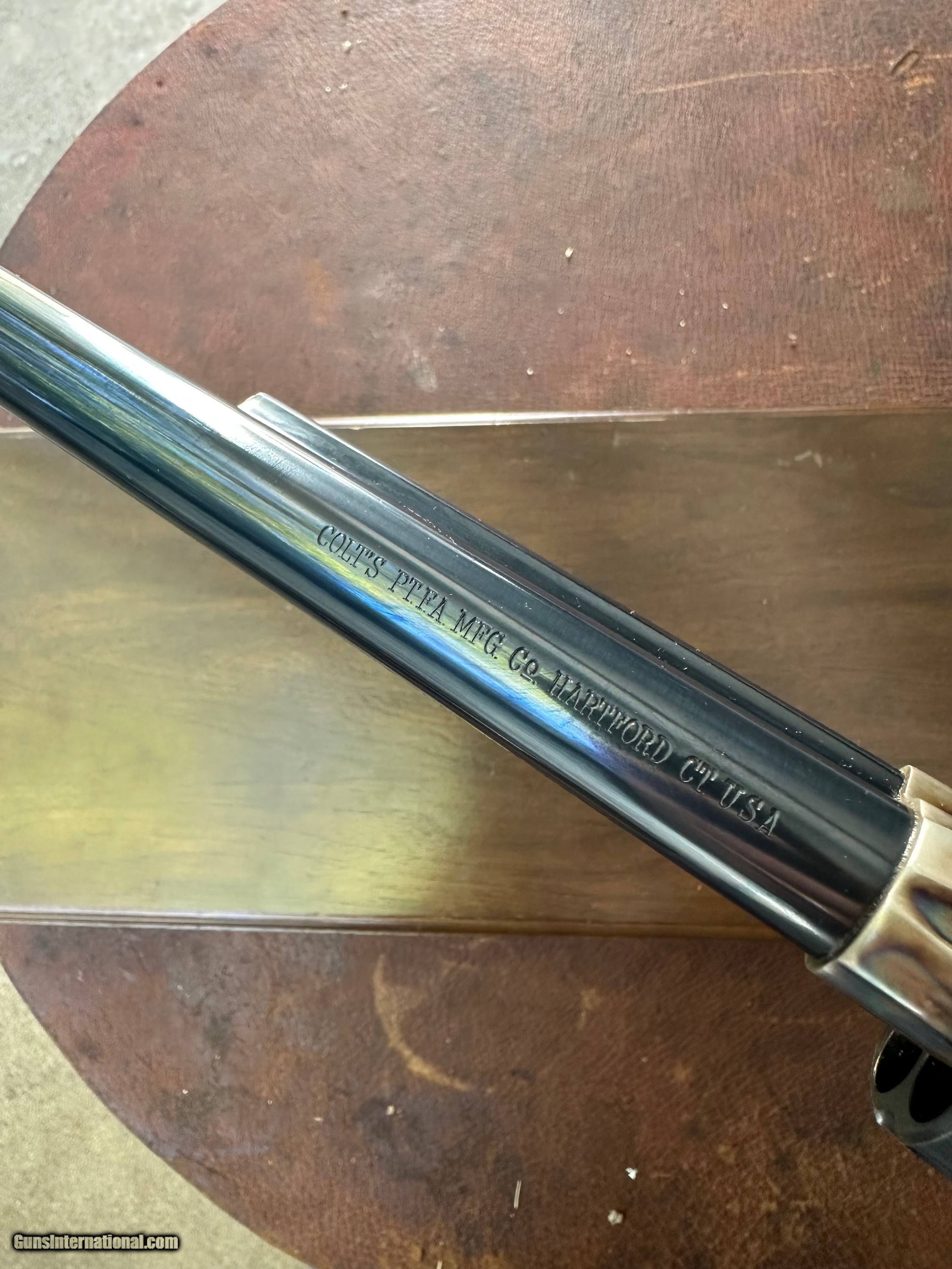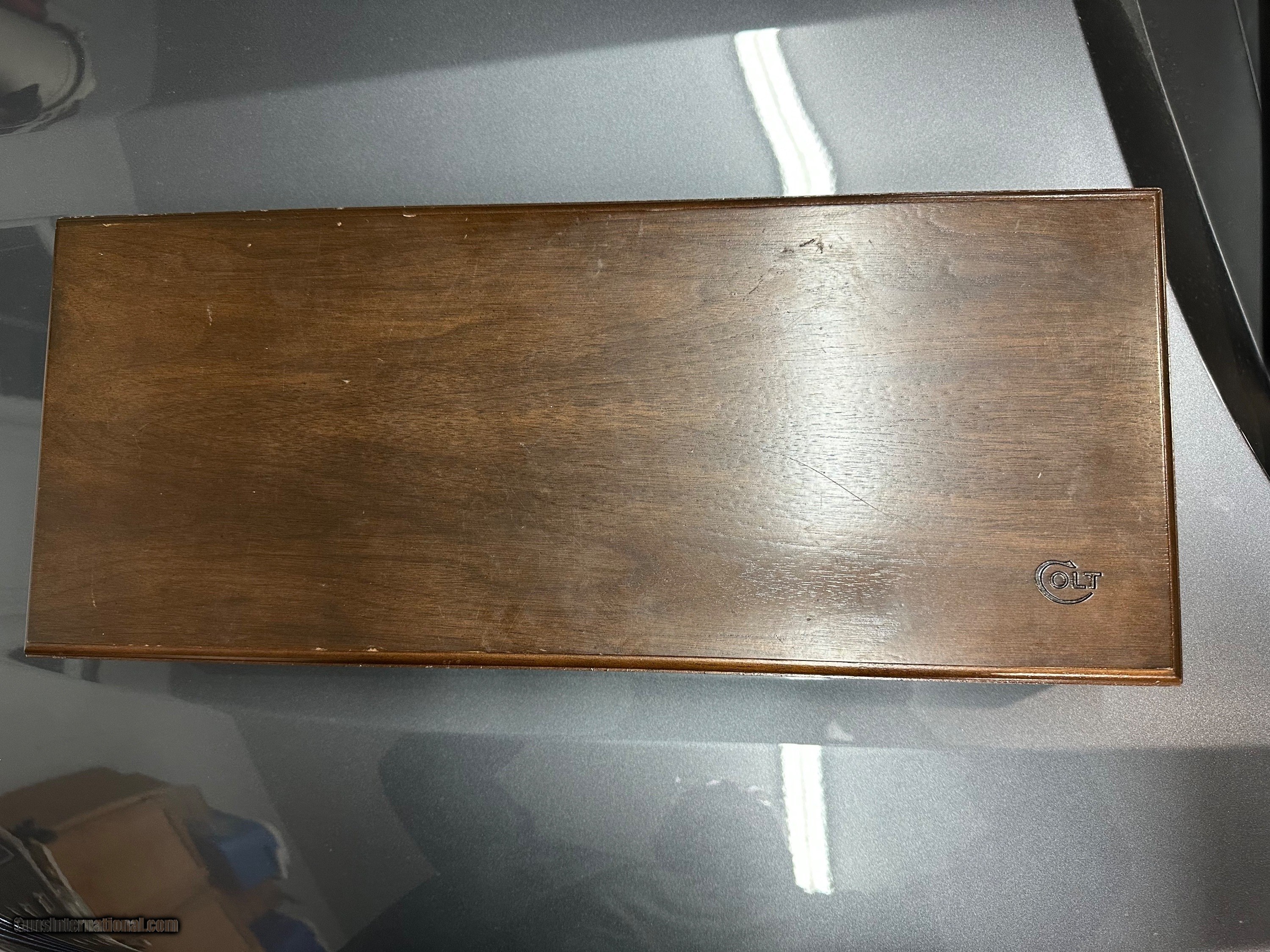 Colt 45 cal Buntline new in its Factory presentation case. This is a 2nd gen gun with the factory wood grips. No drag line and in perfect condition. Manufactured in 1971
