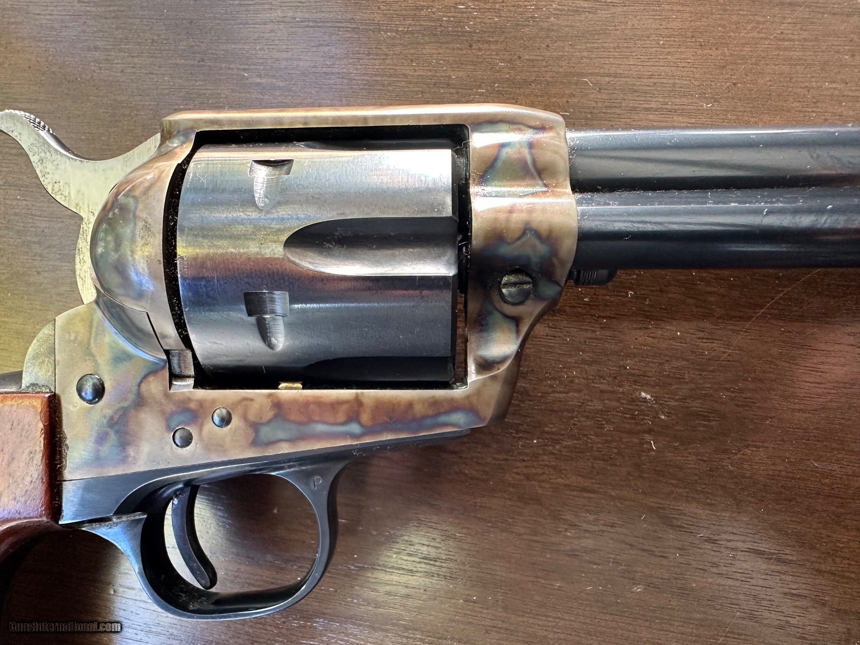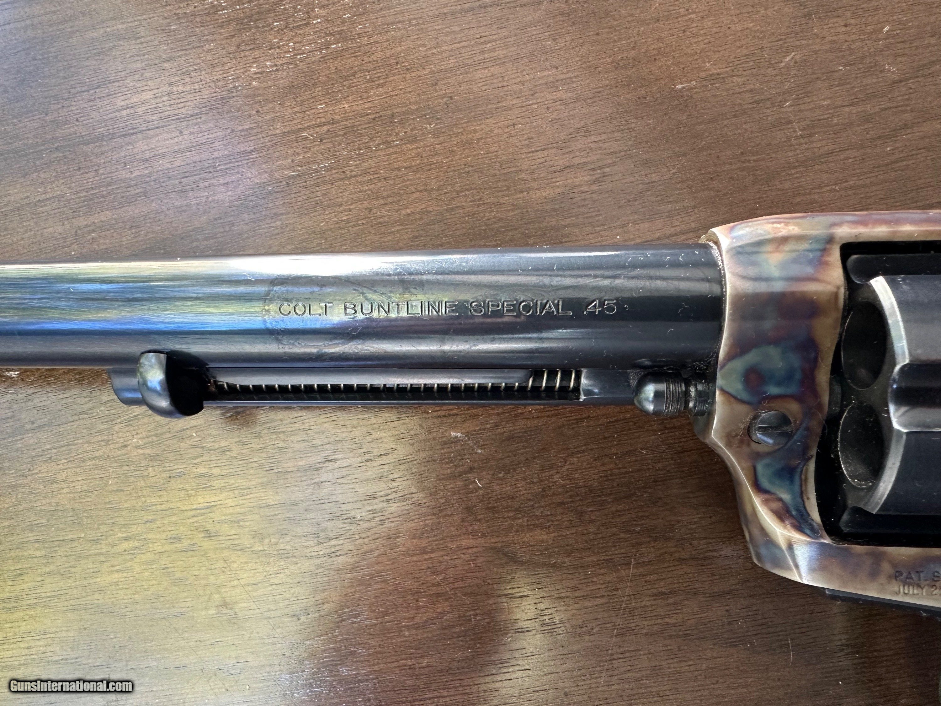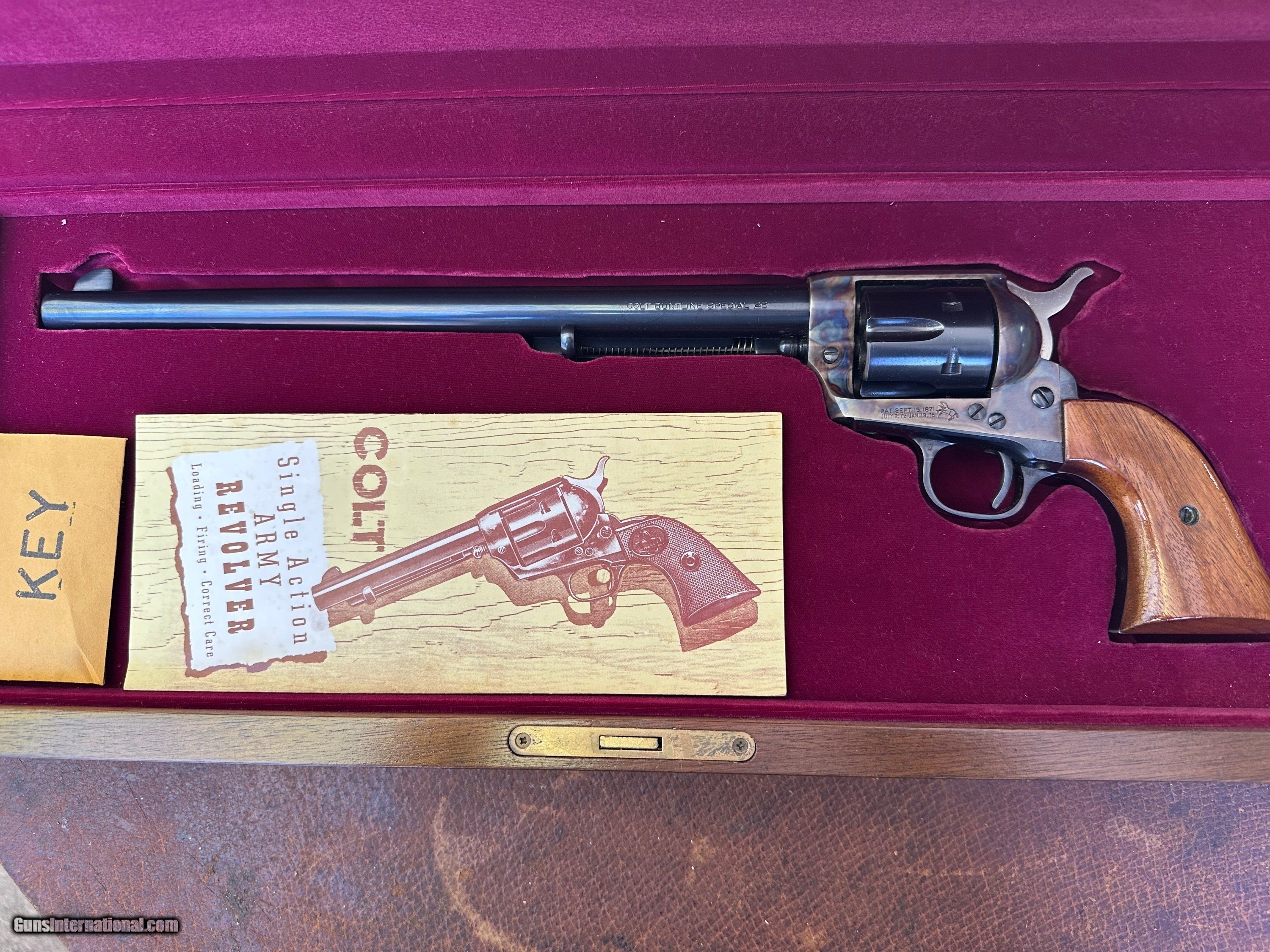 Colt 45 cal Buntline new in its Factory presentation case. This is a 2nd gen gun with the factory wood grips. No drag line and in perfect condition. Manufactured in 1971