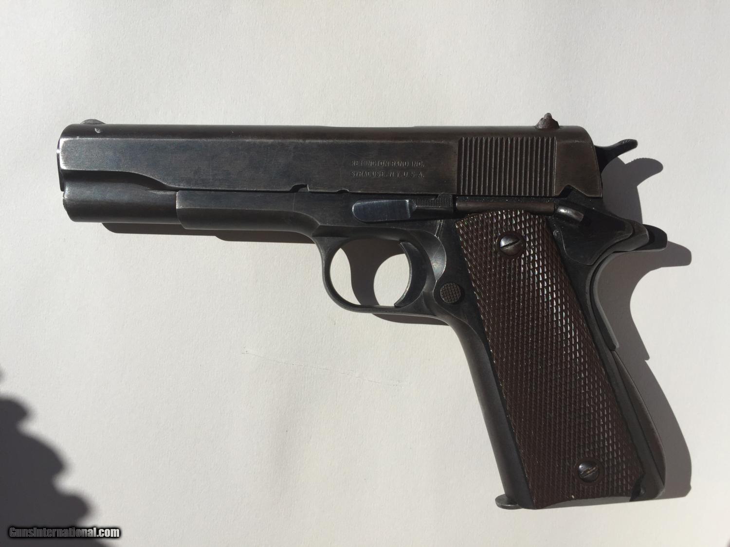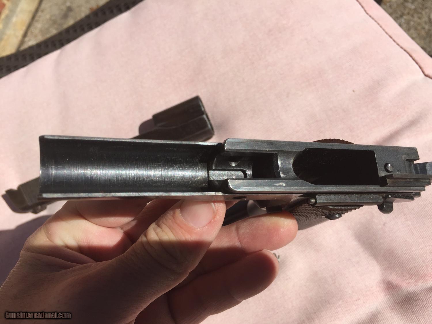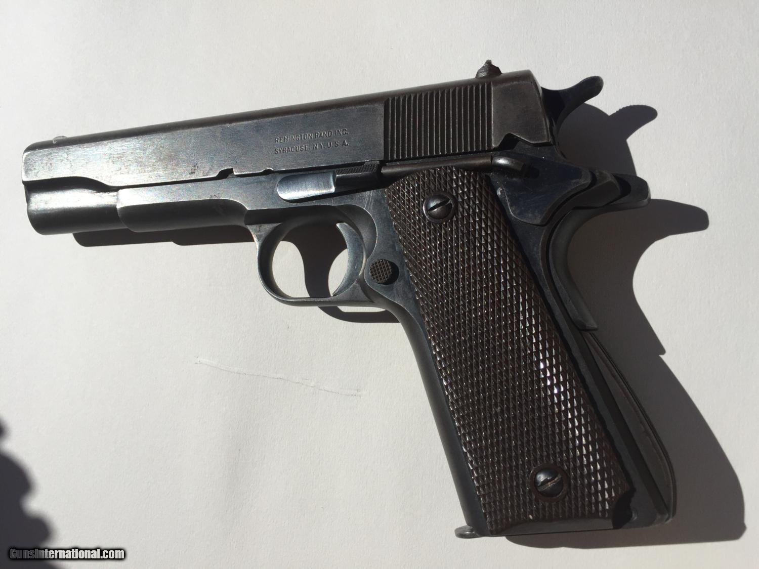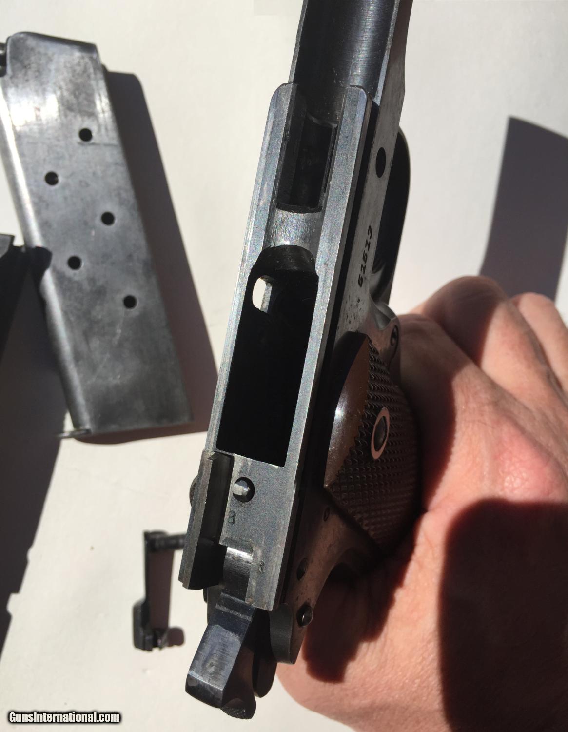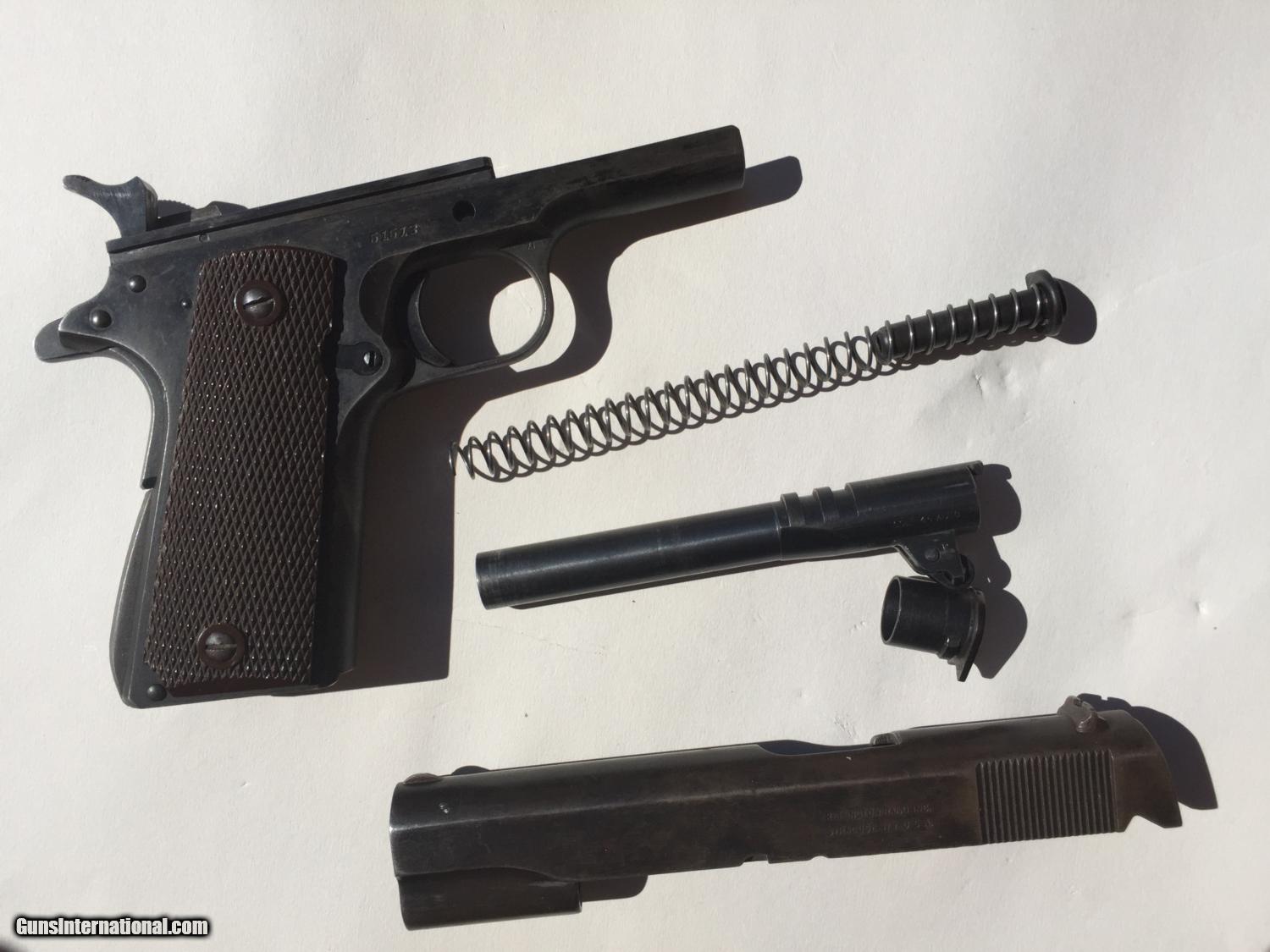 Description: I have been told this is :Colt .38 super frame and a WW2 Remington slide. An original Colt .45 frame with a five digit number would be too early for this type of frame (it's an A-1 frame) but the .38 super frame with a five digit number would be a 1930s frame. This is a piece of classic american gun history, but while not a US Military piece, it still has significance in the time it was produced. Pros: - Great project gun or to part out - Originals Low serial, no scratching off or buffing out marks - A solid gun and has been to the range before in last 5 years. - No cracks, damange or rust - Comes in neat wooden display box Cons: - Some non matching parts from a collecting perspective - Not stamped for US ordance - No parkenizing apparent, I cannot tell if it was refinished Please buy this from me to add to your collection! I'm willing to trade w cash for the right deal, looking mainly for pistols, S&W, etc. Otherwise, I'm open to offers and opinions :) SOLD Curio/Relic: Yes Manufacturer: Remington-Rand Model: 1911 Serial Number: 51513 Caliber Info: .45 Chambers: 1 Ejectors: 1 Condition: Used Action: Auto Triggers: 1 Manufacture Date: 1944 |