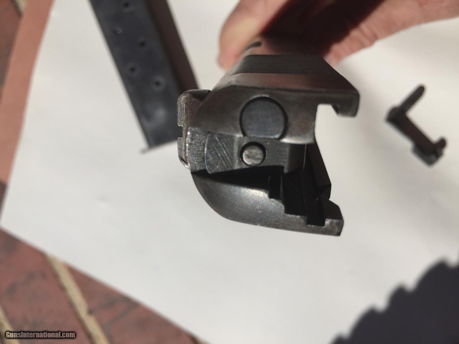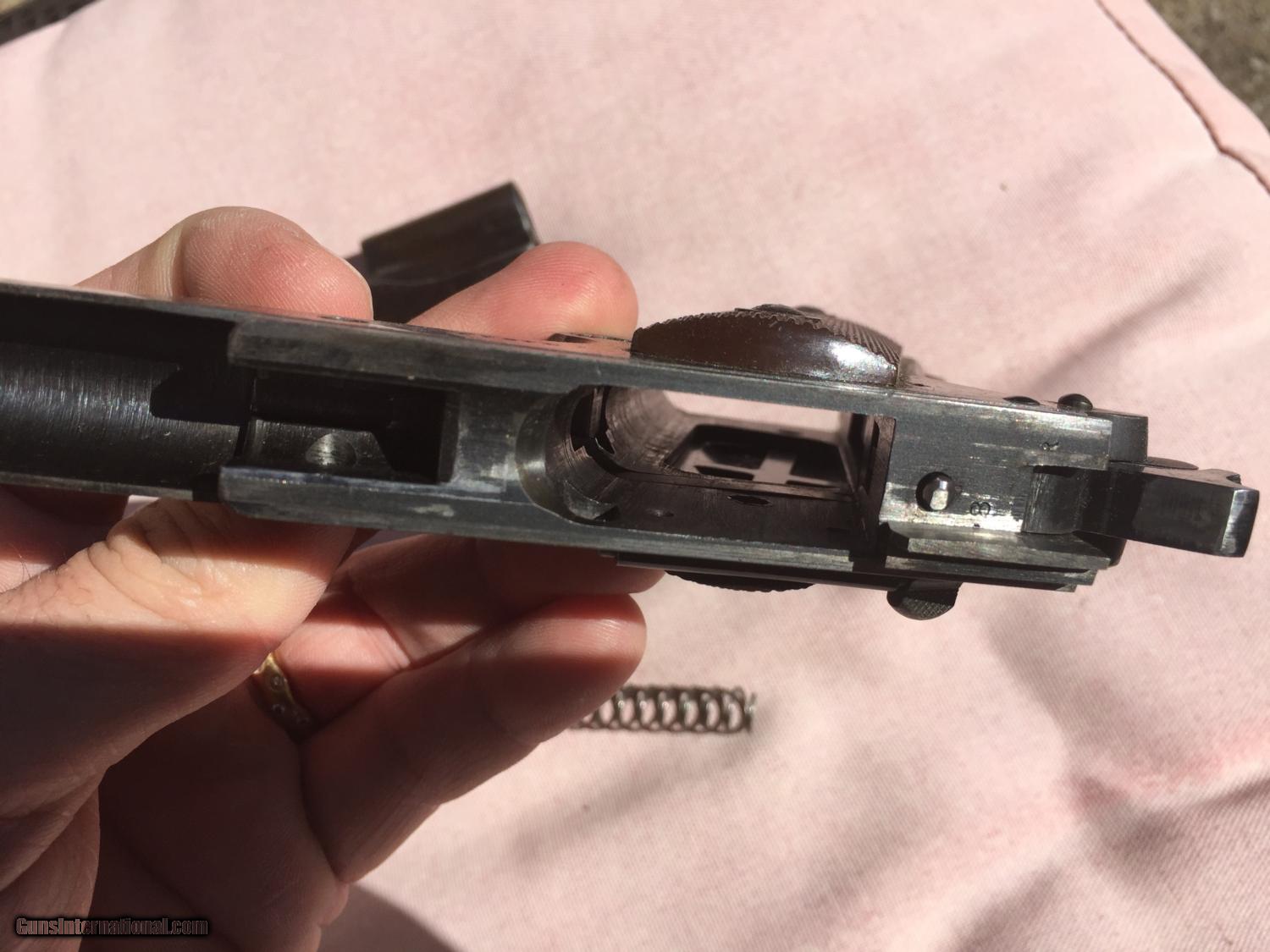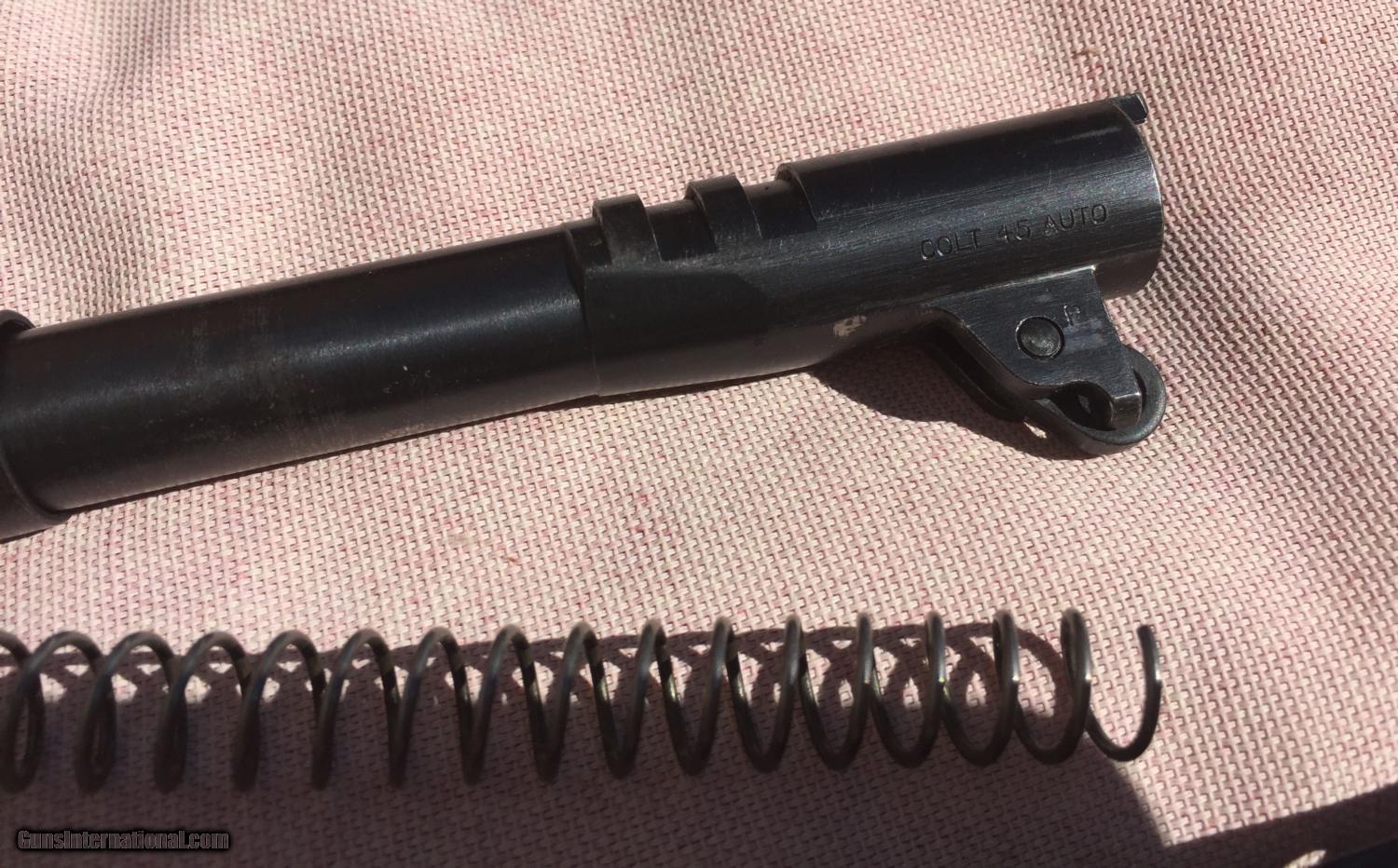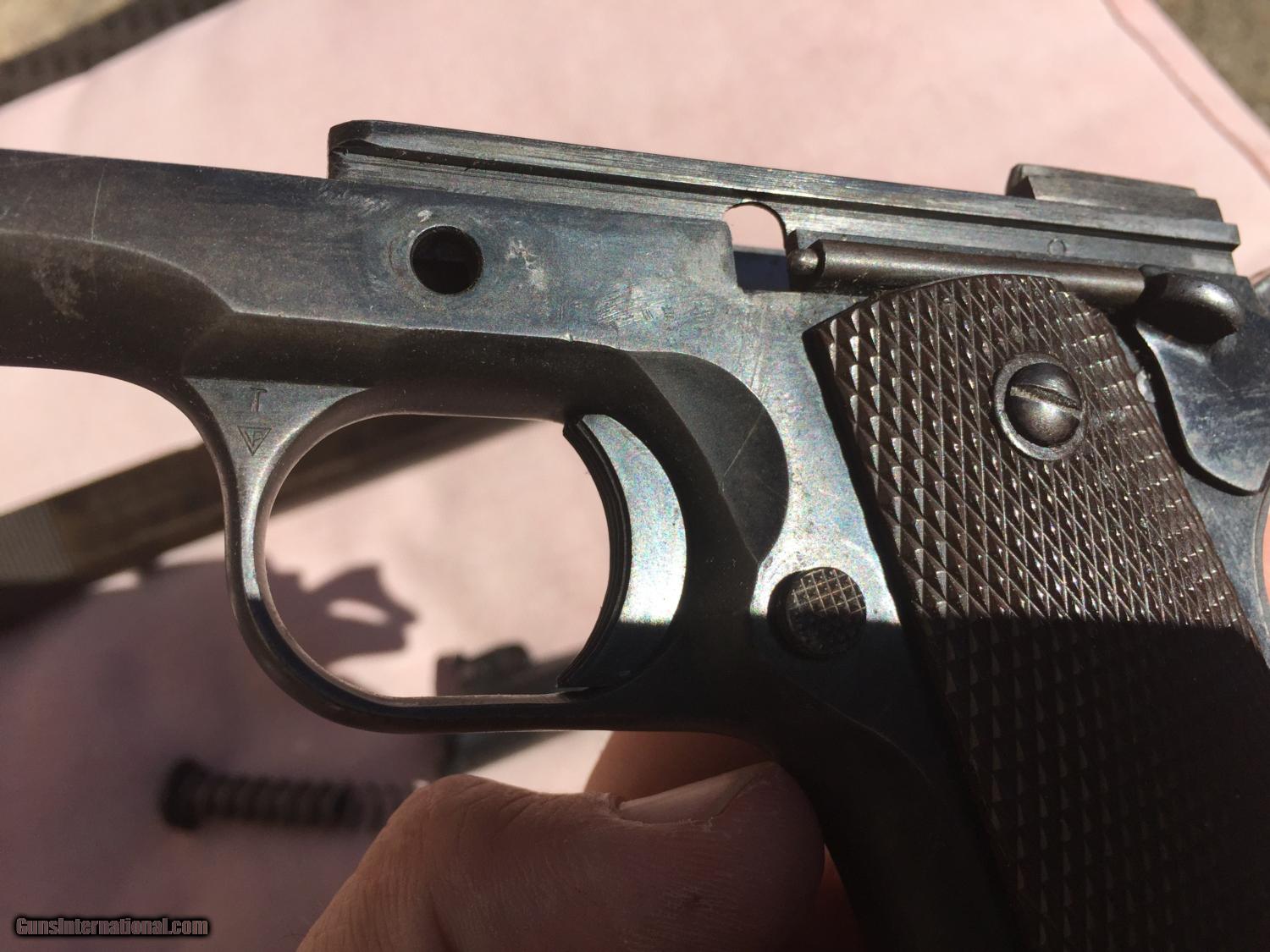 Description: I have been told this is :Colt .38 super frame and a WW2 Remington slide. An original Colt .45 frame with a five digit number would be too early for this type of frame (it's an A-1 frame) but the .38 super frame with a five digit number would be a 1930s frame. This is a piece of classic american gun history, but while not a US Military piece, it still has significance in the time it was produced. Pros: - Great project gun or to part out - Originals Low serial, no scratching off or buffing out marks - A solid gun and has been to the range before in last 5 years. - No cracks, damange or rust - Comes in neat wooden display box Cons: - Some non matching parts from a collecting perspective - Not stamped for US ordance - No parkenizing apparent, I cannot tell if it was refinished Please buy this from me to add to your collection! I'm willing to trade w cash for the right deal, looking mainly for pistols, S&W, etc. Otherwise, I'm open to offers and opinions :) SOLD Curio/Relic: Yes Manufacturer: Remington-Rand Model: 1911 Serial Number: 51513 Caliber Info: .45 Chambers: 1 Ejectors: 1 Condition: Used Action: Auto Triggers: 1 Manufacture Date: 1944 |