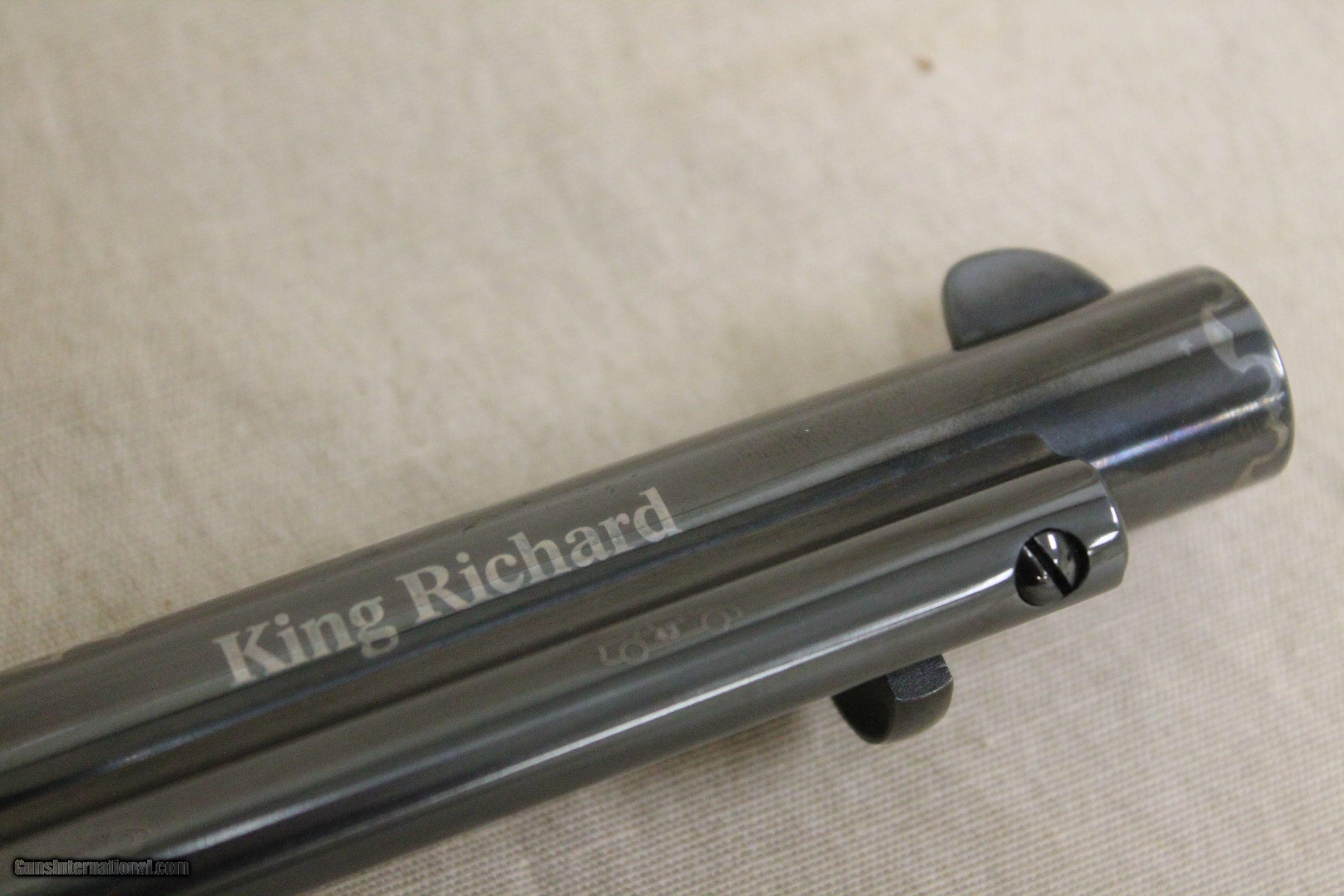 Description: The Richard Petty single action revolver made by Uberti. This revolver is number 251 out of 1000 ever made. Each tribute is decorated by craftsmen specifically commissioned by the company "America Remembers". The grips are made of faux ivory with the incised signature "Richard Petty 43". Caliber is .45LC with a 5 1/2" barrel. Around the cylinder ridges and on the frame beside the cylinder, are the years of all seven Winston Cup victories. Comes with its own special Richard Petty display box. On display at Mackeys Landing Firearms. Call: 252-793-4040 Business Hours Mon-Sat: 9-6 Sun: 12-5 SOLD Caliber Info: .45LC Condition: Like New |