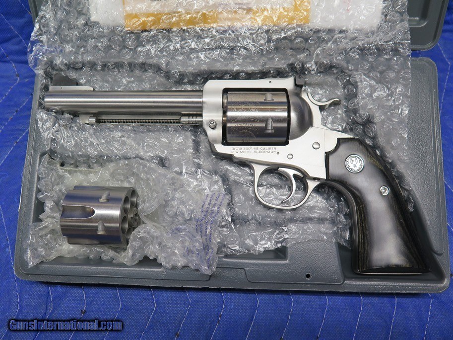 Description: MAKER: Ruger** MODEL: New Model Bisley Blackhawk KRBN-455WX** BARREL : 5-1/2”** CALIBER: 45 LC / 45 ACP** ACTION : Single** GRIPS: Laminated WEIGHT: 2#6oz** OTHER FEATURES: Satin Stainless Steel. Both Engraved 45 Long Colt and Fluted 45 ACP cylinders. Adjustable sights. CONDITION: Excellent, no dings or nicks. Unfired. Rated at 98%+.** DESCRIPTION: This is an “As New” Bisley Blackhawk. ** METHOD of PAYMENT: Cashier’s Check** SHIPMENT: Buyer pays actual shipping and Insurance. Must ship to an FFL holder. If your receiving FFL requires shipment from an FFL holder, additional charges will be paid by the buyer. Ships after receipt of payment and receipt of signed FFL. Buyer is responsible for providing FFL from receiving FFL holder. Ships only within Continental US. FFL holder will be contacted for verification prior to shipment.** Handgun Caliber: .45 Colt Price: $1,099.00 Contact Seller |