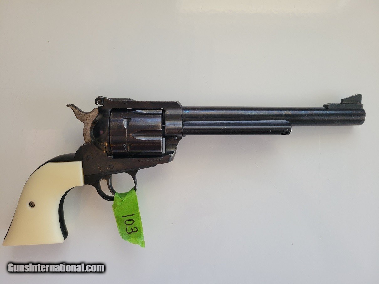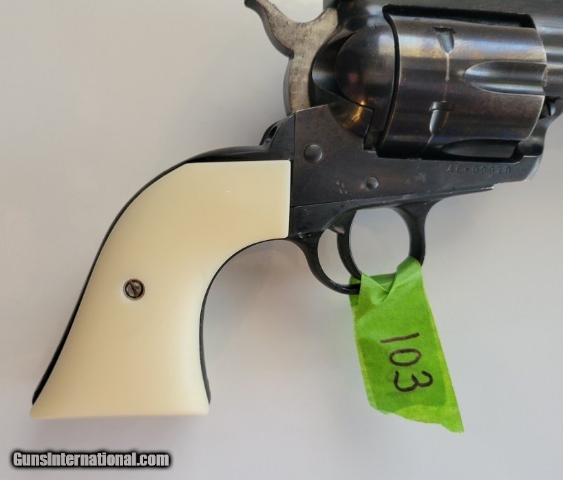 Description: Offering today we have a 1974 Ruger New Model Blackhawk chambered in 45 Colt. The revolver has a bbl length of 7.5', 6 round cylinder, fixed front and adjustable rear sights. The blued finish is in very good condition with a few wear marks from storage and possibly holster wear - no rust (see photos). The factory grips have been replaced with imitation ivory. I do not have the factory grips - This is a very nice Ruger handgun that is perfect for the range or hunting. The sale is for what is shown, no box, no paper. This is a used handgun and I make no claims to history, round count or accuracy. It is advised that if you are unfamiliar with handguns and this being a used firearm, you have it examined by a competent gunsmith. There is a 3 day non firing, non disassembly return provision that is offered so long as the item is returned as shipped at buyer's expense. The 3 day period starts when the firearm is received by the transferring FFL and as noted by USPS tracking. Please review and the images and email with any questions you might have. I am a licensed FFL dealer with many years experience selling nationally, internationally and on the Internet. Shipping to your FFL in the lower 48 is $35 (lower 48) insurance is EXTRA but highly RECOMMENDED. Absolutely NO California, New York or Maryland Sales. No exceptions. No face to face sales - must ship to your FFL - NO EXCEPTIONS- I ship USA only - I live in a remote area and cell service is spotty. The best way to contact me is using the Guns International email that you can access at the upper right panel that says: Email Seller. NO TRADES. ******IMPORTANT**** PLEASE REMEMBER TO REFERENCE MY INVENTORY NUMBER THAT WILL INDENTIFY THE FIREARM YOU ARE WANTING TO PURCHASE. Accepted methods of payment are USPS Money order or cashier's check drawn on your bank. NO CREDIT CARDS Please include a copy of your dealers FFL with payment. Please contact me with any questions you might have. Mail payment and FFL to: Gary Martin 601 Hale St. Llano, TX 78643 Handgun Caliber: .45 Colt Manufacturer: Ruger Model: Blackhawk New Model Barrel Length: 7.5 Condition: Very Good Metal Condition: Very Good Bore Condition: Excellent Action: Single Finish: Blue Sights: Adjustable/rear Grips: Plastic Price: $600.00 Shipping: $35.00 Contact Seller |