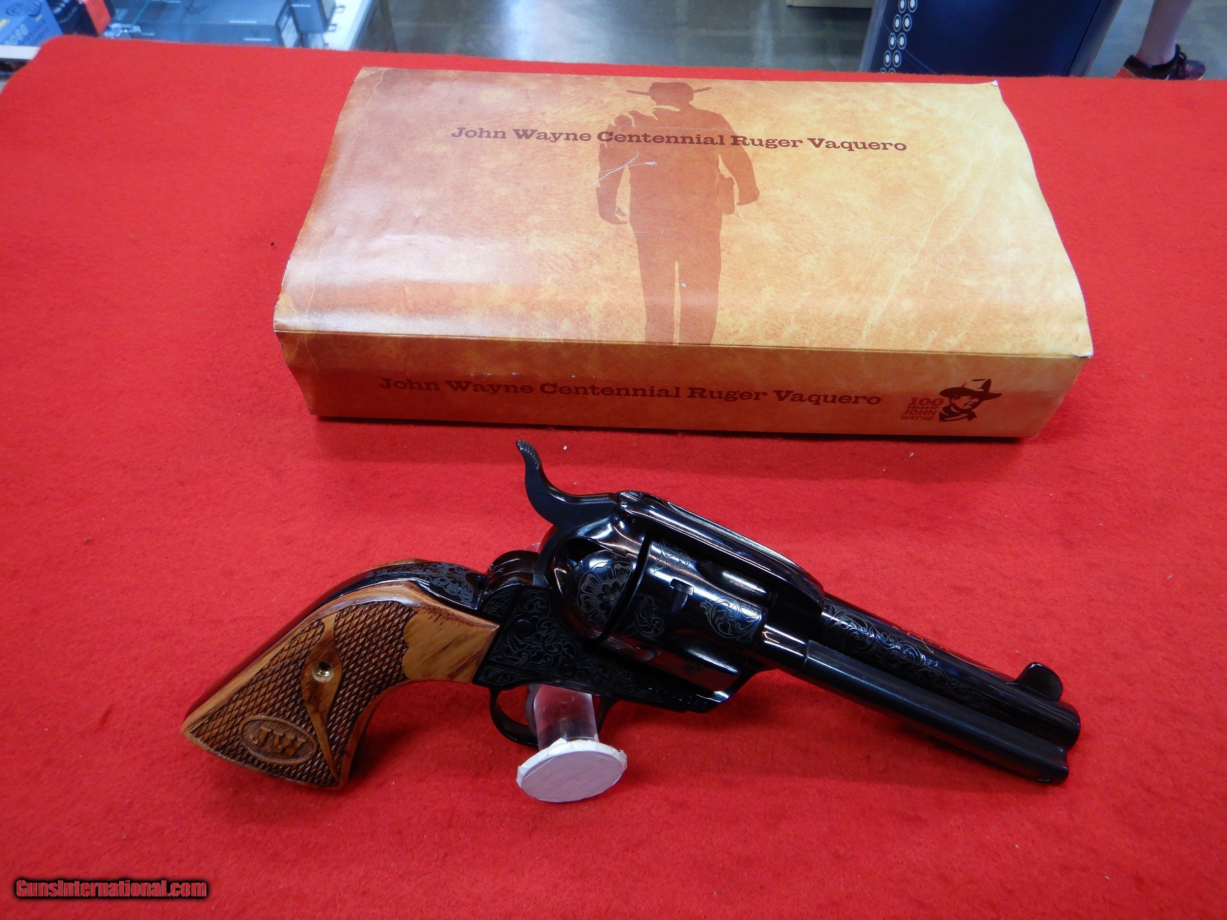 RUGER PRE-OWNED UNFIRED ENGRAVED BLUE JOHN WAYNE COMMEMORATIVE VAQUERO .45 COLT