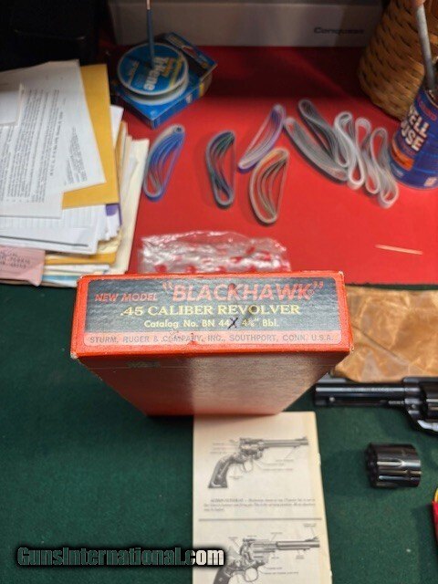 Description: 1976 Ruger New Model Blackhawk Convertible .45 Long Colt and .45 ACP. 4 5/8 inch barrel. Very nice condition with box, documents, and original packing materials. Rudy 812-327-7881 Handgun Caliber: .45 Colt Price: $620.00 Contact Seller |