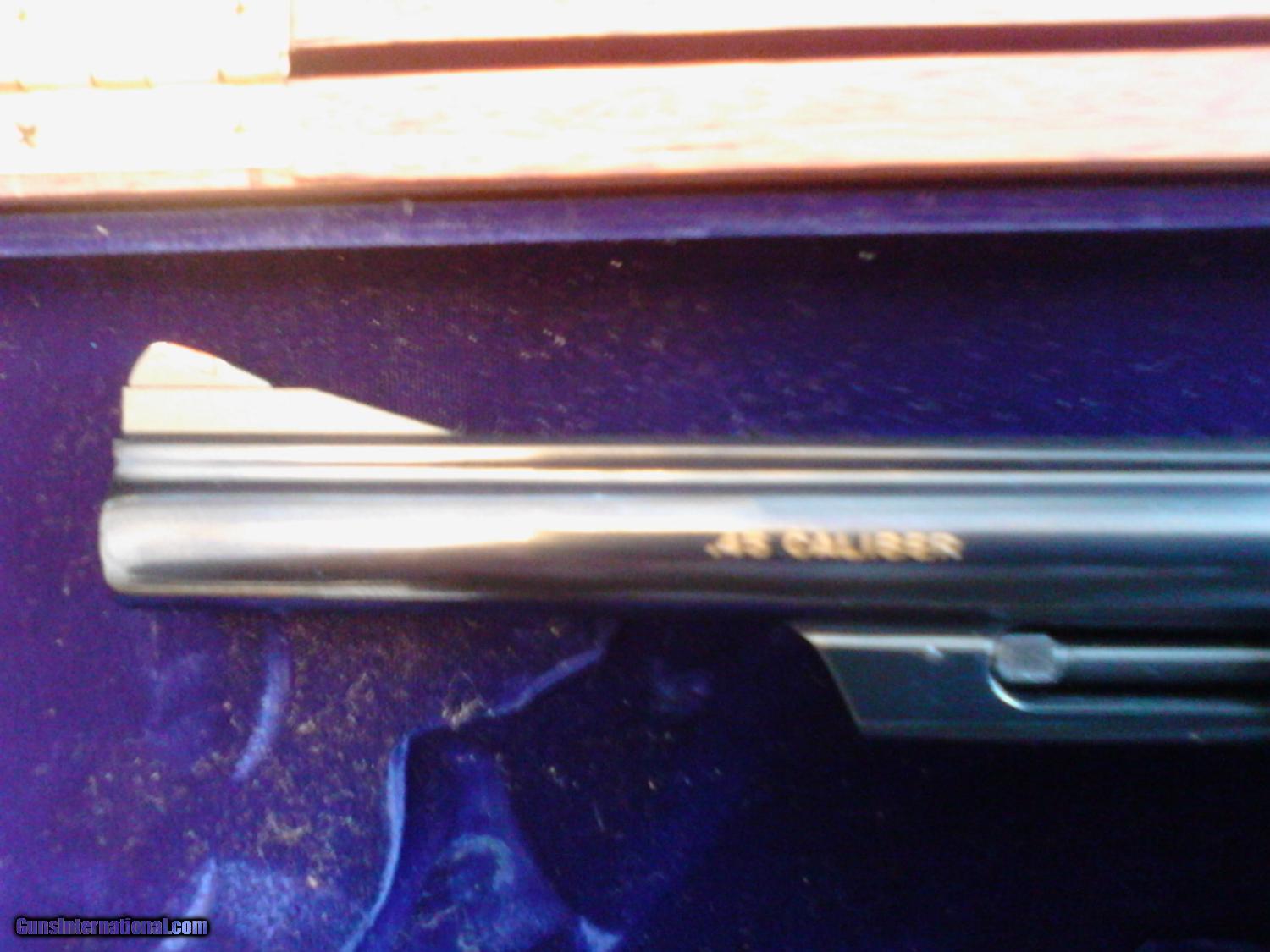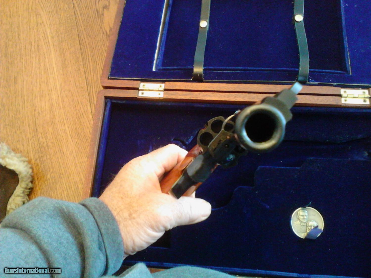 Description: Unfired S&W 125th anaversary 45lc revolver in commemorative box. Complete box with coin but no book. SOLD |