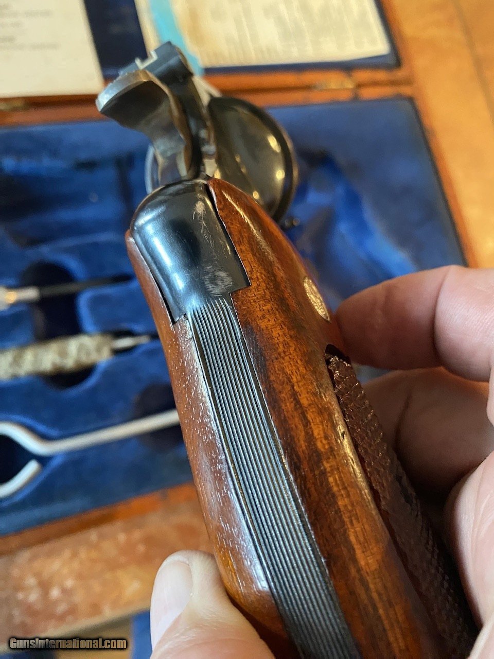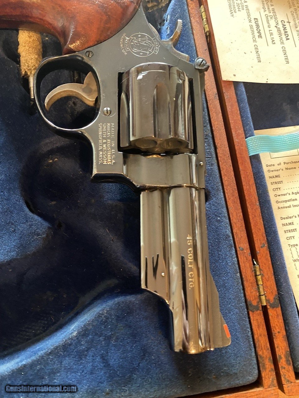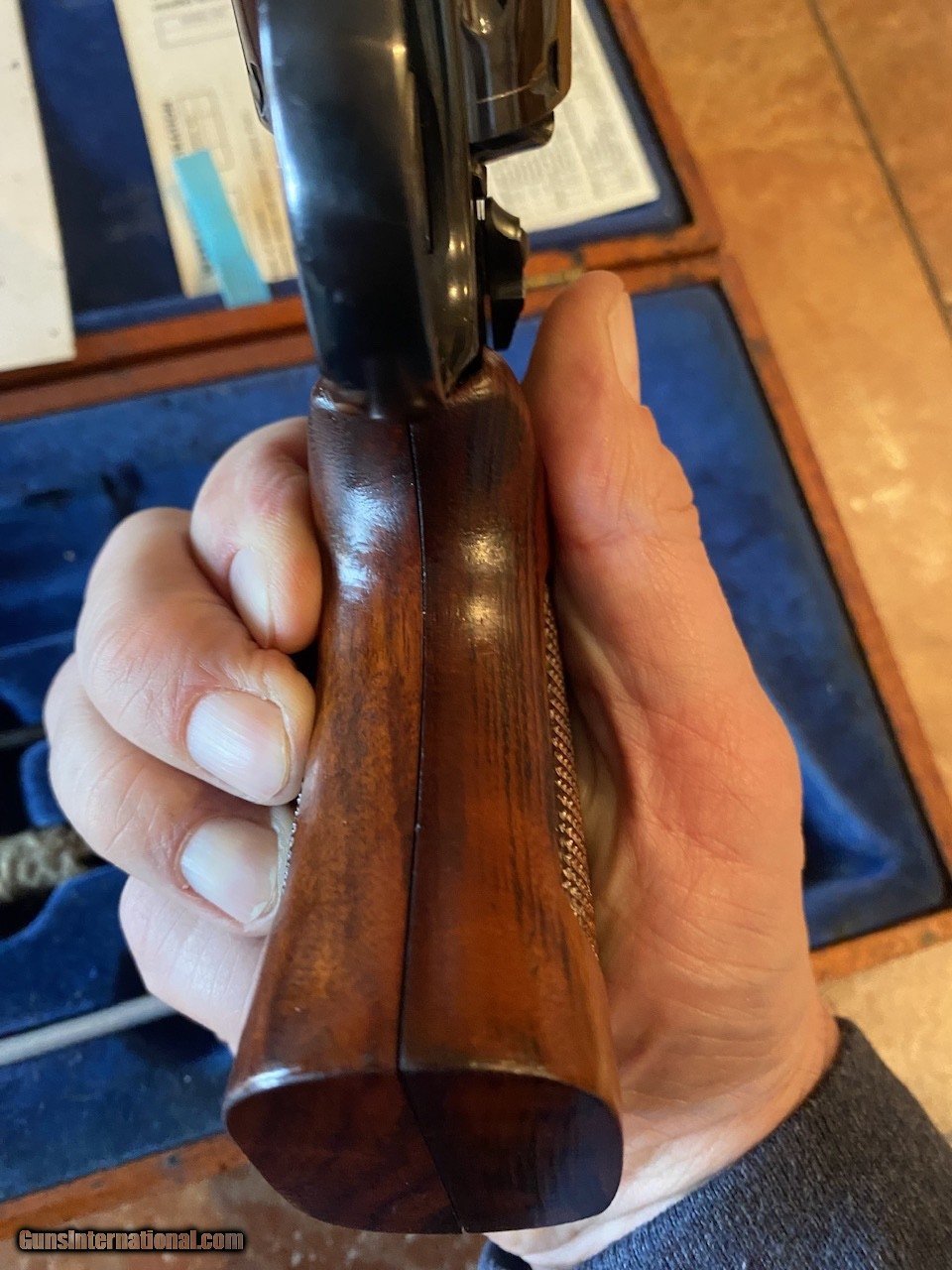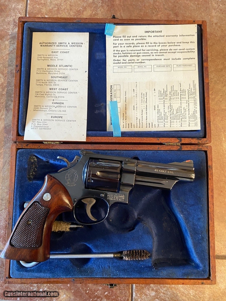 Description: Very nice condition, beautiful stocks, in factory presentation case with tools. 1 small scuff on the back strap. Mechanics are perfect, cosmetic's excellent, manufactured in 1980, pinned barrel. Zelle, cashiers, USPS MO $30 shipping FFL to FFL SOLD Manufacturer: S&W Model: 25-5 Barrel Length: 4 |