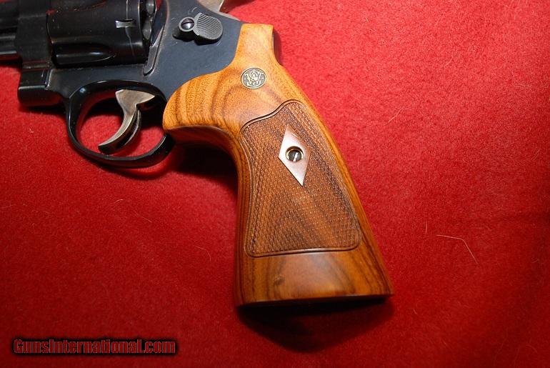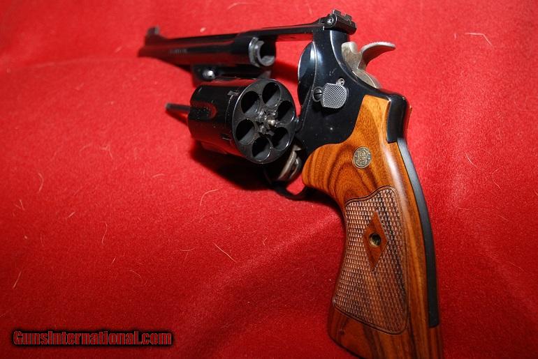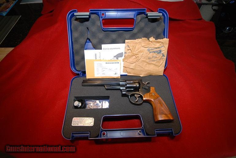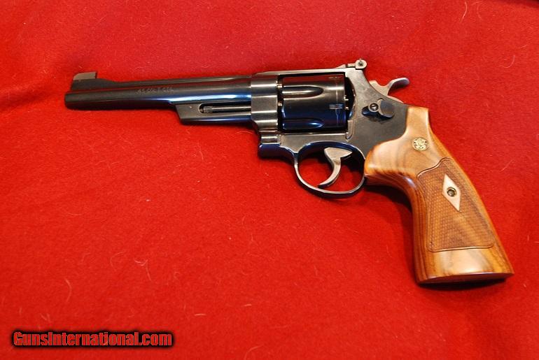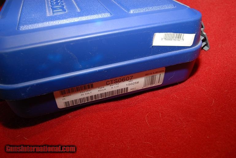 Description: SALE PENDING. We have here a 98% condition Smith and Wesson Model 25 in .45 LC. This double action revolver has a 6.5 inch barrel, blue finish, walnut grips. fully adjustable sights. Manufactured in 2012. Comes with original box, all paperwork, factory issued lock and keys, revolver action lock keys, fired case, and a speed loader. The only mark on the revolver is a drag line on the cylinder. Shipping and insurance $35. 3% charge for credit cards. SOLD |