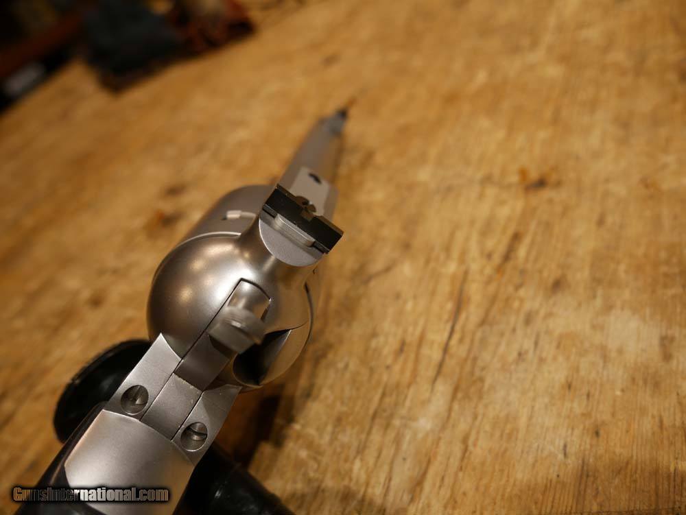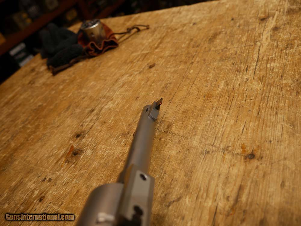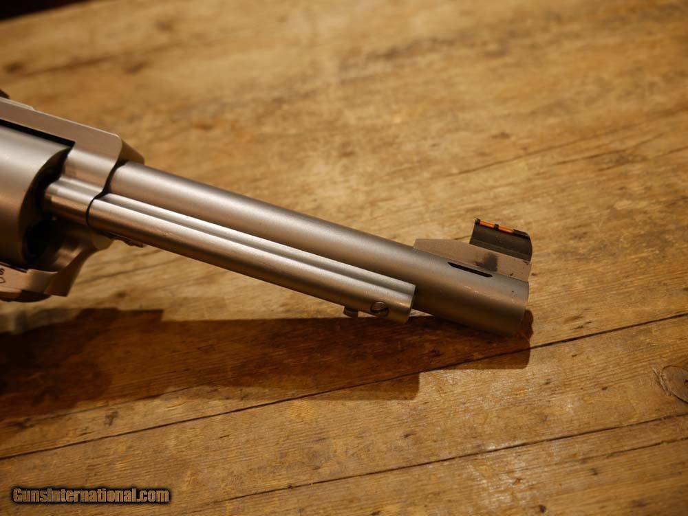 Description: Freedom Arms Model 83 Field revolver in .454 Casull. Includes an extra cylinder in .45 Long Colt. 6" barrel. Matte stainless steel construction. Manual sliding-bar safety. Pachmayr rubber grips. Adjustable rear aluminum sight, replaceable blade front sight. This is an awesome hand-built American single-action revolver in the powerful .454 Casull and .45LC both! This is an excellent choice for hunting or protection! This is in excellent condition and was rarely fired. Very few marks to speak of, see pics for details. Please call or email with any questions. Must ship to FFL. ***$40 SHIPPING AND INSURANCE*** ***NO CREDIT CARD FEES*** ***NO WARRANTIES IMPLIED OR EXPRESSED*** SOLD Manufacturer: FREEDOM ARMS Model: 83 FIELD Caliber Info: .454 CASULL & .45LC Condition: USED, EXCELLENT |