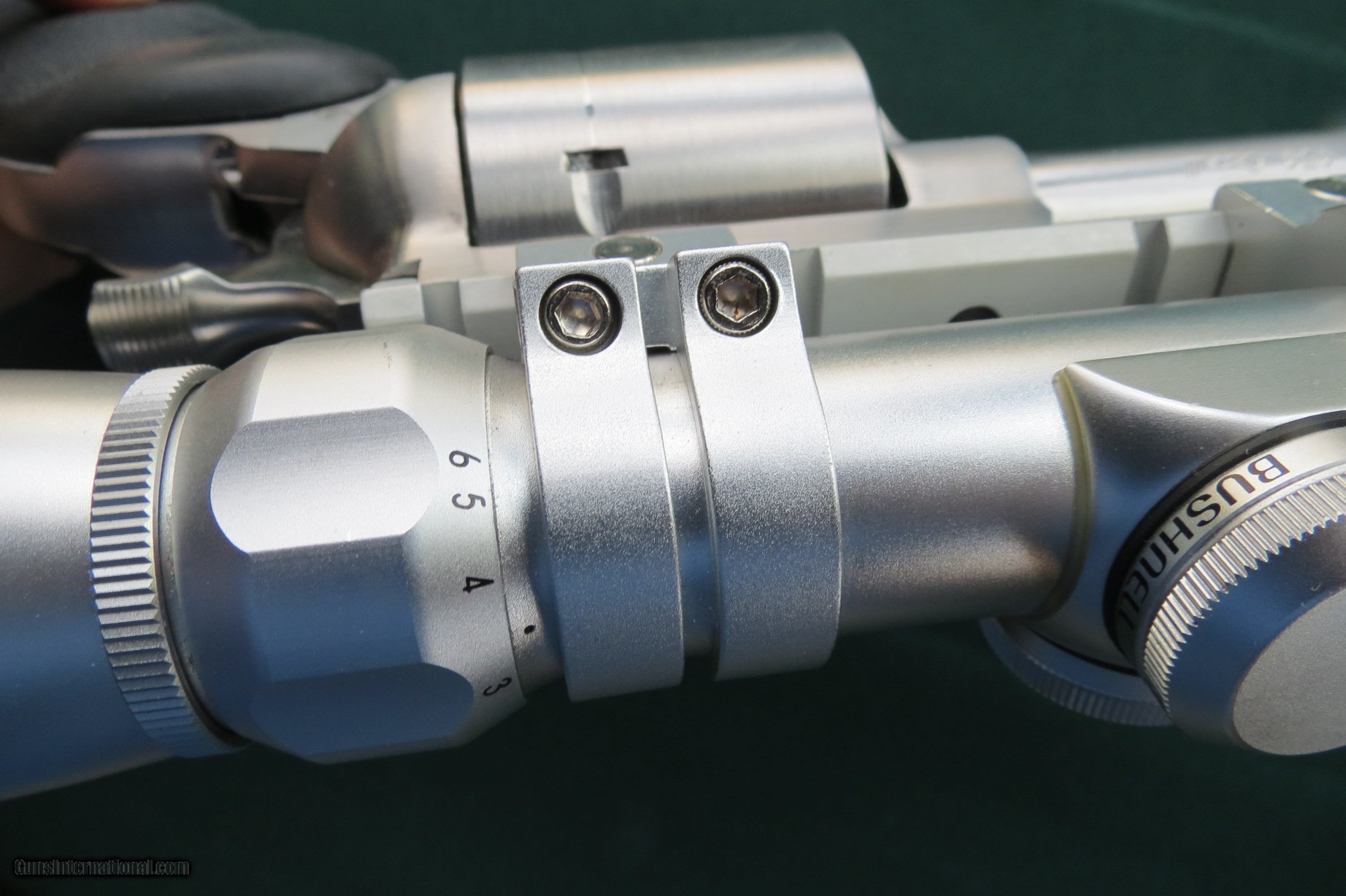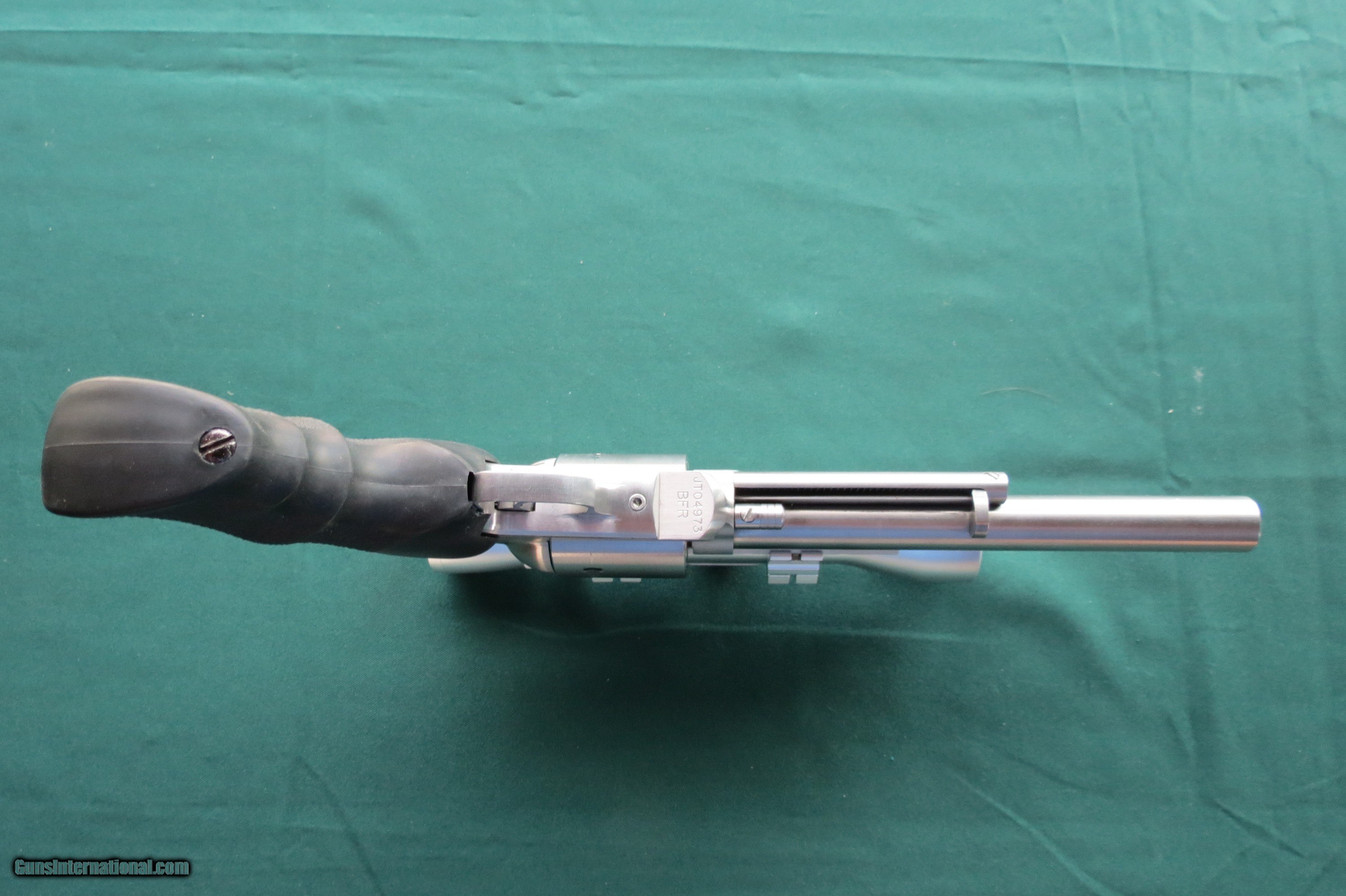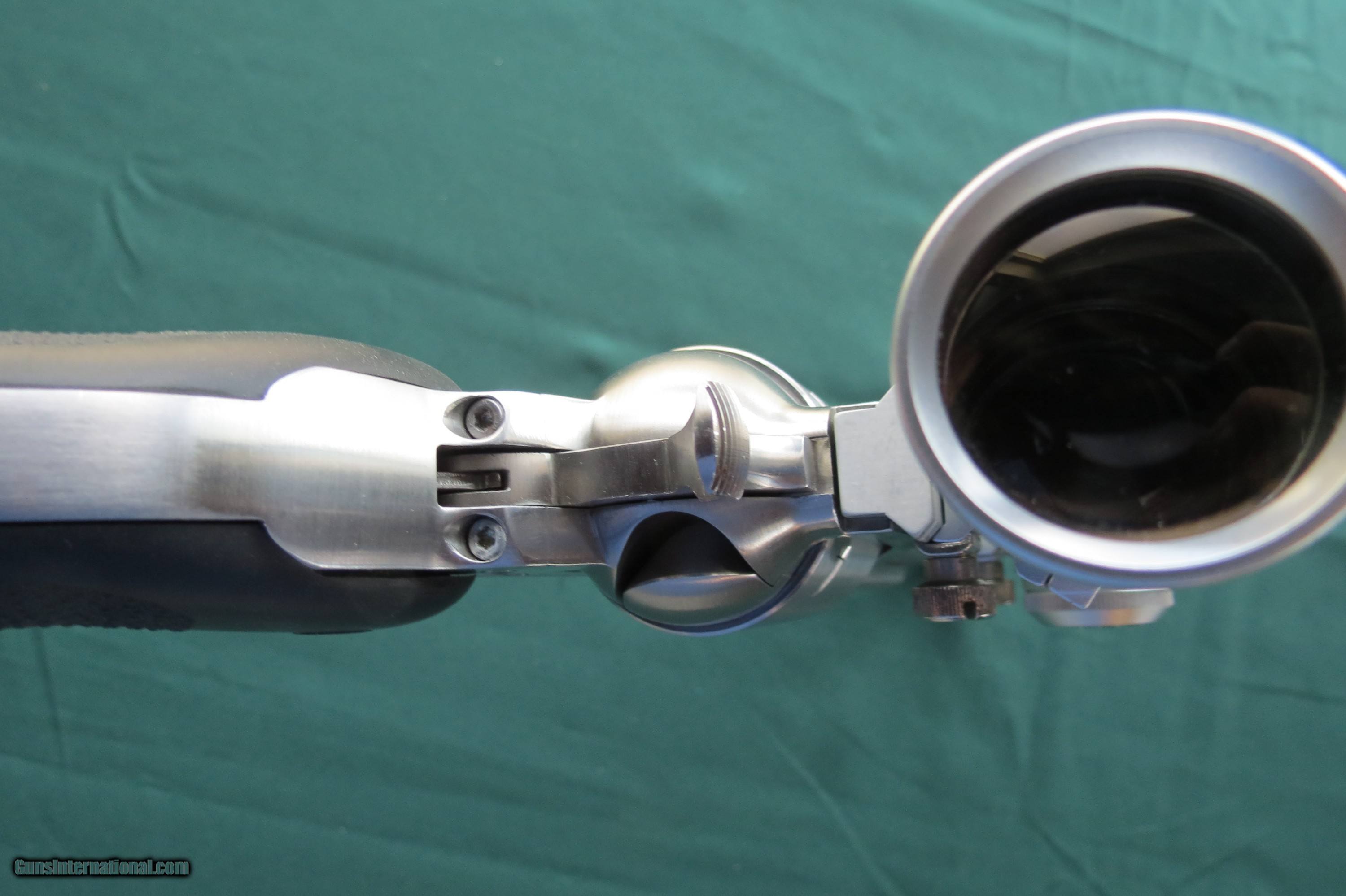 Description: Magnum Research BFR Revolver in 454 Casull. Brushed Stainless steel metal finish, 7.5" Barrel, 5 shot cylinder, Single action, 2 sets of grips, 2X6 Bushnell scope, Rear sight in case, Hard case. Revolver shows to be in very good condition with little usage. Shippping/insurance $40 SOLD Handgun Caliber: .454 Casull Manufacturer: Magnum Research Model: BFR Barrel Length: 7.5 Condition: Very Good |
