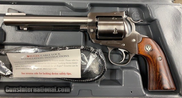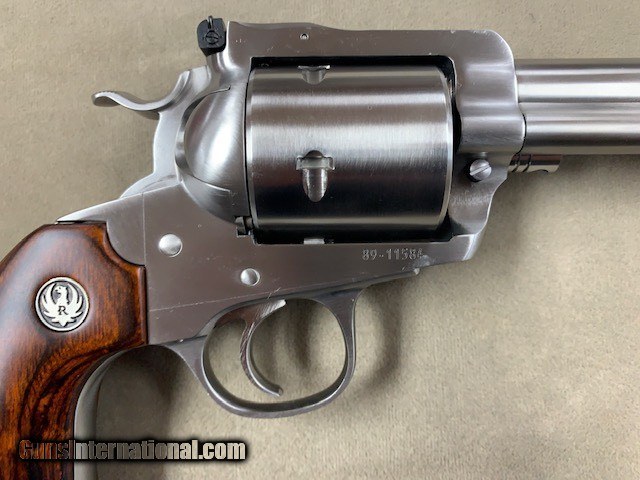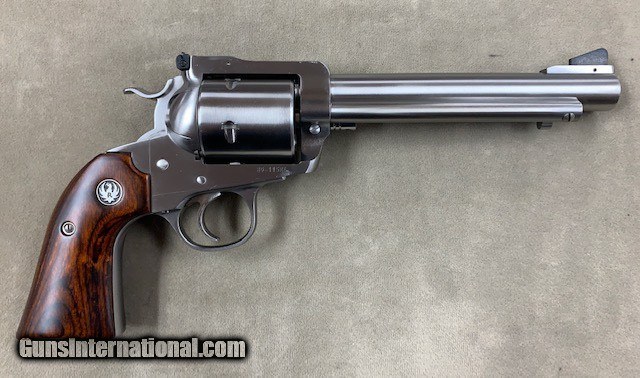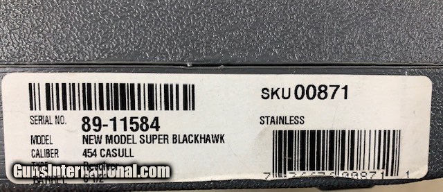 Description: A minty Ruger New Model Super Blackhawk Stainless 6.5 Inch Revolver in .454 Casull caliber. This edition I believe was manufactured for one distributor for a short time. Revolver appears to have been test fired only and then put back in the box. It has the Bisley type grip; correct box with label. A wonderful revolver for Bear Country protection in .454 caliber and then quite pleasant when shooting .45 Colt ammo. SOLD Handgun Caliber: .45 Colt, .454 Casull |