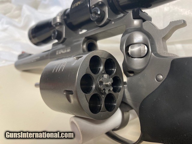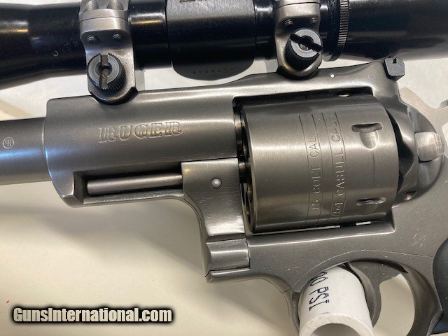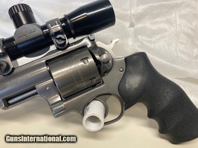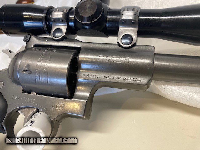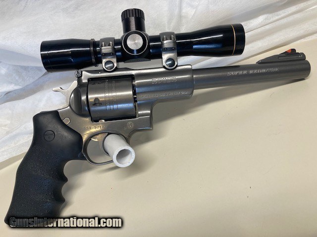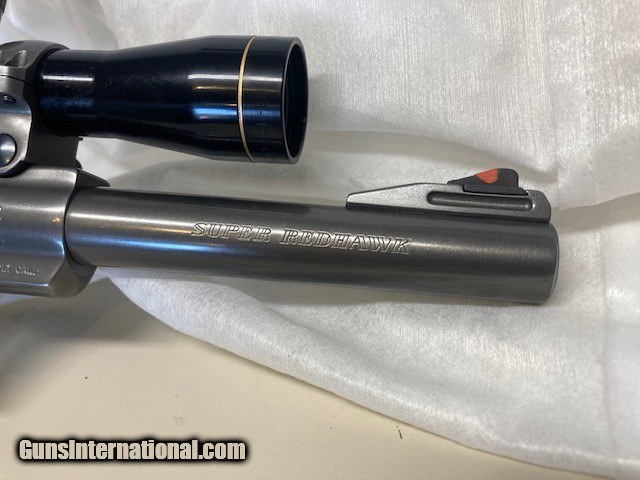 Description: Ruger Super Redhawk .454 Casull. 7.5" bbl. Hogue Tamer Monogrip. 4X Leupold Duplex w/target elevation knob. Condition is As New with exception of cylinder lock line and flash rings on face of cylinder.GREAT HUNTING RIG. $895. with scope. $750. without. $35.00 shipping to your FFL. (LOWER 48). NO CA SALES. Thanks. SOLD |