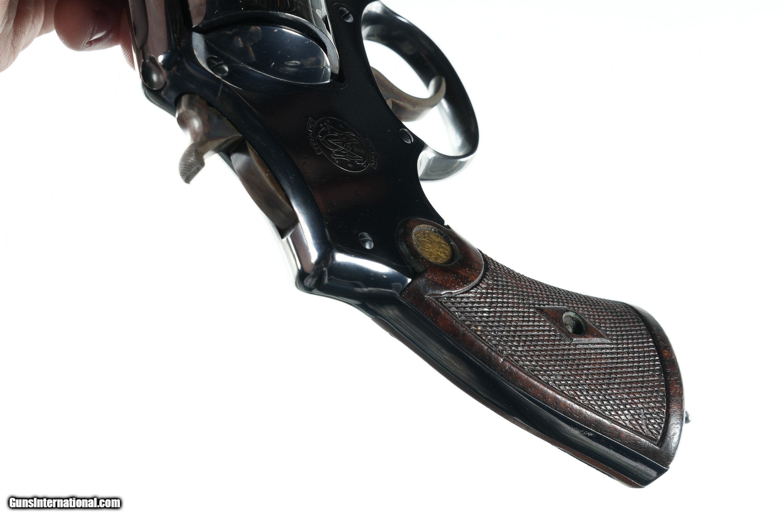 Description: Smith & Wesson Triple Lock 455. Blue finish with 6 1/2" Bbl, Checkered walnut grips with lanyard swivel and deep dish medallions. Condition, Very fine as refinished with bright bore and excellent grips. Mechanically excellent • Free Shipping, No Credit Card Fees. • Lay-a-way available for this firearm. • 1/3 Down, a 1/3 in 30 Days, 1/3 in 60 Days. SOLD Curio/Relic: Yes Manufacturer: Smith & Wesson Model: 455 Serial Number: 1133 Barrel Length: 6 1/2 |