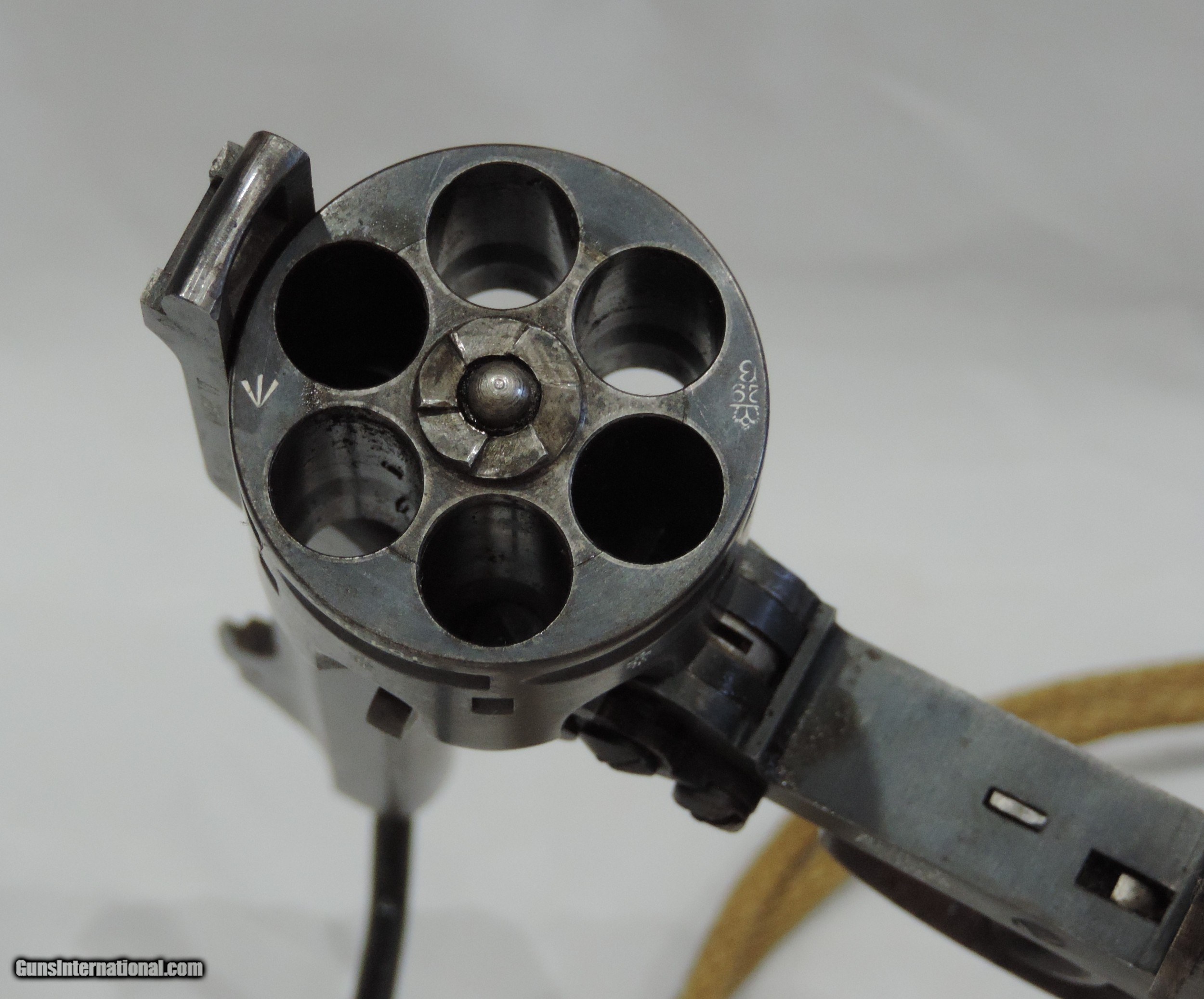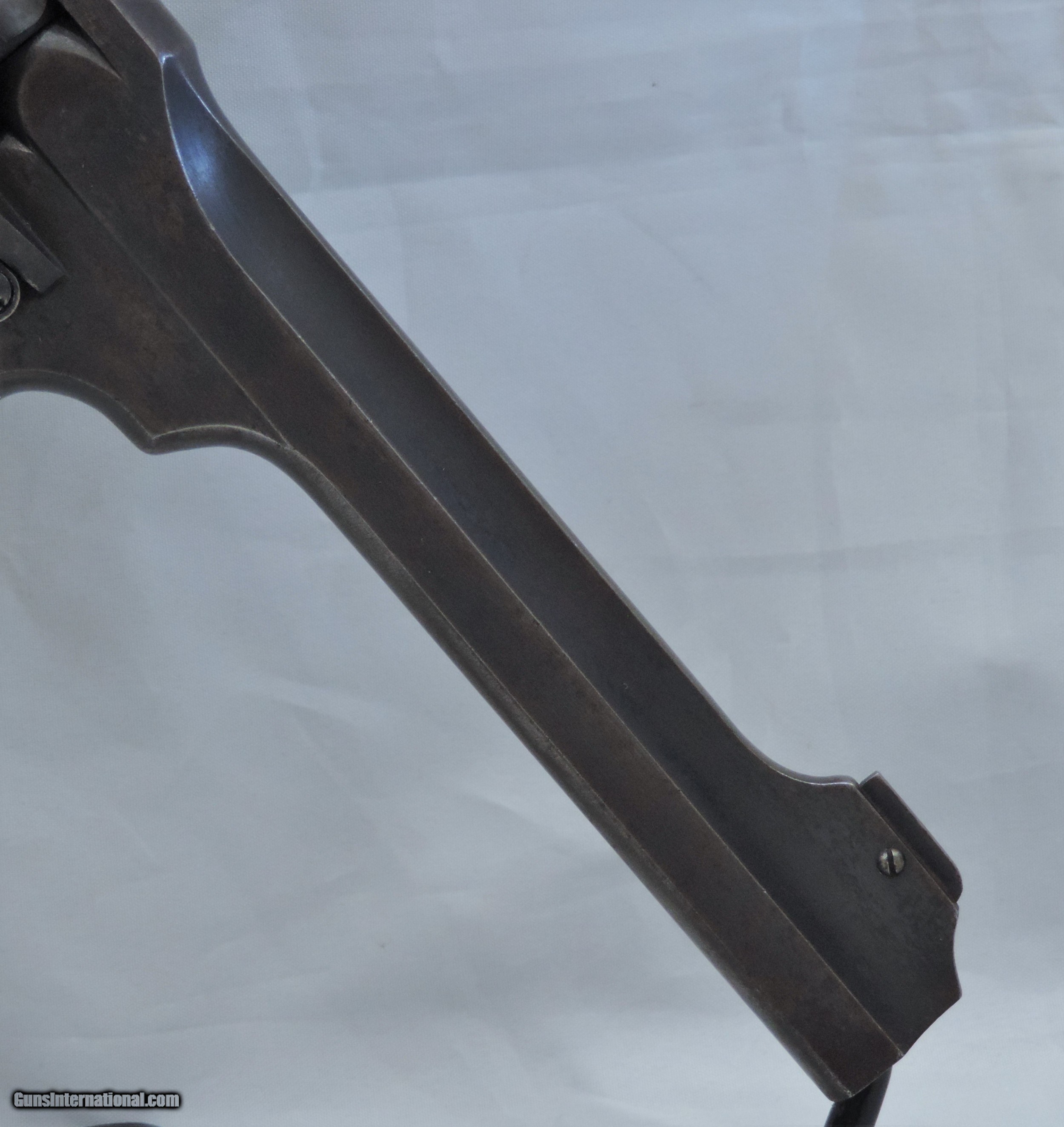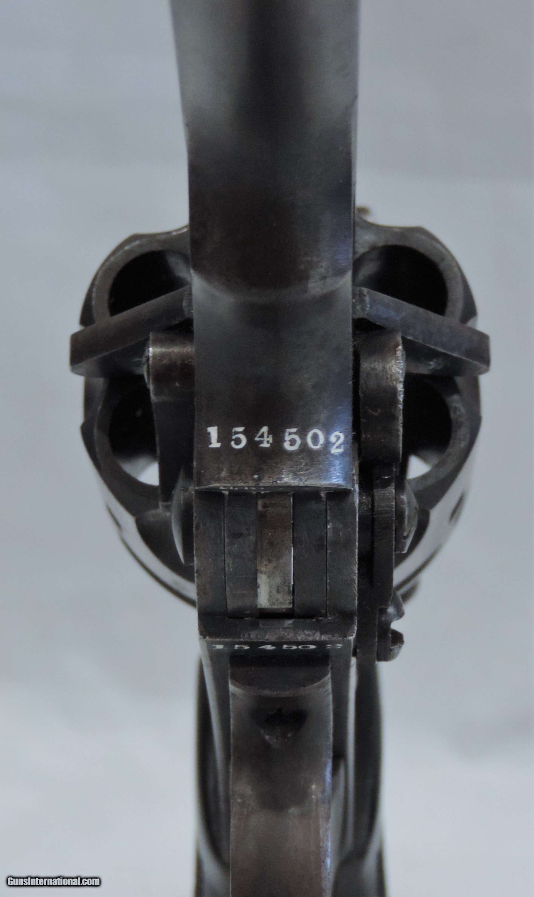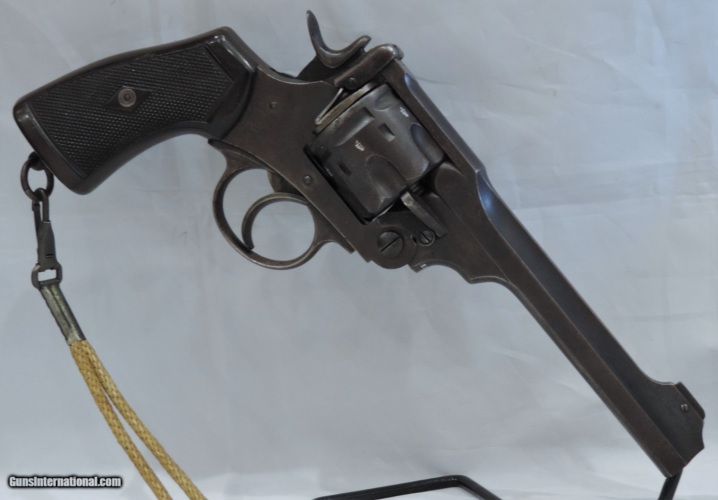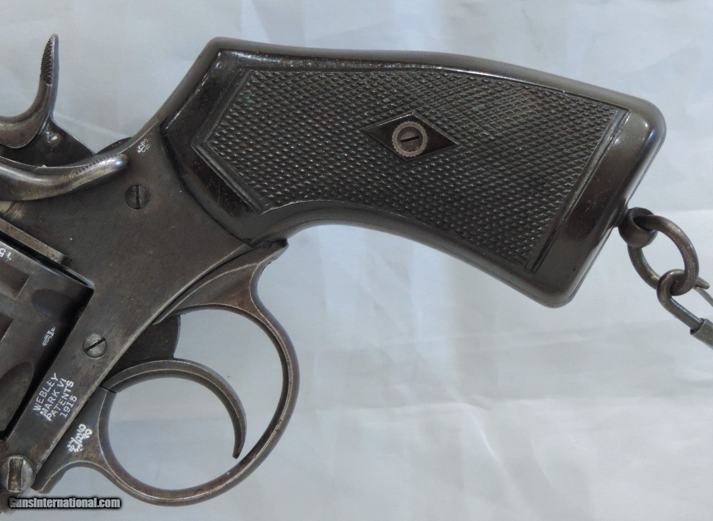 Description: INV. 7878 UNCUT WEBLEY & SCOTT MK. VI, .455, SER. 154502, MFG. 1915. THIS G.I. BRING BACK'S CONDITION IS GREAT FOR A "HOLSTER QUEEN" OF TWO WORLD WARS. IT STILL RETAINS ABOUT 85-90% 0F THE ORIGINAL BLUE. THE LOSS OF FINISH IS MOSTLY DUE AGE FLACKING AND SOME HOLSTER WEAR. THERE ARE NO RUST SPOTS RUB MARKS OR BLEMISHES. ALL PARTS MATCH. THE GRIPS AND GRIP SCREW ARE PERFECT. ALL PROOF MARKS ARE PROPER AND ARE SHOWN IN THE PICS. THE CYLINDER FACE, RECOILS SHIELD, AND FORCE CONE SHOW VERY LITTLE USE. THE GUN LOCKS UP TIGHT, INDEXES AND APPEARS TO FUNCTION PROPERLY. THE BORE IS SUNSHINE BRIGHT WITH RAZOR SHARP RIFLING. IT COMES WITH ORIGINAL LANYARD AND LANYARD RING. THIS "HOLSTER QUEEN IS A REAL FIND FOR THE INVESTOR/COLLECTOR AND REAL AND SHOULD BE REAL FUN AT THE RANGE. MODESTLY PRICED AT....SHIPPED.... $1975.*** ***PURCHASE SATISFACTION GUARANTEED. To purchase this firearm or if you want to request more information contact us at: Email ckguns[at]ymail[dot]com Phone 201-512-0002 Cell 201-575-6838 FAX 201-215-4759 We accept most major credit cards. Prices shown are Discounted 3% for Cash or Check. The buyer must be familiar with all the laws governing the purchase and the ownership of firearms in their own city and state. The Yankee Armorer, Inc is not responsible for any failure to comply with or observe these laws. The Yankee Armorer, Inc will only ship after full payment and receipt of all required documents. Shipping: Add $35.00 for handguns, $45.00 for long guns. New Jersey buyers are subject to a 7% sales tax. The Yankee Armorer, Inc offers a 3 day inspection period with full refund upon return of intact firearm and in the original condition. The Yankee Armorer, Inc offers a no interest lay away program - 25% down; 25% in 30 days; 25% in 60 days; and full payment in 90 days. Any violation of this policy is subject to restocking and forfeiture of all payments. Any variation from this policy must be agreed to in advance. Unshipped Cancelled sales are subject to a 20% restocking fee. Be advised that all firearms sold by The Yankee Armorer, Inc. or the Gun Exchange, LLC (SELLER) are sold as collector’s items. They have not been fired or tested for safety and must be examined by a license gunsmith prior to use. By purchasing any item from the (SELLER), you are agreeing to hold the (SELLER) free from any damages or lawsuits of any nature. Any item left for transfer or storage will be charged to $25.00 per month, per item from the day of its receipt. Any variation from this policy must be agreed to in advance. Store hours 10:00 am to 5:00 pm Tuesday -Saturday. It's always best to call for appointment. Store 201-512-0002, cell 201-575-6838. SOLD Handgun Caliber: .455 Webley (.455 Webley Mk I, .455 Revolver, .455 Colt, .455 Colt Mk I, .476 Enfield, .476 Eley, .476/.455) |