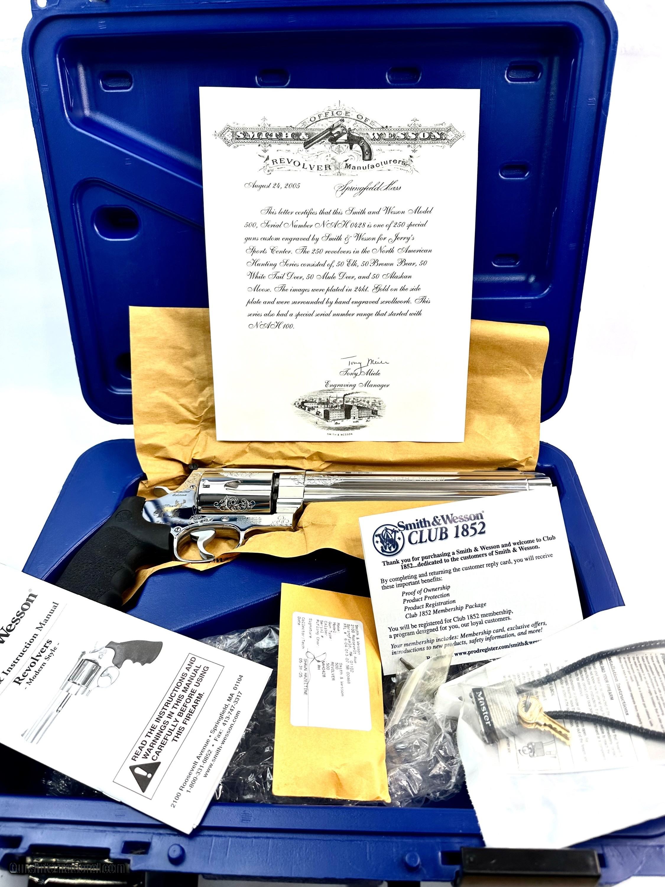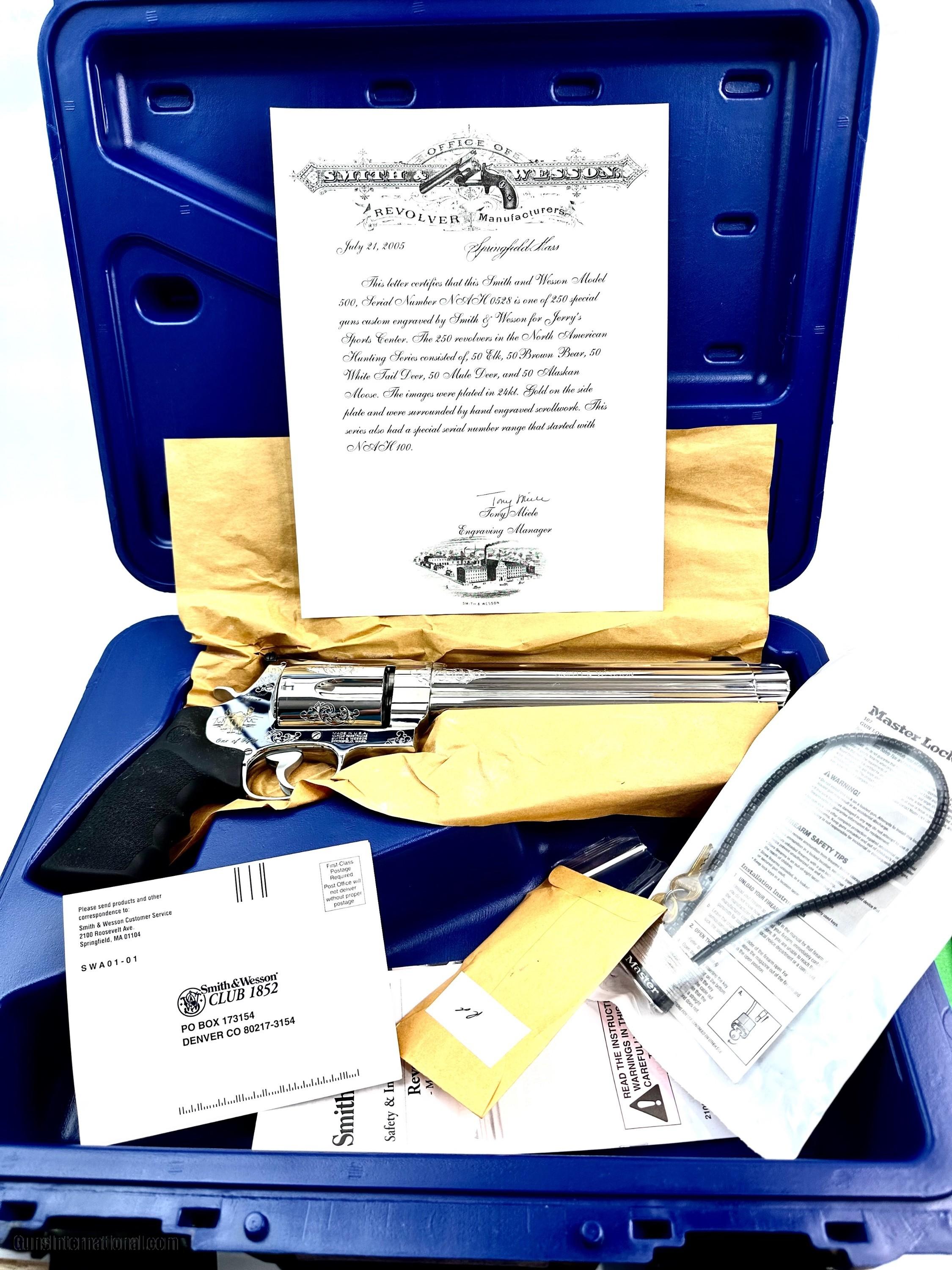 NIB - 5 guns - Hand Engraved 1 of 50 S&W 500's - MFG 2005 - Full Set all 5 may be the only complete set available. Authenticity letters, Display b