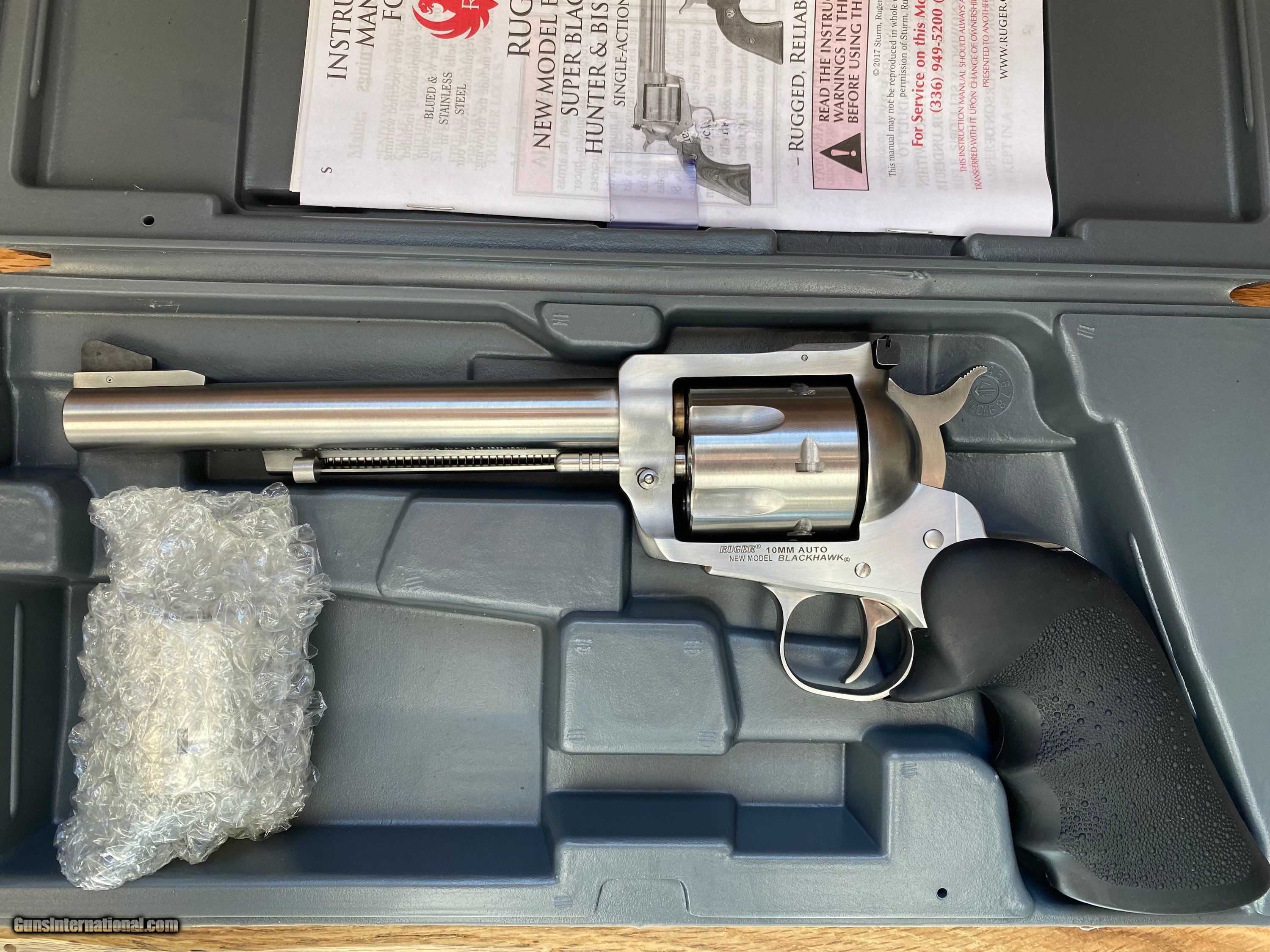 Description: This is a beautiful hard to find Ruger Blackhawk in 10mm and 40S&W, it has never been fired with the 40S&W cylinder and has very few rounds through the 10mm Cylinder. It is a 6 1/2" barrel in Stainless Steel. This comes in the box with original grips. These are very hard to come by as they are the Lipsey Special. This is not to be confused with the Buckeye Special in 10mm/ 38-40. SOLD Handgun Caliber: .40 Smith & Wesson (.40 Auto, 10 x 21 mm), 10mm Auto Manufacturer: Ruger Model: Blackhawk Serial Number: 38-73308 Barrel Length: 6 1/2 Condition: 99+ Metal Condition: 99+ Bore Condition: 99+ Action: Single Action Finish: Stainless Steel Sights: Adjustable Manufacture Date: 2017-2018 |