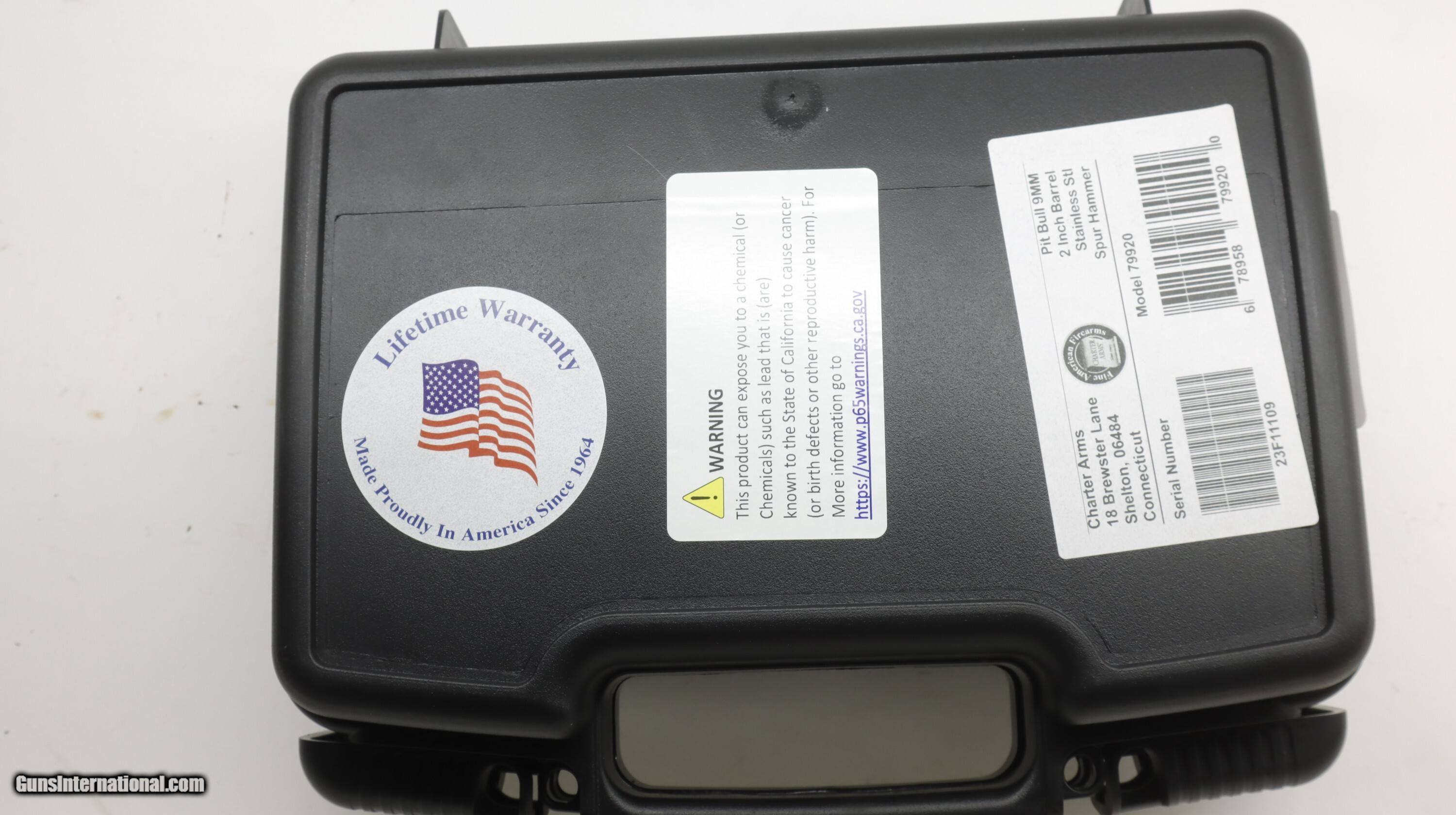 Charter Arms Pit Bull 9mm Stainless in case, 2 hammers 79920