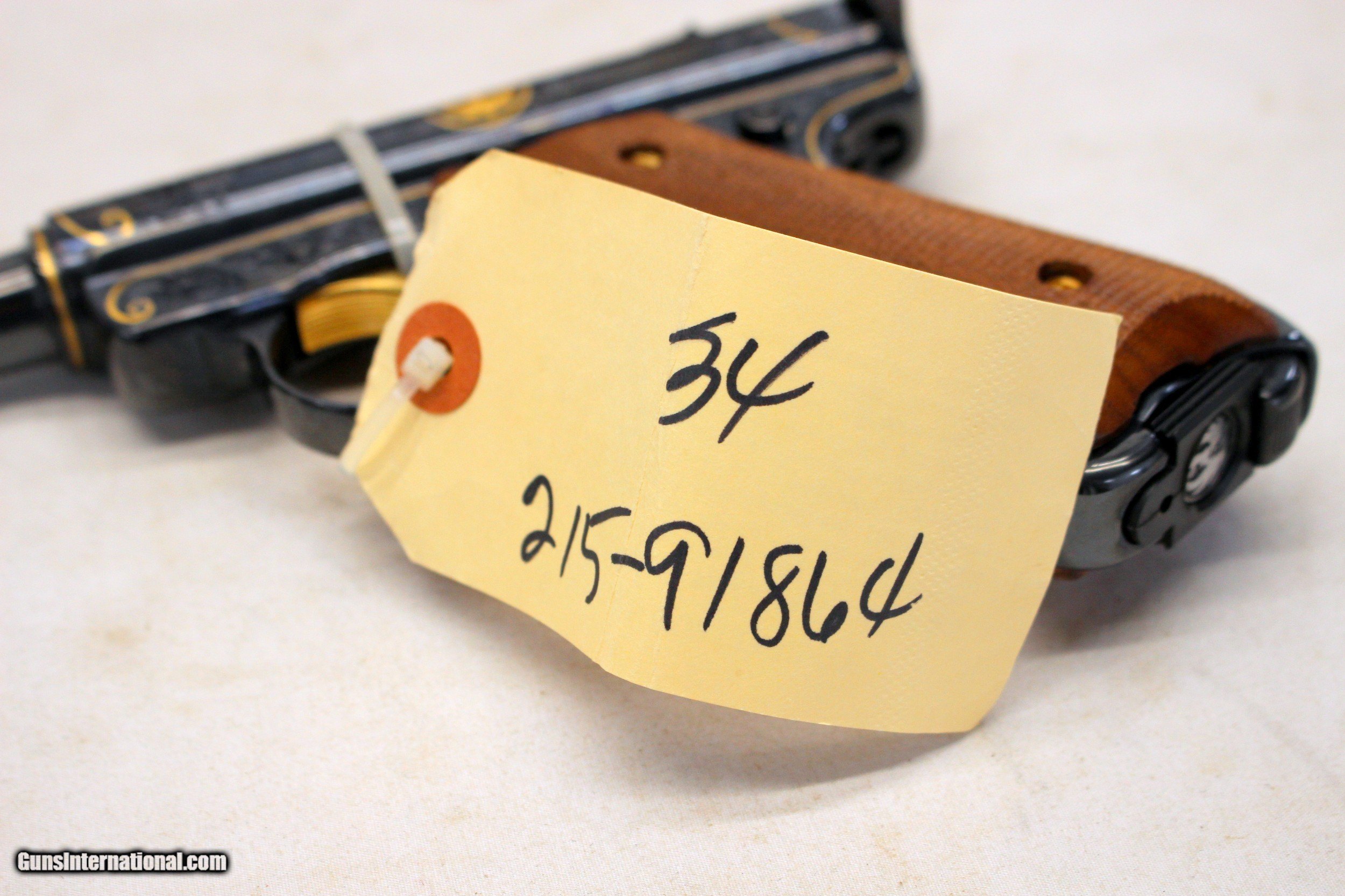 Description: We are offering for a sale an American Historical Foundation RUGER MARK II pistol commemorating THE 40TH ANNIVERSARY of the Ruger MKII. This collectible pistol is limited to 40 examples (This is #34) and was manufactured on behalf of the PRESIDENTS CLUB. It comes in a wooden case with glass front. The pistol remains in excellent condition and is unfired. Light handling wear noted. PLEASE SEE PHOTOGRAPHS! RARE AND COLLECTIBLE EXAMPLE! Ship & Insure 49.95 **** PLEASE NOTE: WE ONLY ACCEPT MASTERCARD AND VISA AS PAYMENT OPTIONS (please note we charge a non-negotiable 3% CC fee) **** **** WE TAKE CREDIT CARD PAYMENT OVER THE PHONE. WE DO NOT TAKE PAYMENT THROUGH THIS **** PLEASE LOOK AT ALL PHOTOGRAPHS FOR CONDITION Please know the legality of any weapon in your state before . If a gun can’t be transferred to you we will charge a 15% re-stocking fee. We are in the shop MODAY, WEDNESDAY, THURSDAY, FRIDAY and SATURDAY 8am-4pm EST. We will be in touch within 24 hours of your purchase. Please be ready to provide CC information. Please have your FFL email a copy of their license to: . No Face To Face Transfers! Please note: Clicking "buy" does not guarantee that this gun is yours, However clicking “Buy” will reserve this gun for you, if it hasn’t been sold in store. We will try to do our best to remove the posts as efficiently as possible, but sometimes delays may ensue. “Buy” is your safest bet to reserve a gun. Also please add 6.25% MA state sales tax (if from MA) and 3% credit card shop courtesy fee for all out of state buyers. SOLD |