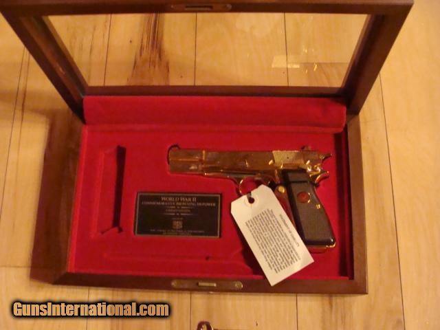 BROWNING HI-POWER 9MM, #7 OF 500 AMERICAN HISTORICAL FOUNDATION ISSUED TO HONOR THE 50TH ANNIVERSARY OF WORLD WAR 2, 24 KARAT GOLD [SOLD PENDING FUNDS