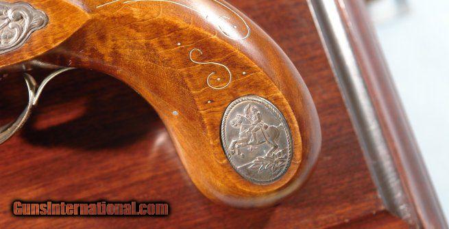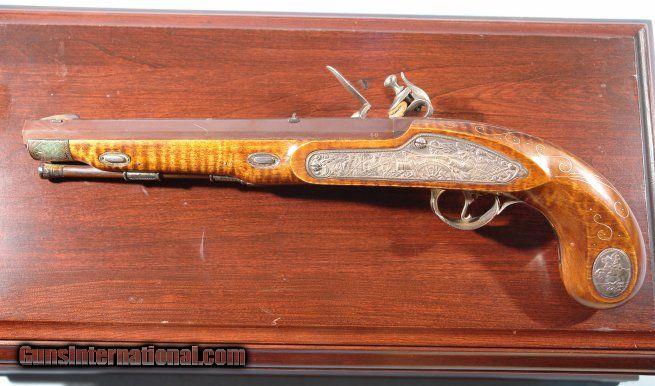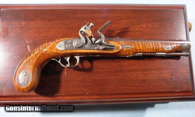 Description: U.S. HISTORICAL SOCIETY ANDREW JACKSON COMMEMORATIVE FLINTLOCK PISTOL. Sterling silver mounted edition. Serial number 60. With original walnut display case and paperwork. SOLD |