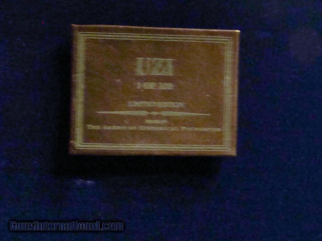 UZI #7 OF 100 ISSUED, AMERICAN HISTORICAL FOUNDATION, MFG. 1987, NICKEL PLATED, HAND ENGRAVED, ALSO 24-KARAT GENUINE GOLD [SOLD PENDING FUNDS]