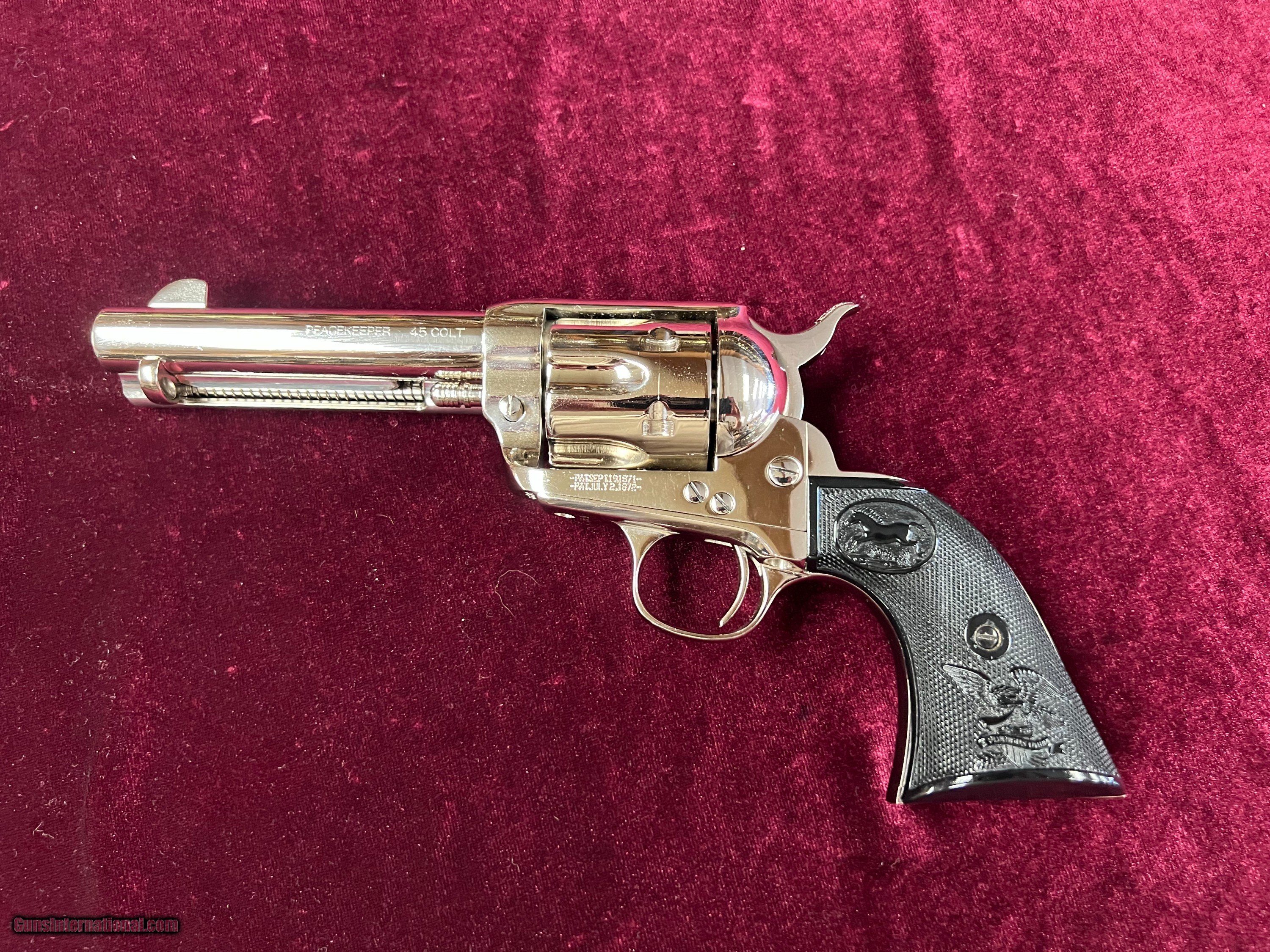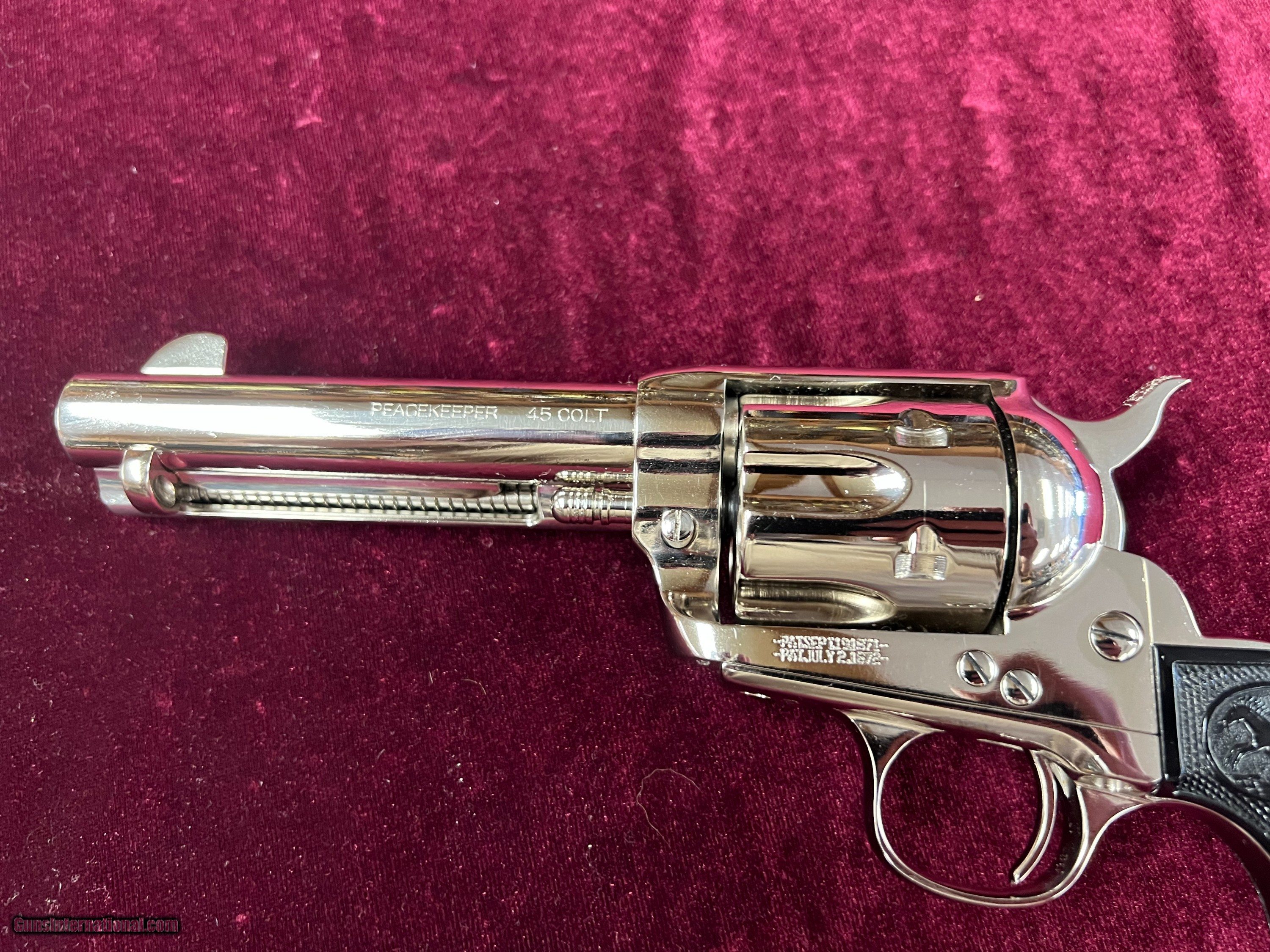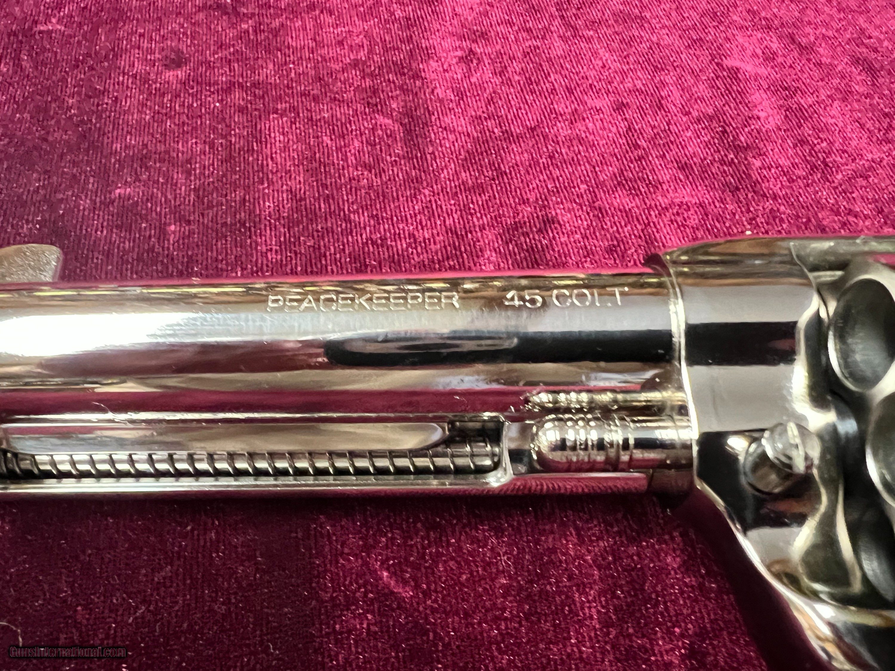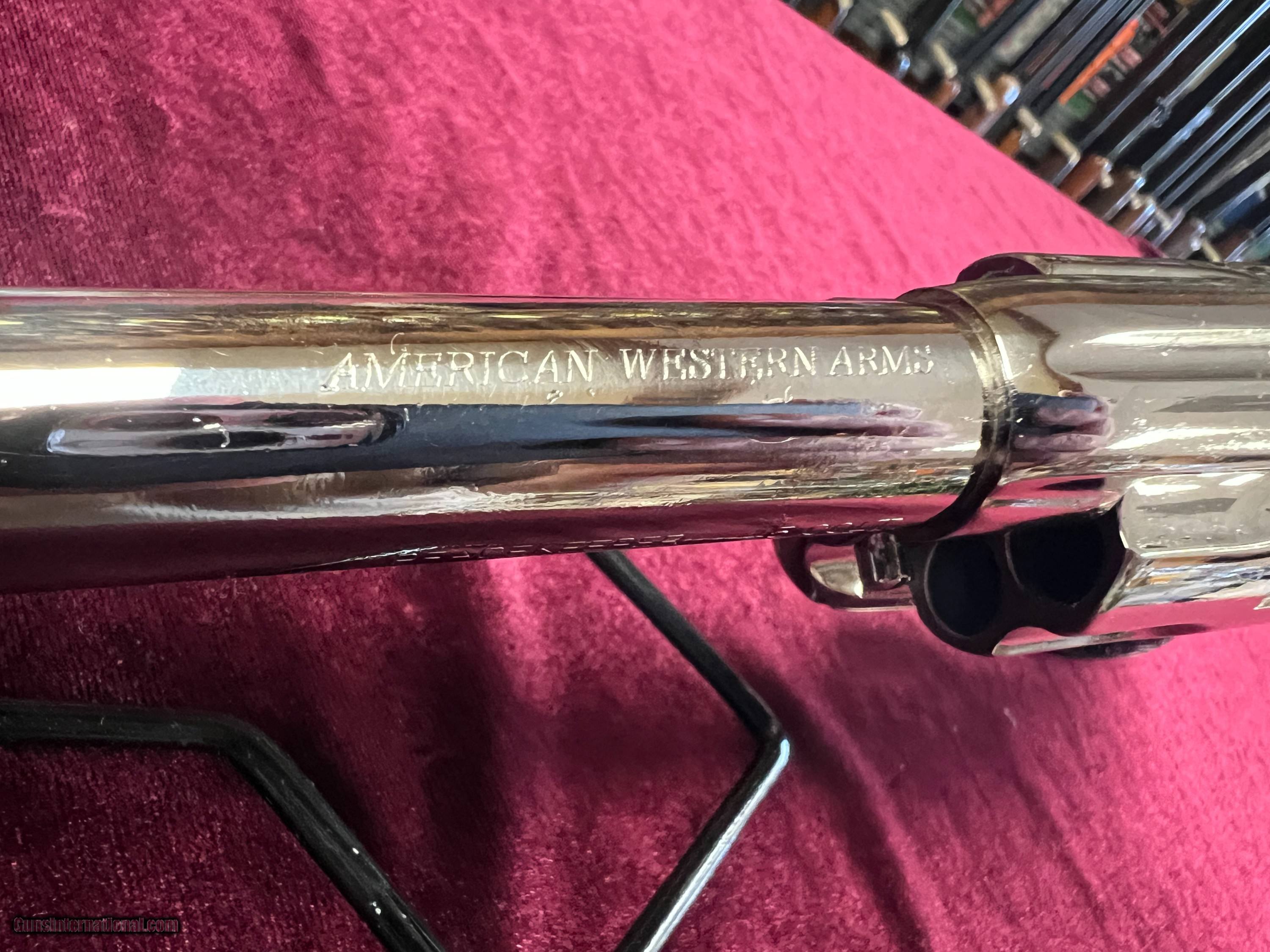 Description: Hello all. In this listing we are selling a beautiful American Arms SAA Peacekeeper. This revolver is chambered in 45 Long Colt and sports a 4 3/4" barrel. The nickle finish is perfect with the gun being 100%, being brand new in the box. A flawless gun with perfect grips, making it a hard to find item. If you have any questions, or need additional photos, please feel free to contact us. We charge 3% on all card charges. Buyer pays shipping. We are selling this gun for $1295. SOLD Handgun Caliber: .45 Colt Manufacturer: American Western Arms Model: Peacekeeper Serial Number: P6659 Barrel Length: 4 3/4 Condition: NEW IN BOX Metal Condition: Mint Bore Condition: Mint |
