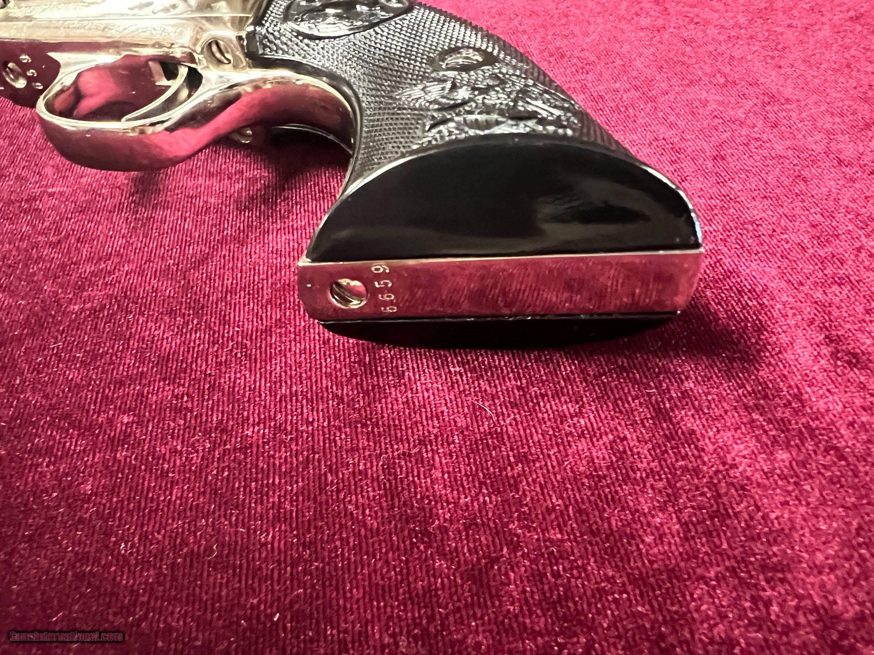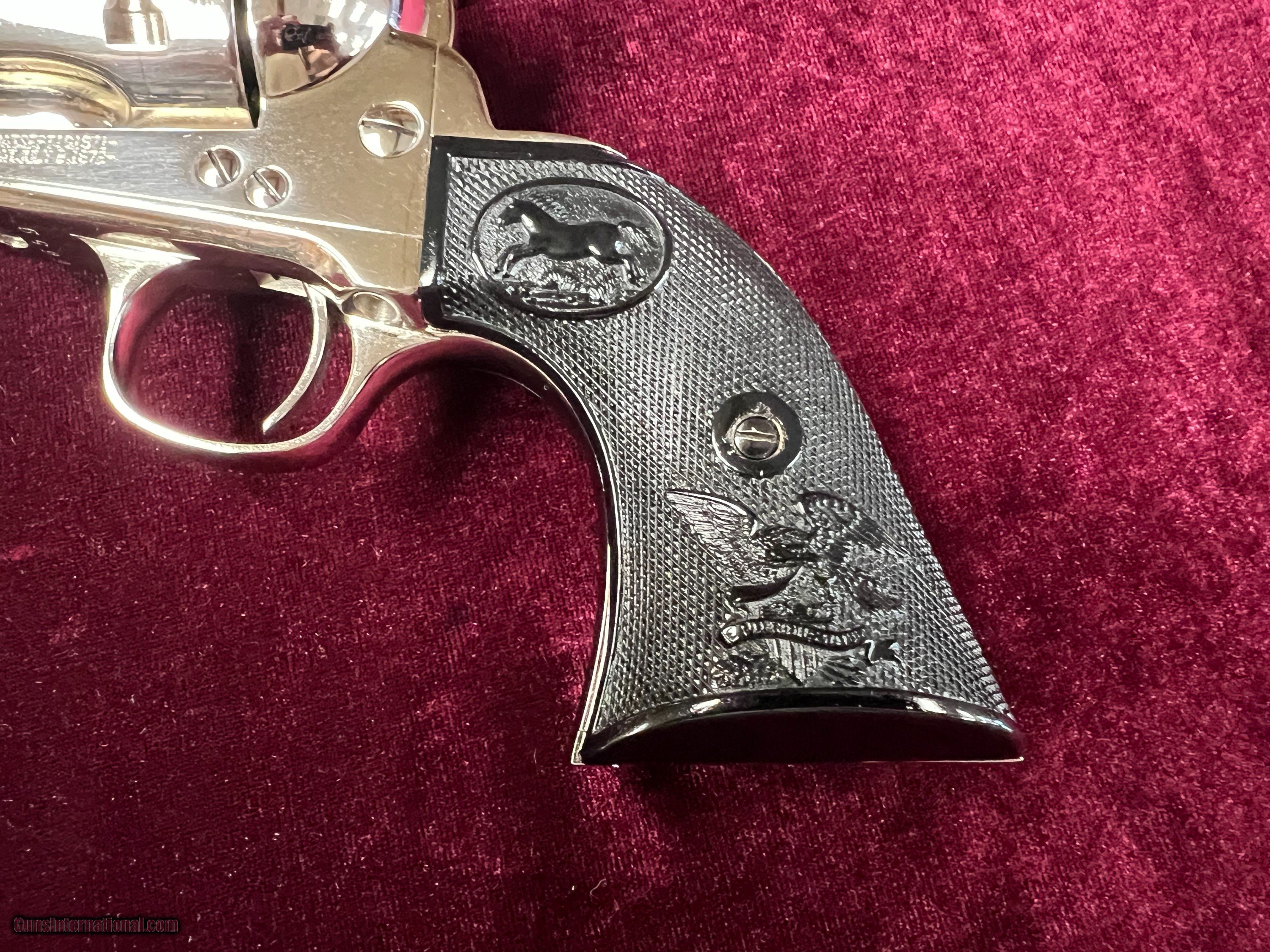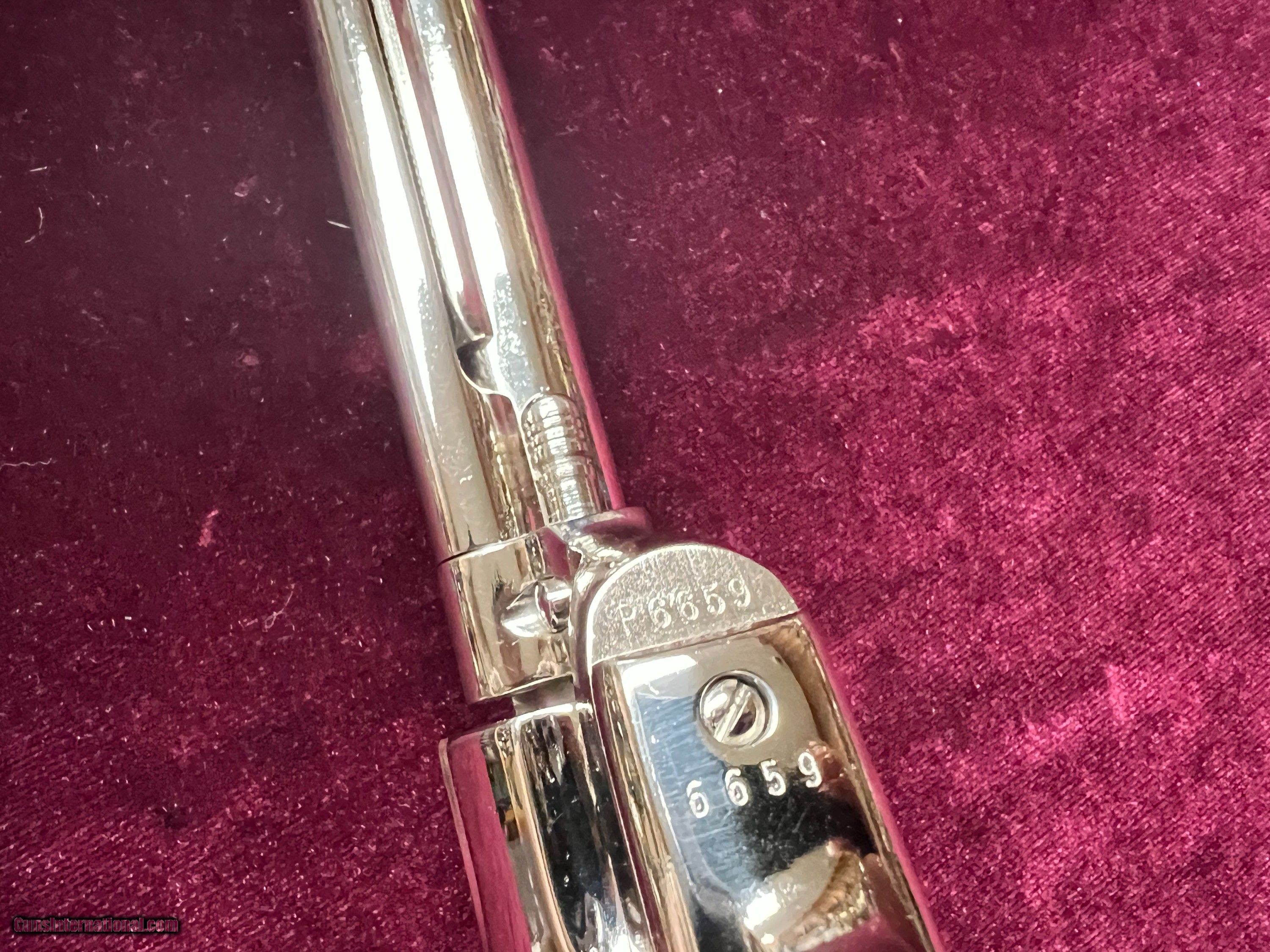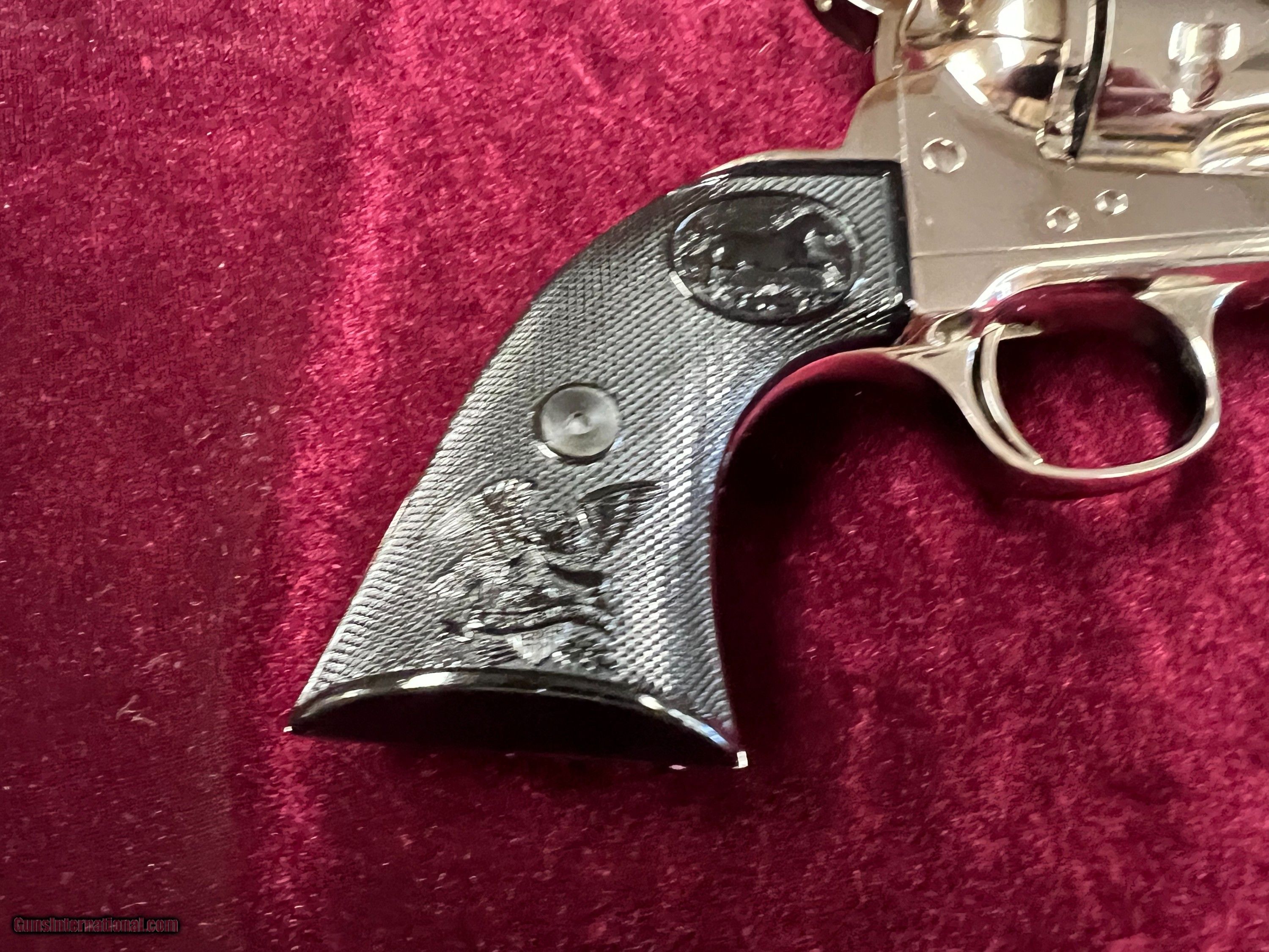 Description: Hello all. In this listing we are selling a beautiful American Arms SAA Peacekeeper. This revolver is chambered in 45 Long Colt and sports a 4 3/4" barrel. The nickle finish is perfect with the gun being 100%, being brand new in the box. A flawless gun with perfect grips, making it a hard to find item. If you have any questions, or need additional photos, please feel free to contact us. We charge 3% on all card charges. Buyer pays shipping. We are selling this gun for $1295. SOLD Handgun Caliber: .45 Colt Manufacturer: American Western Arms Model: Peacekeeper Serial Number: P6659 Barrel Length: 4 3/4 Condition: NEW IN BOX Metal Condition: Mint Bore Condition: Mint |