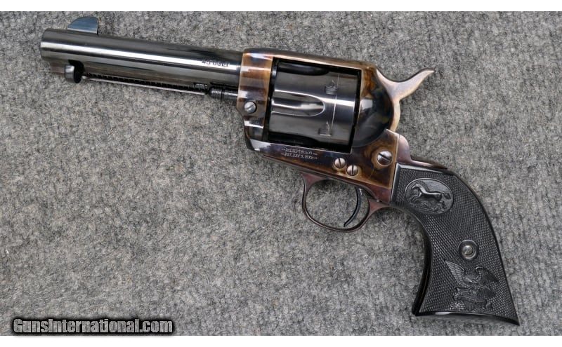 Description: For your consideration, an American Western Army Single Action Army clone chambered in .45 Colt. With its case colored frame, 4-click action, and hammer-mounted firing pin, this is an excellent reproduction of the classic Colt SAA. This piece is of Italian manufacture. .45 Colt SOLD Chambers: 6 Metal Condition: Excellent Wood Condition: Excellent Bore Condition: Excellent Barrels: 4.75 Triggers: Smooth Face Weight: 2.25 lbs Sights: Iron Sights Item Location: Hamburg, PA |