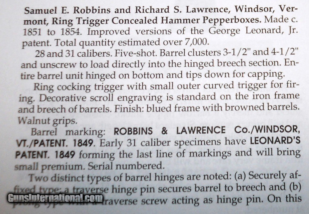 * Antique 1849 LEONARDS PATENT ROBBINS LAWRENCE WINDSOR, VT PEPPERBOX PISTOL