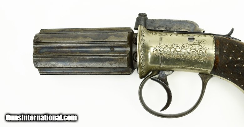 "Cased British Percussion ""6-Shot"" Pepperbox by Harley of Exeter (AH4199)