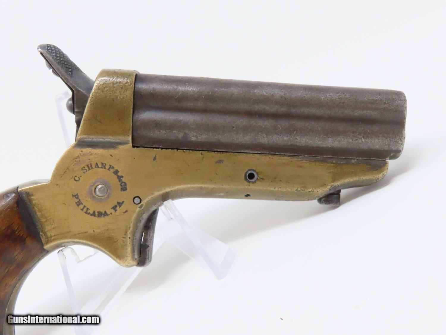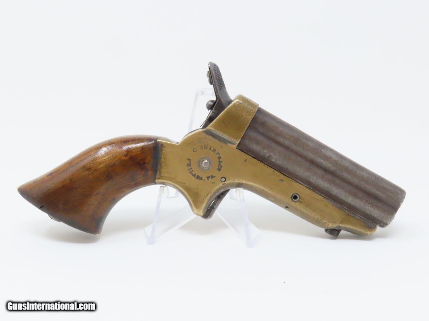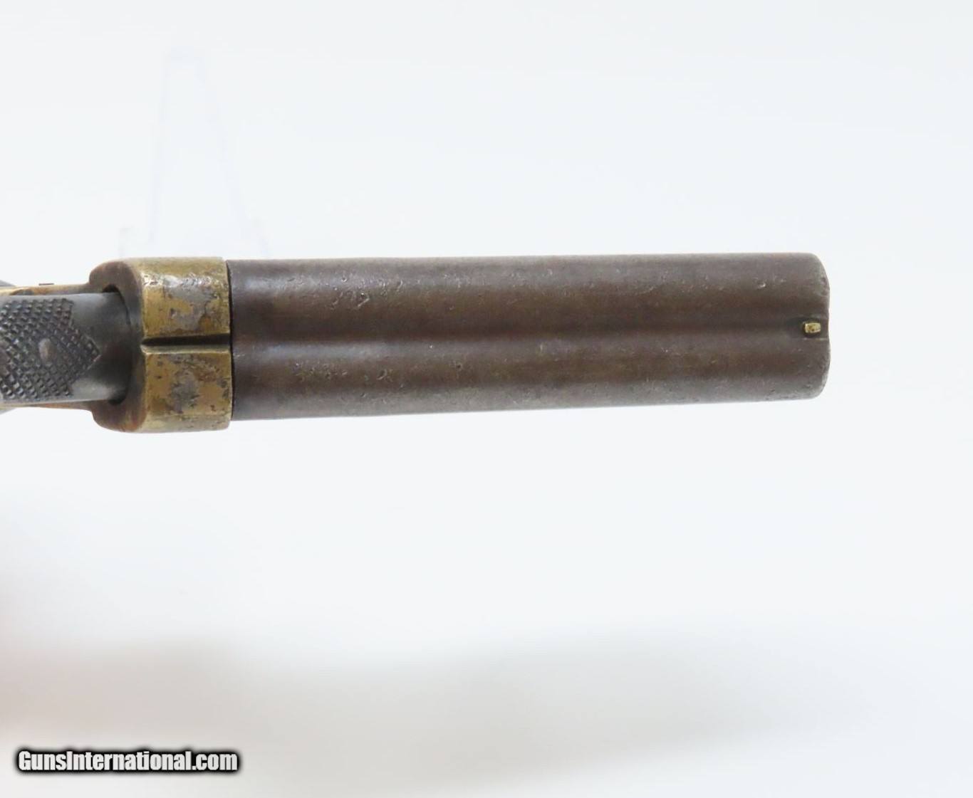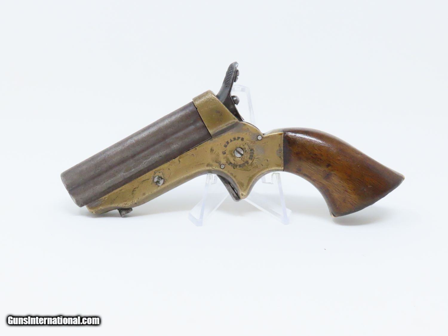 4-Shot 1860s Antique CHRISTIAN SHARPS .22 Caliber Rimfire PEPPERBOX Pistol With Unique Revolving Firing Pin!