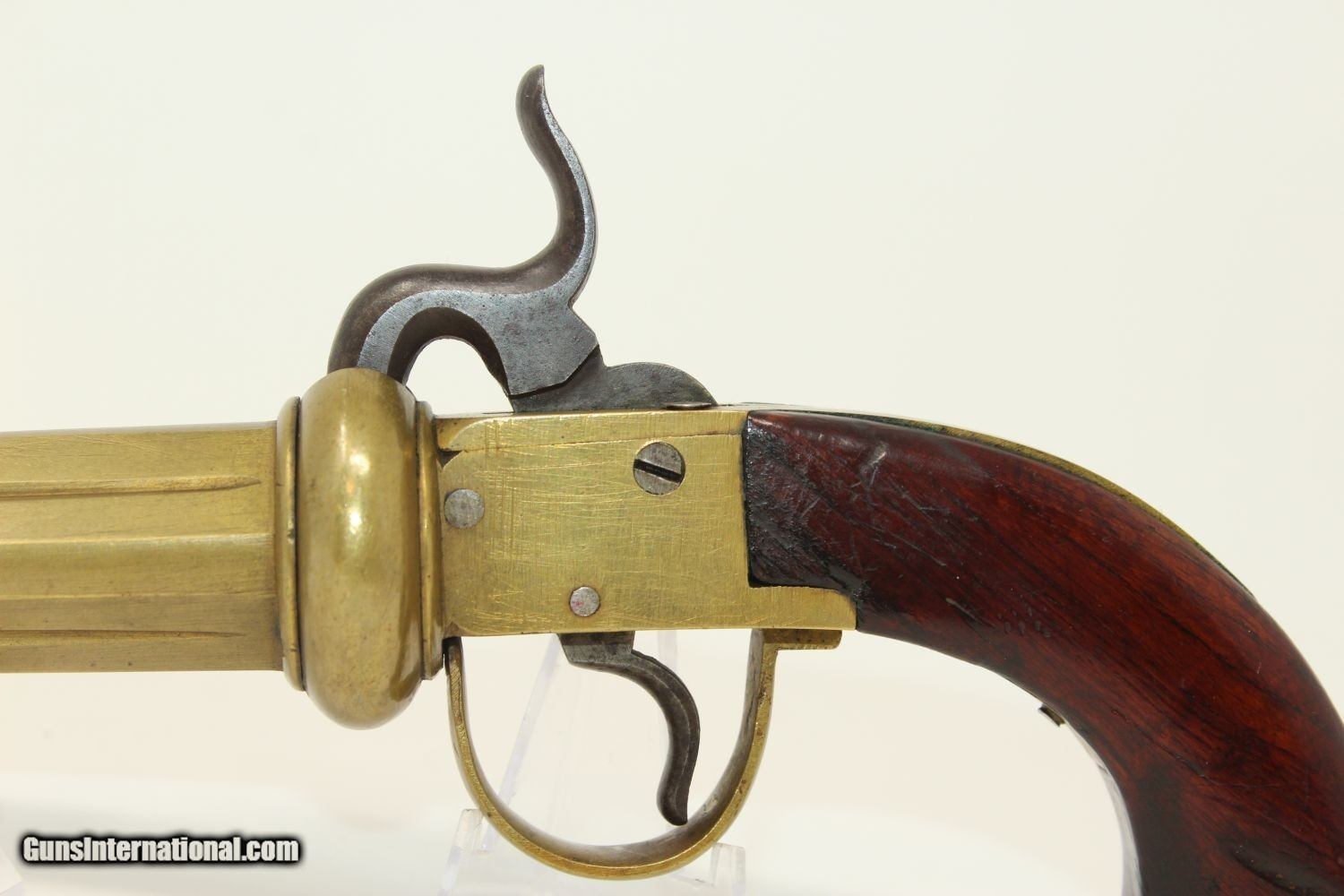 4-SHOT Antique BRASS PEPPERBOX Revolver c1840 All Brass Percussion Single Action Pistol